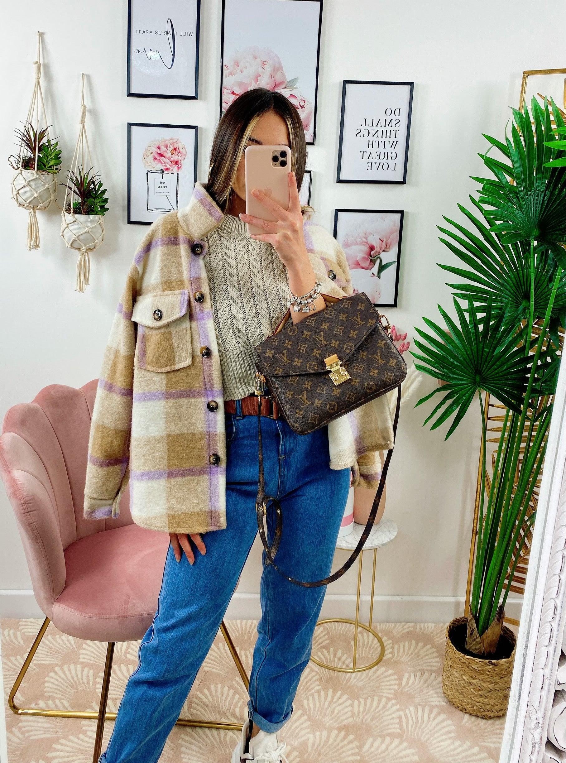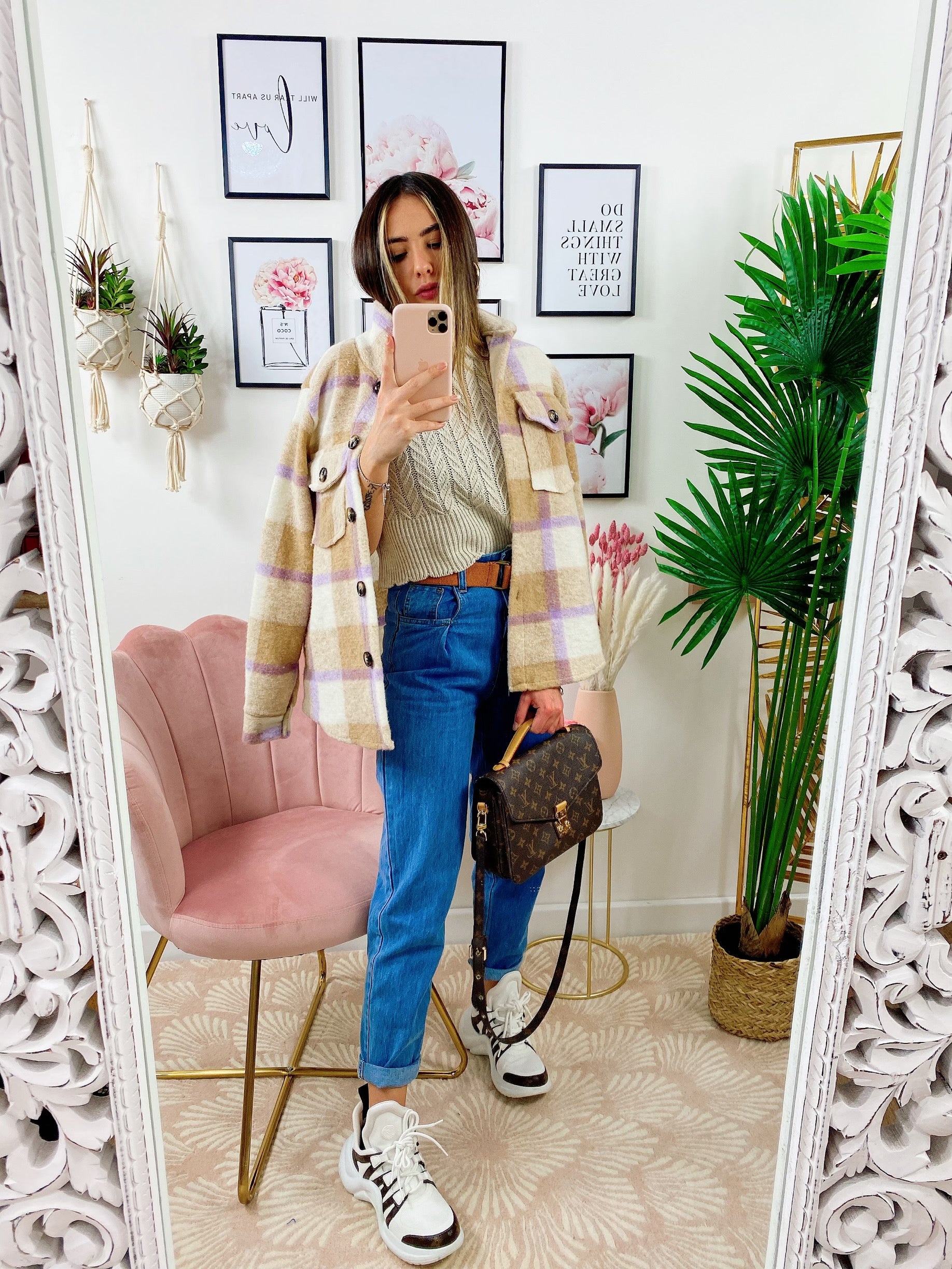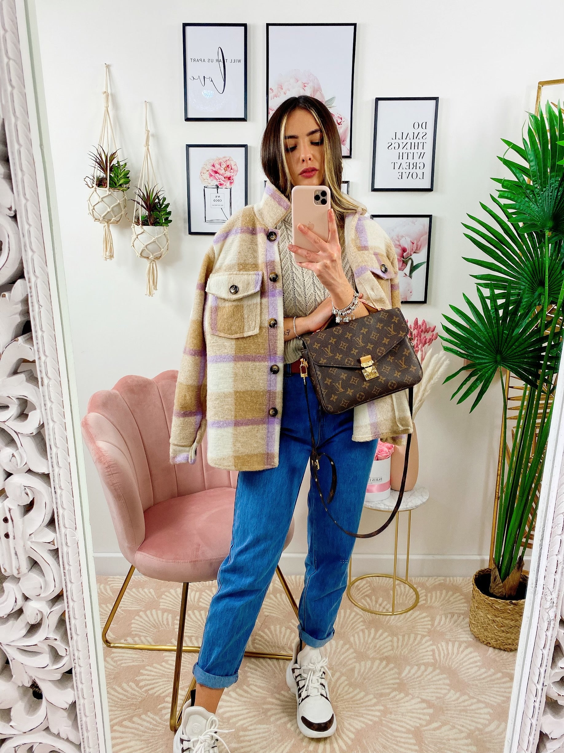 Giacca a quadri Beige/Lilla