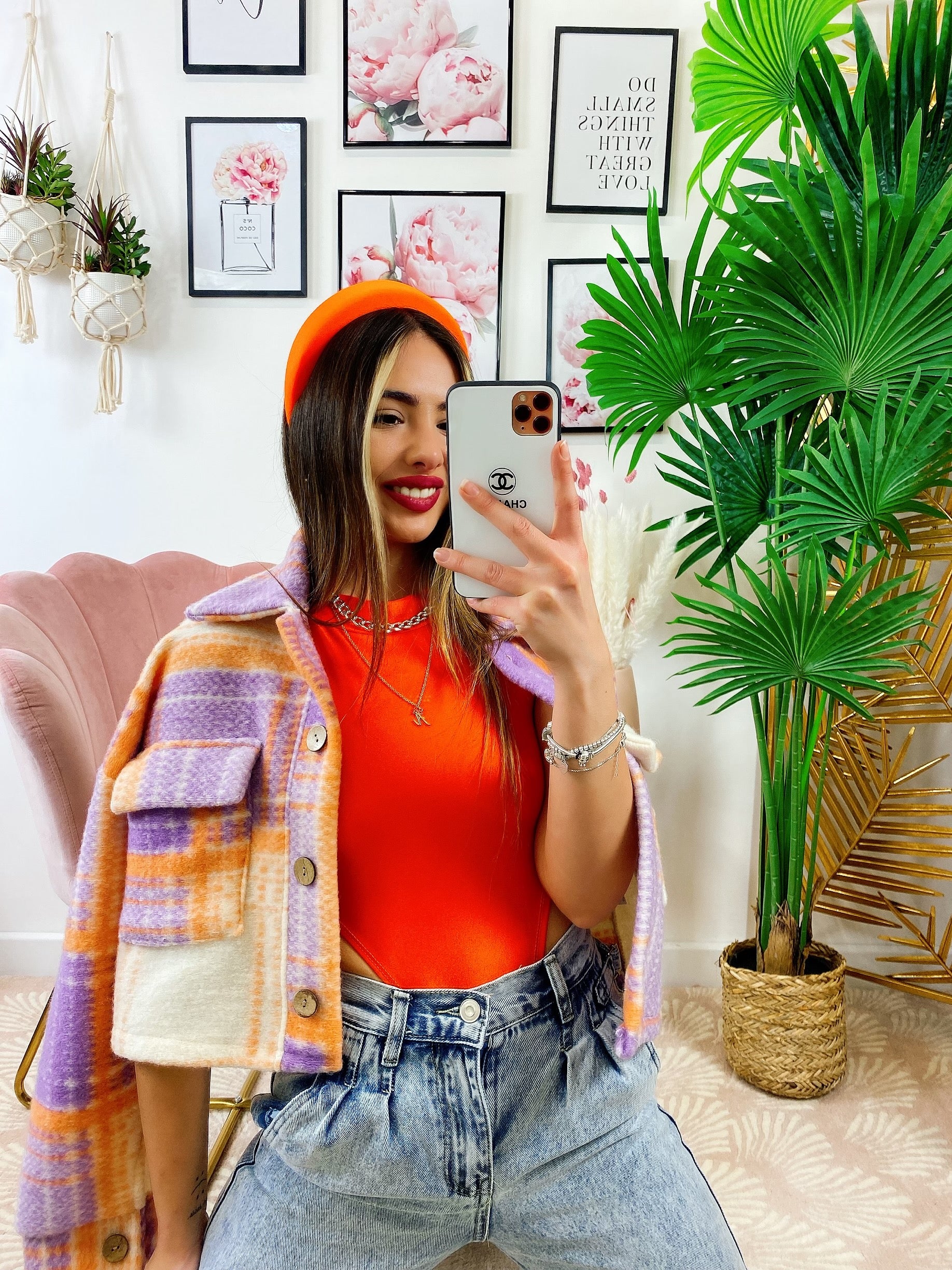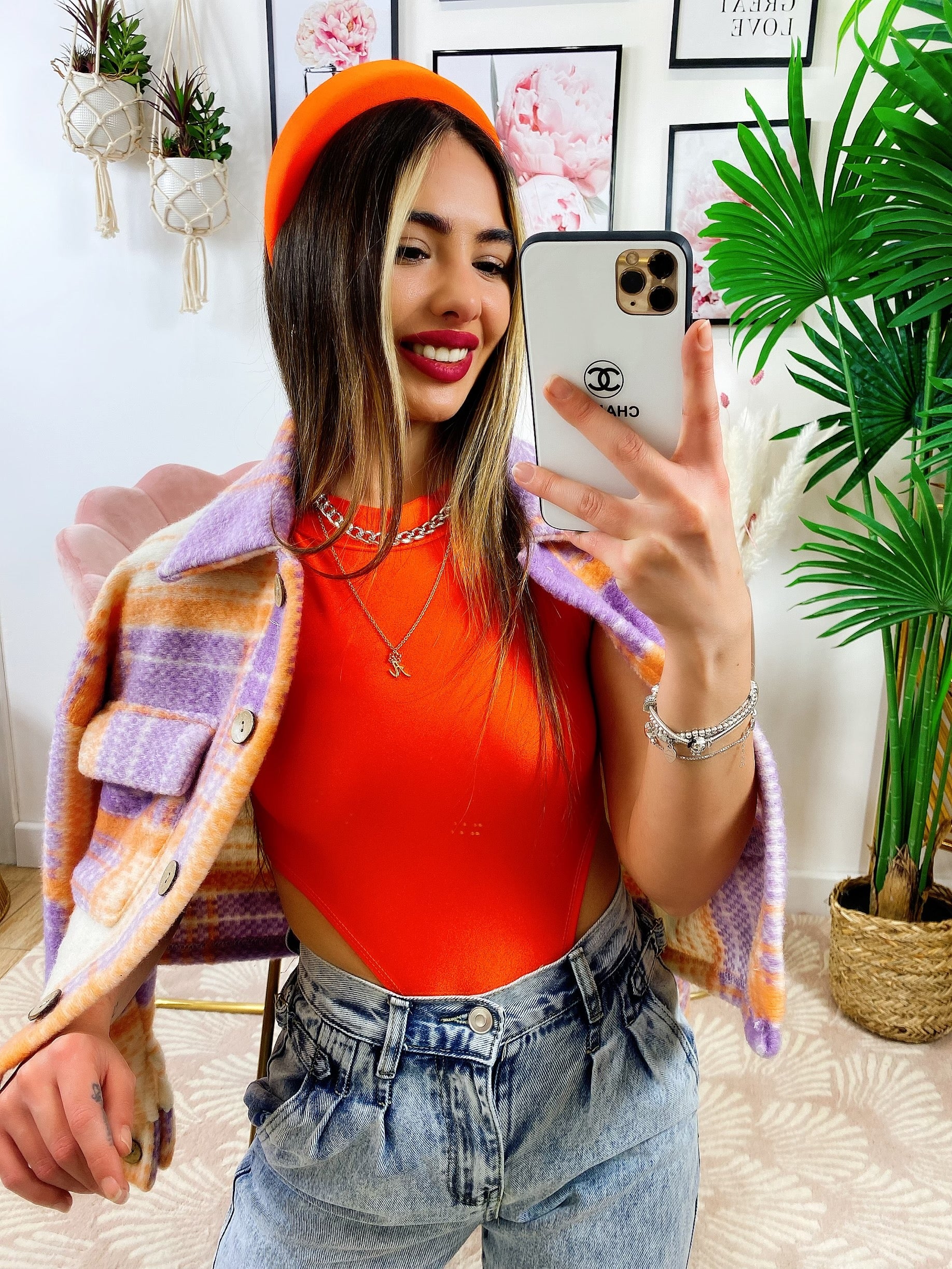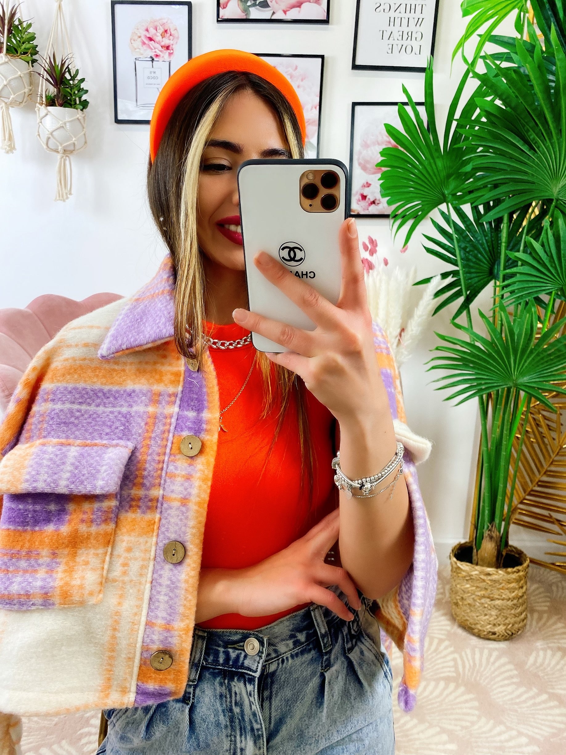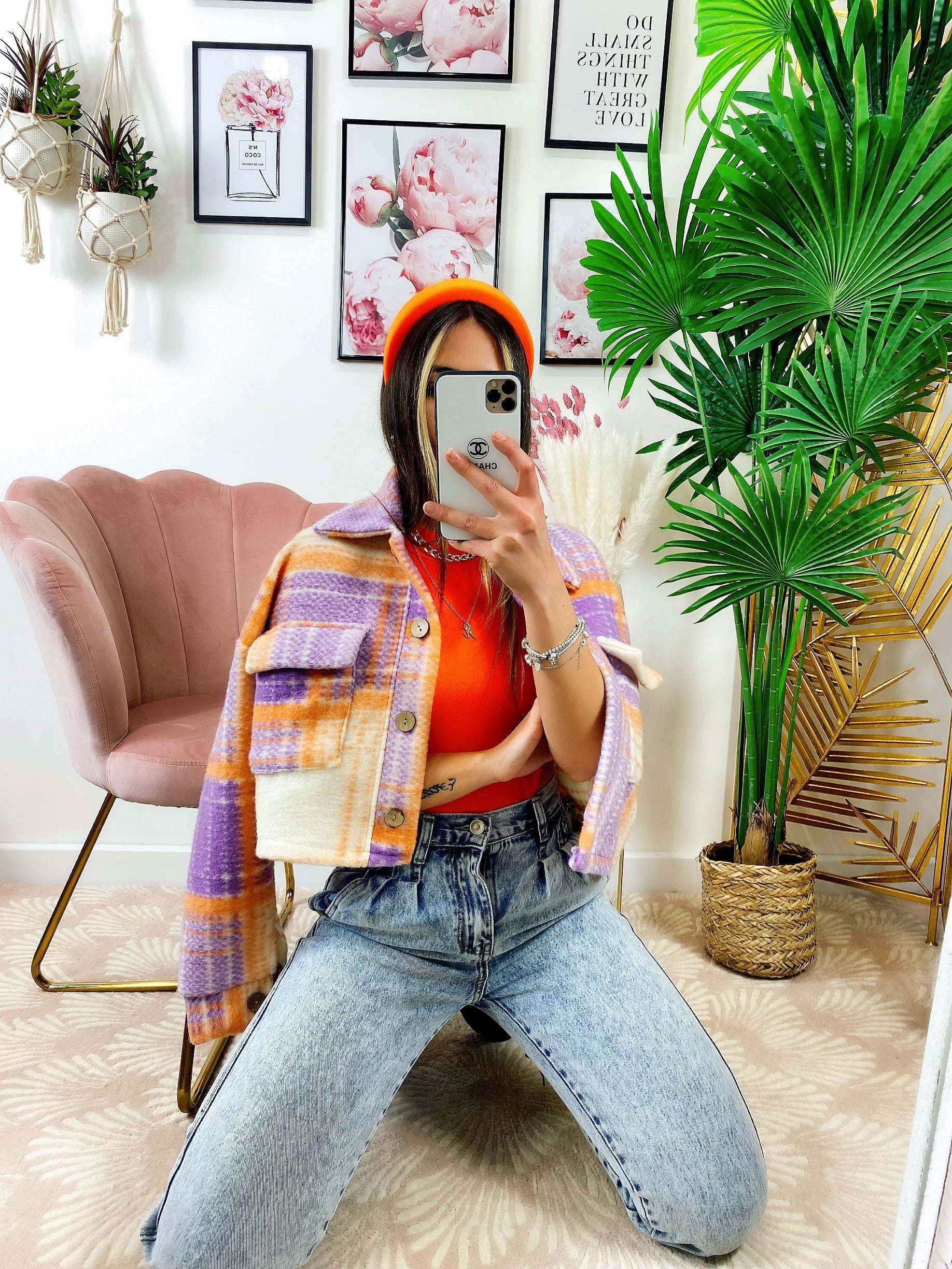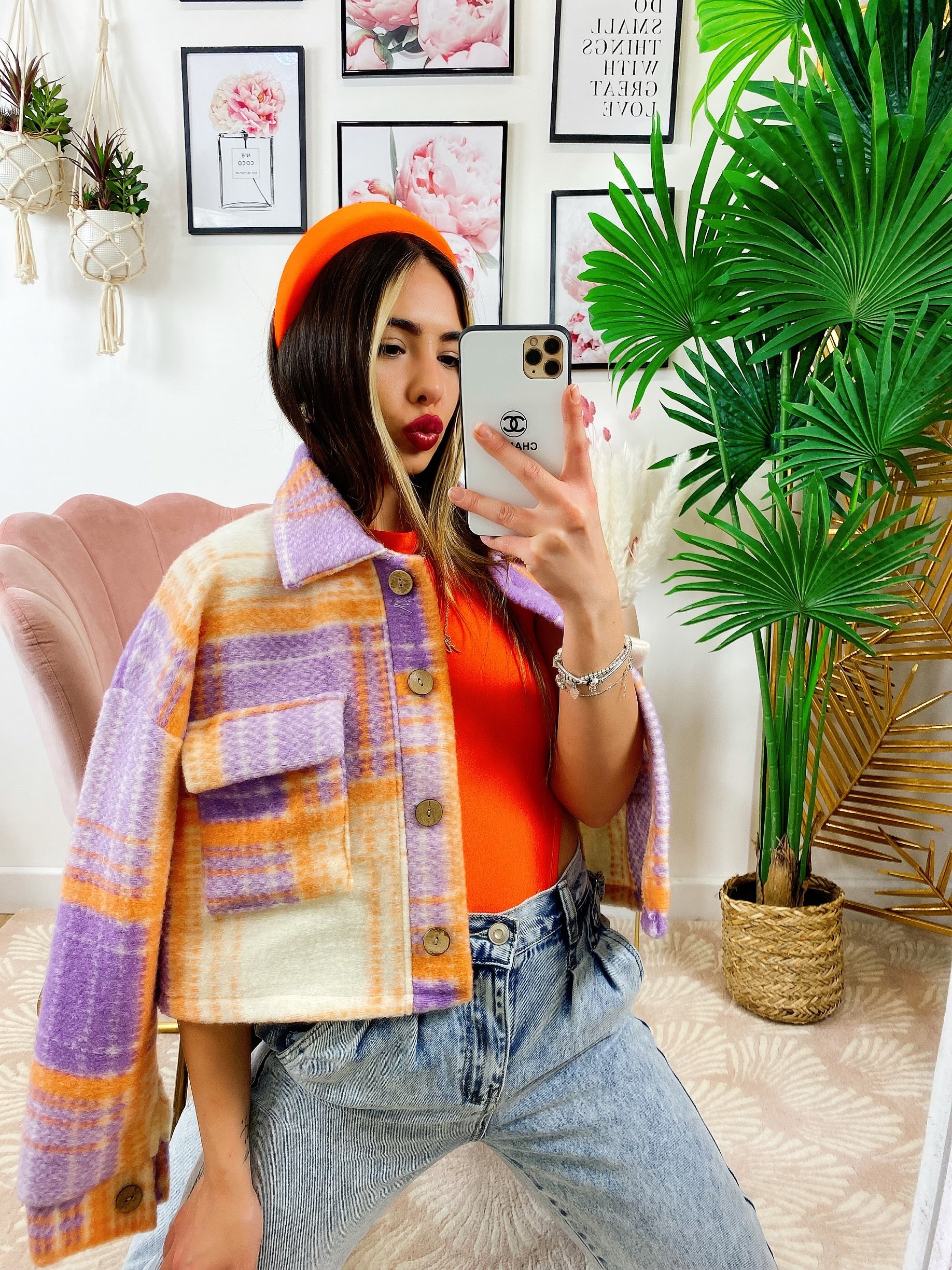 Giacca a quadri lilla Arancio Con bottoni e tasche davanti.