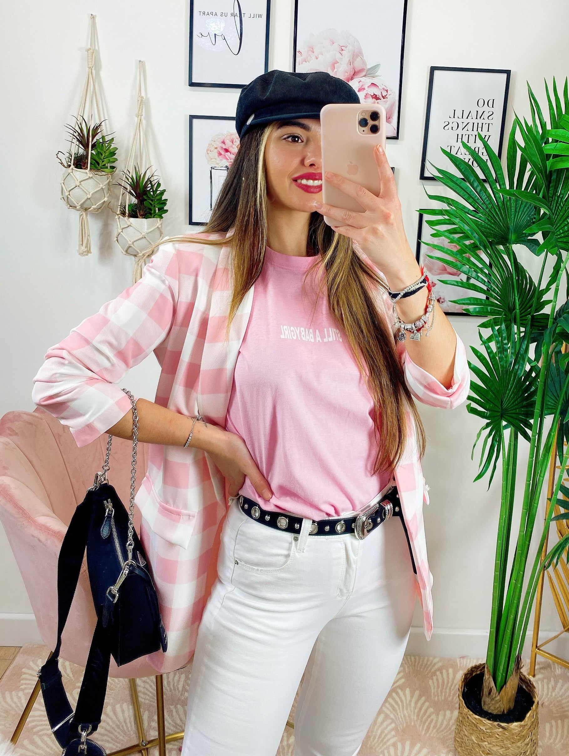 Giacca a Quadri Rosa
