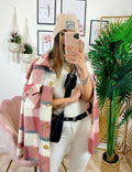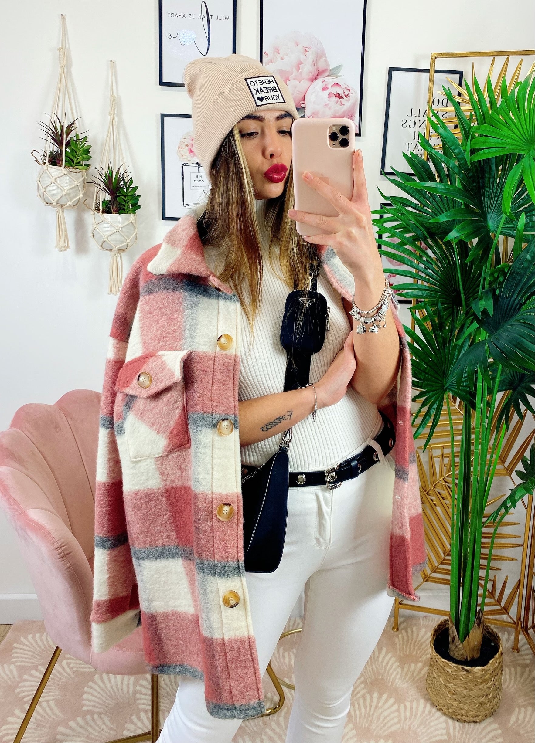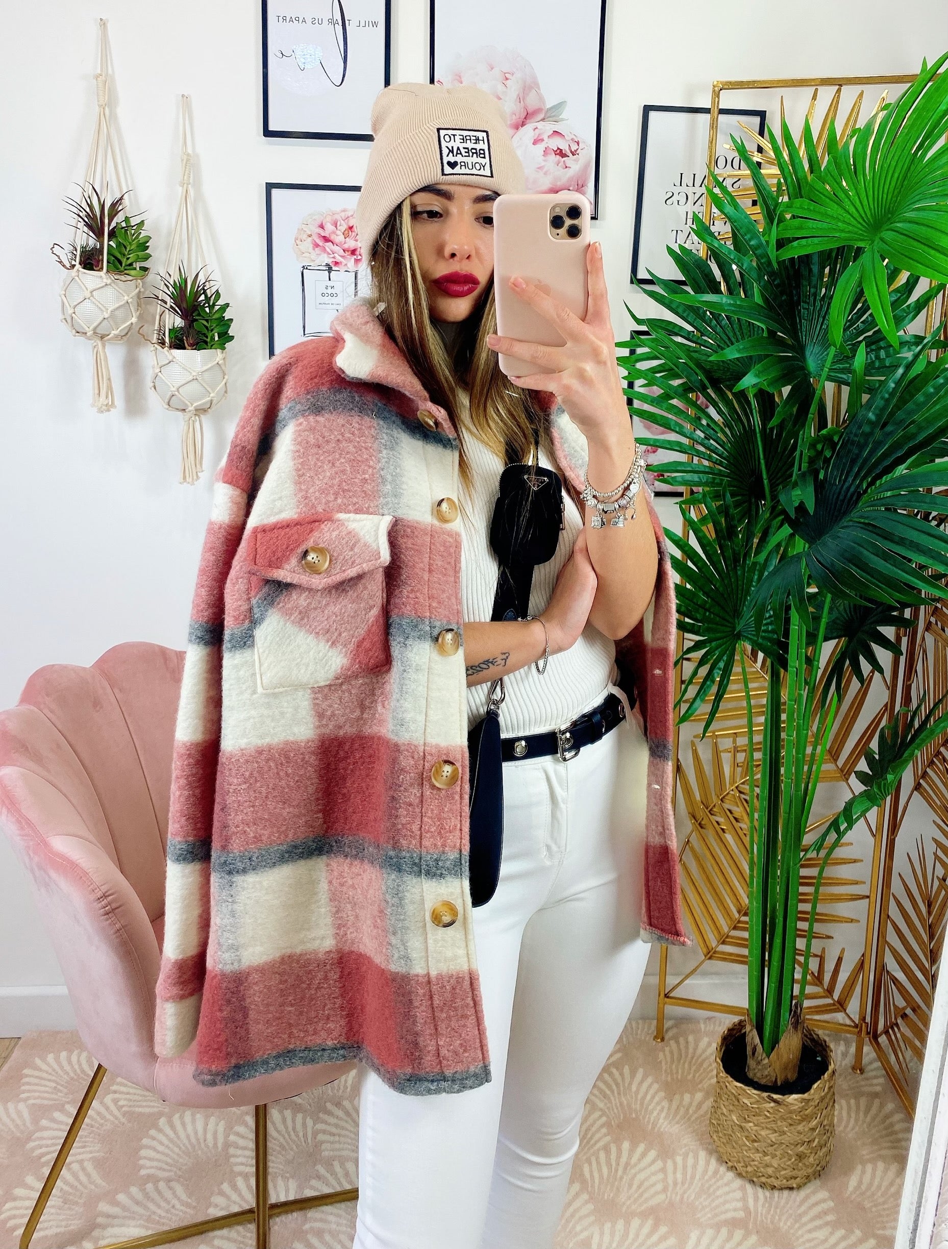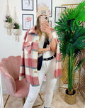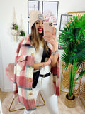 Giacca a quadri Rosa Con bottoni e tasche davanti.