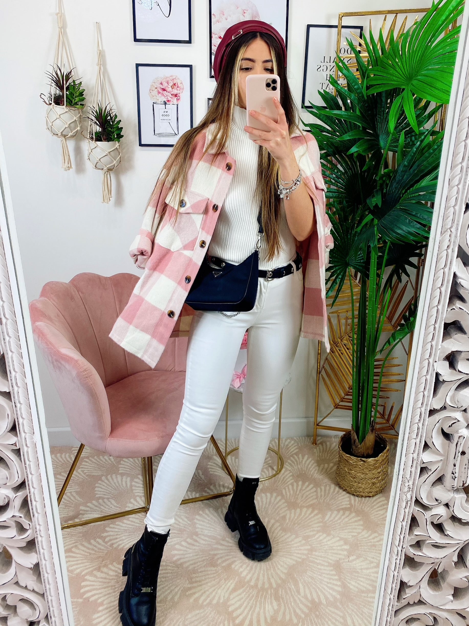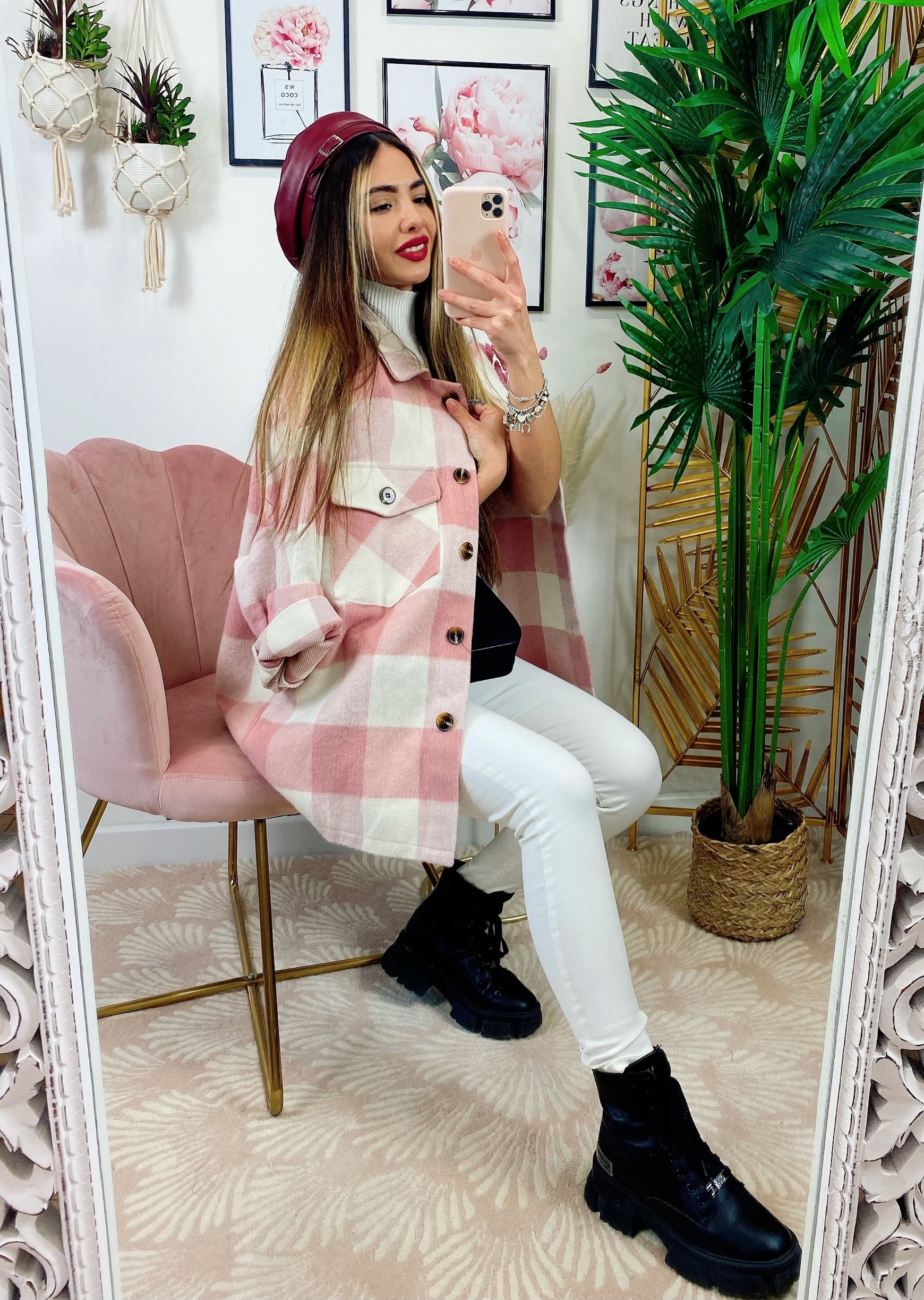 Giacca a quadri Rosa Con bottoni e tasche davanti.