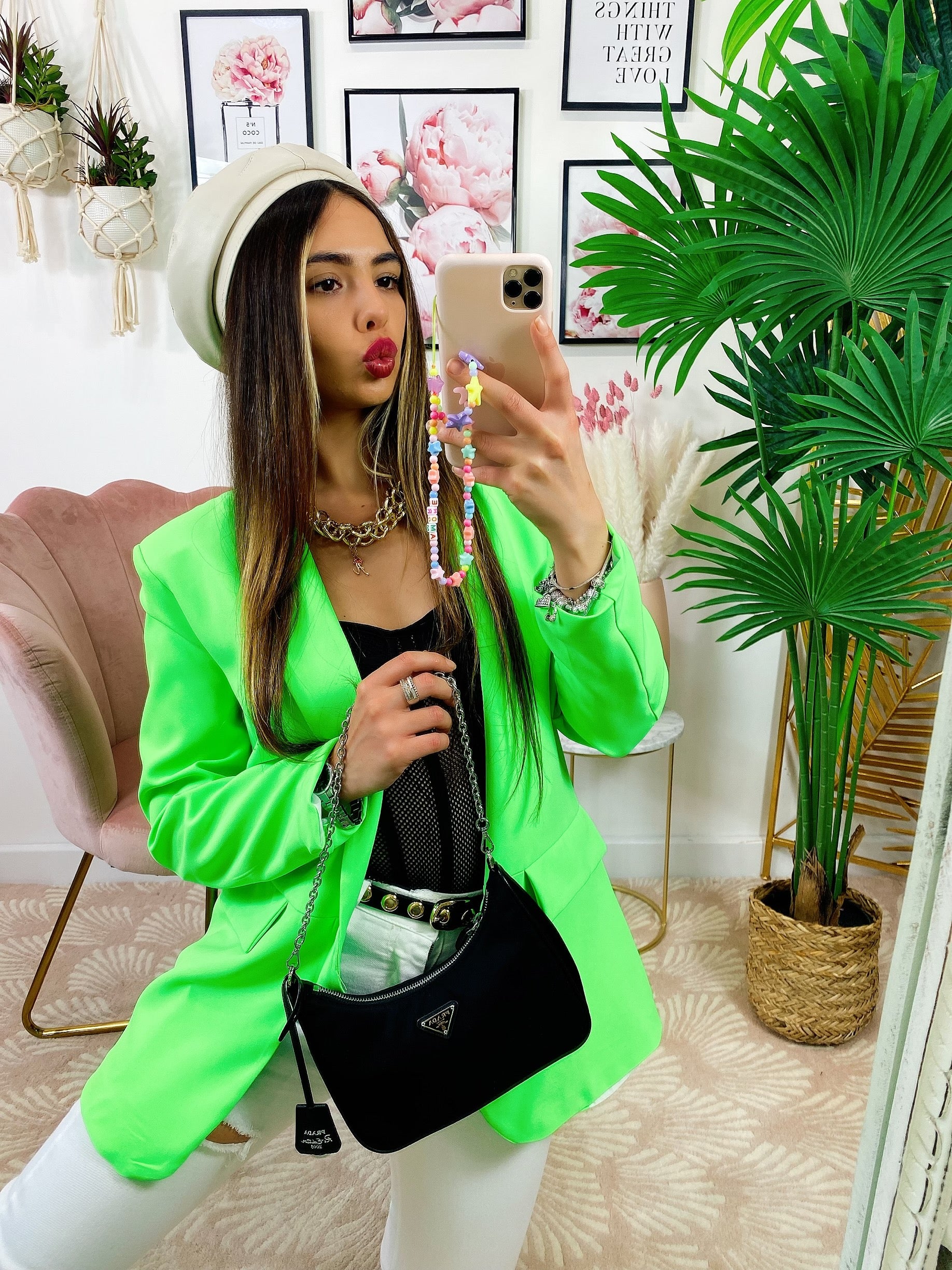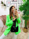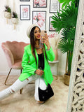 Giacca fluo color verde, la moda del momento.