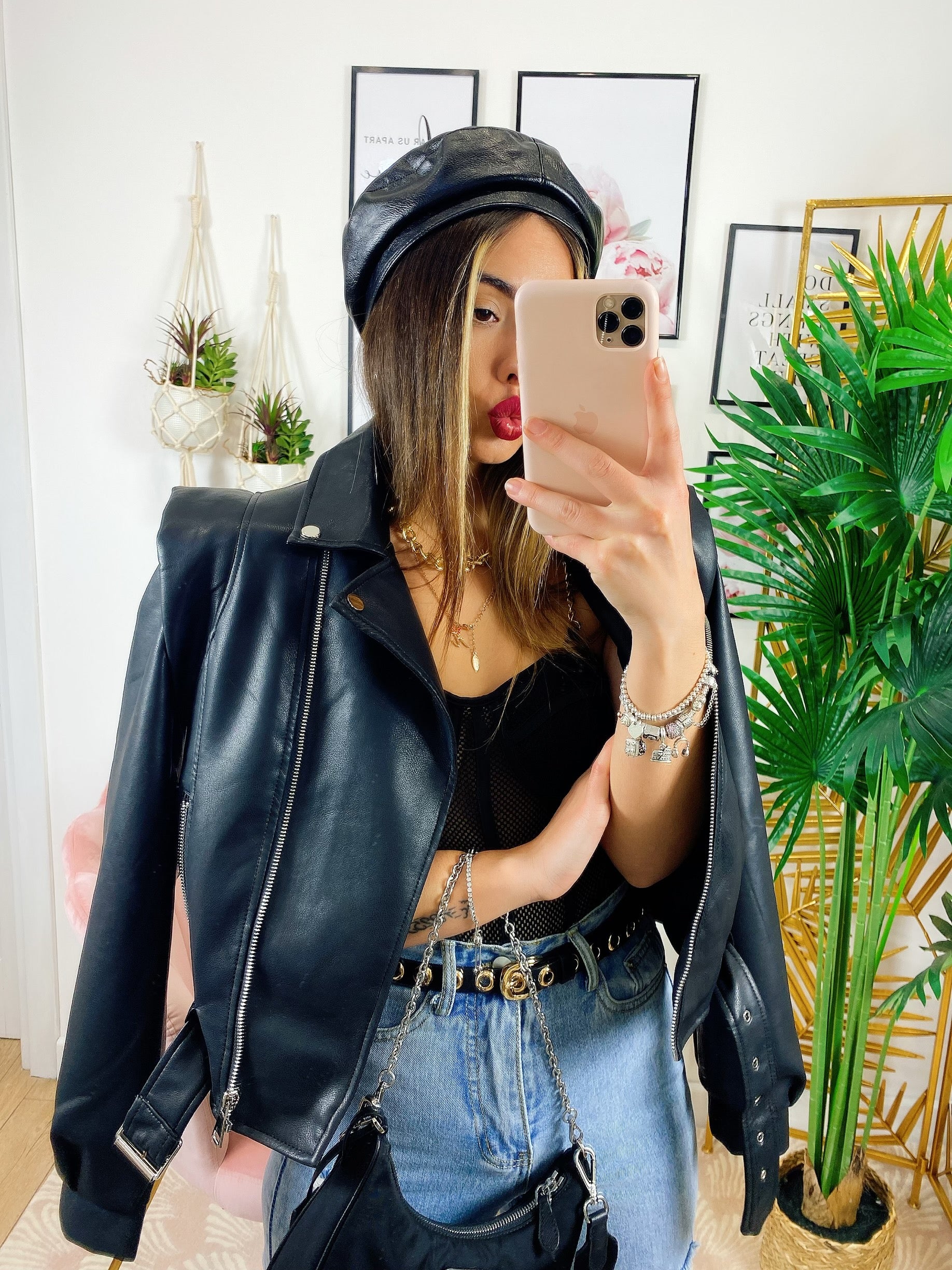 Giacca in ecopelle con cintura, da vera influencer.