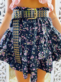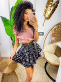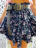 Gonna a balze con fiori colorati . La gonna è dotata di un elastico in vita molto largo così da renderla adattabile a tutte le taglie.