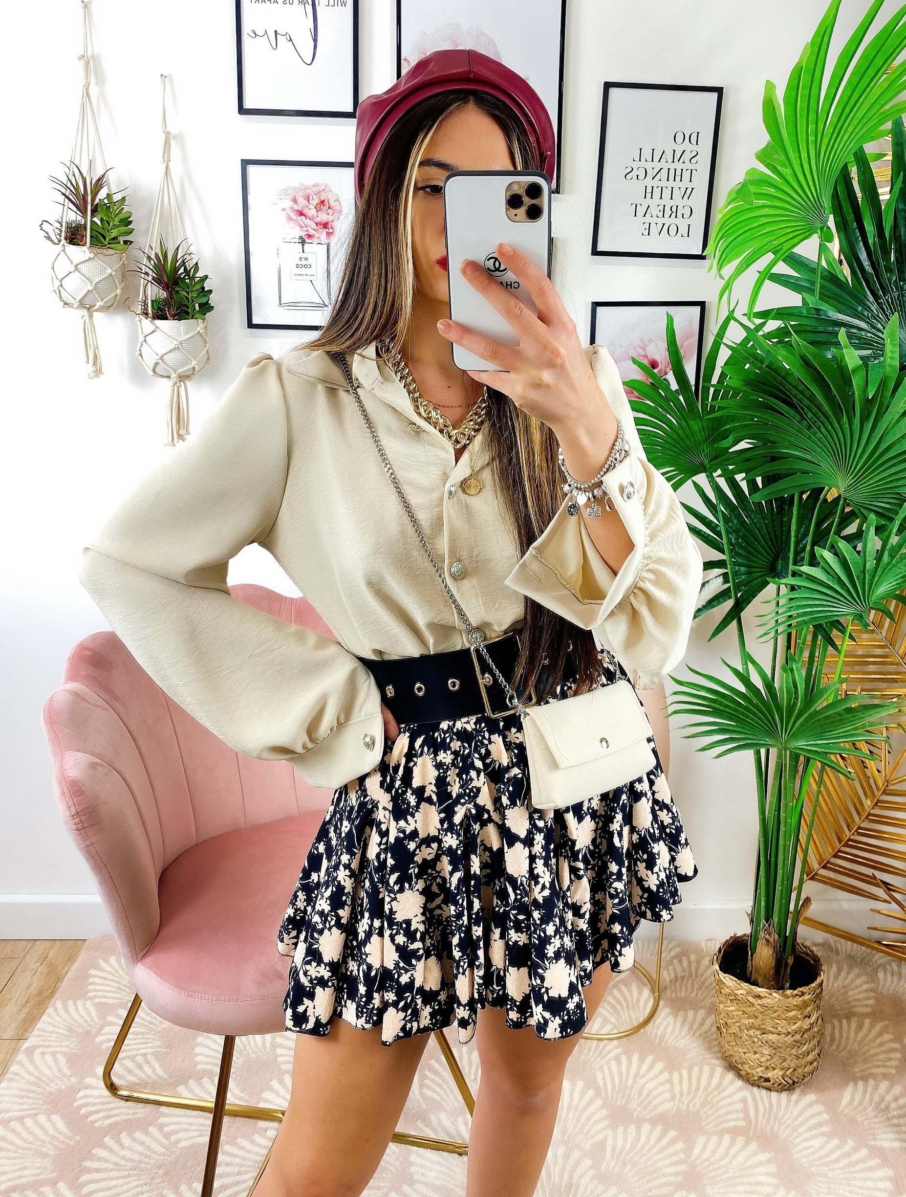 Gonna a fiorellini beige Elasticizzata e comoda.