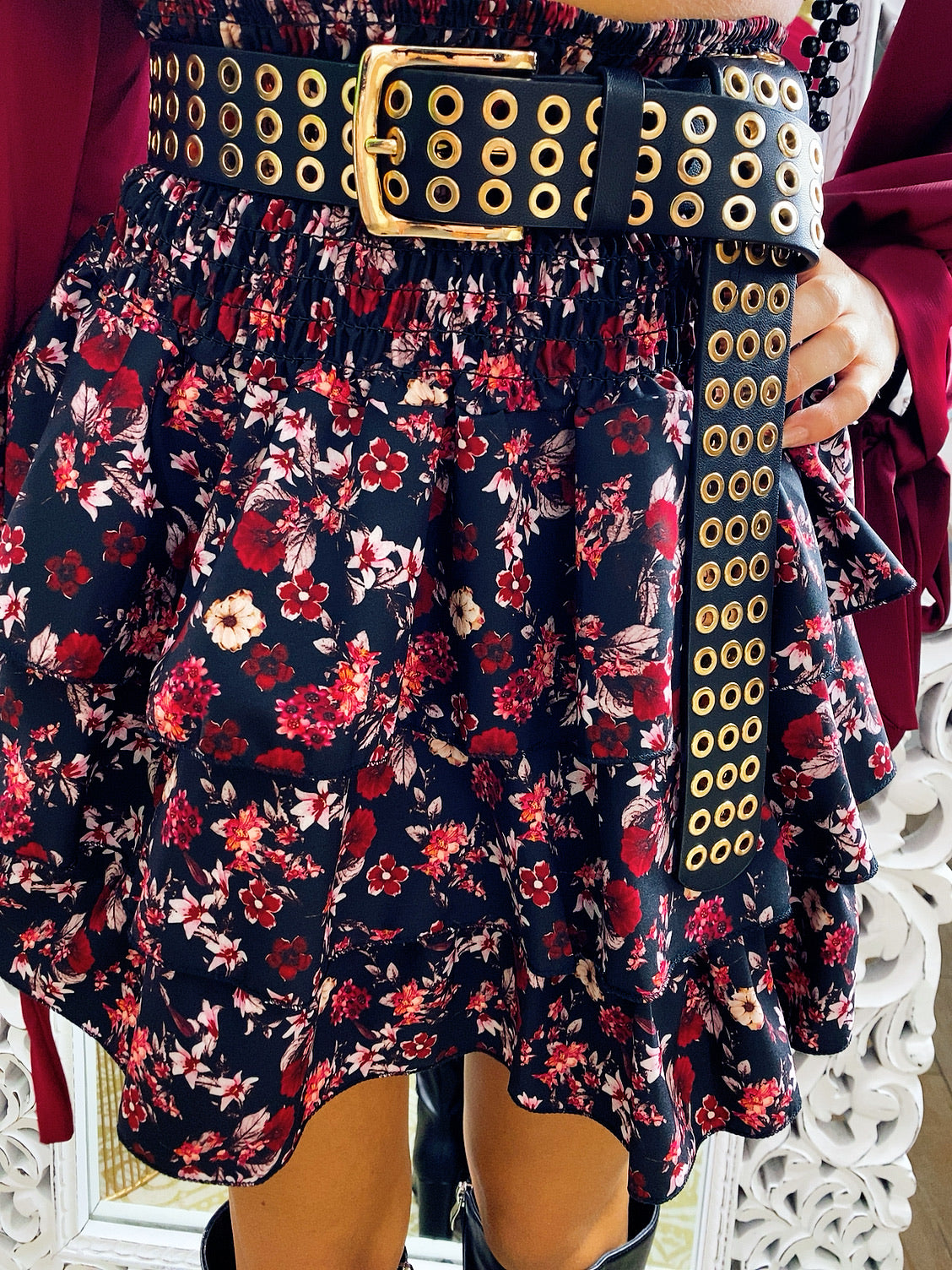 Gonna a fiorellini bordeaux
