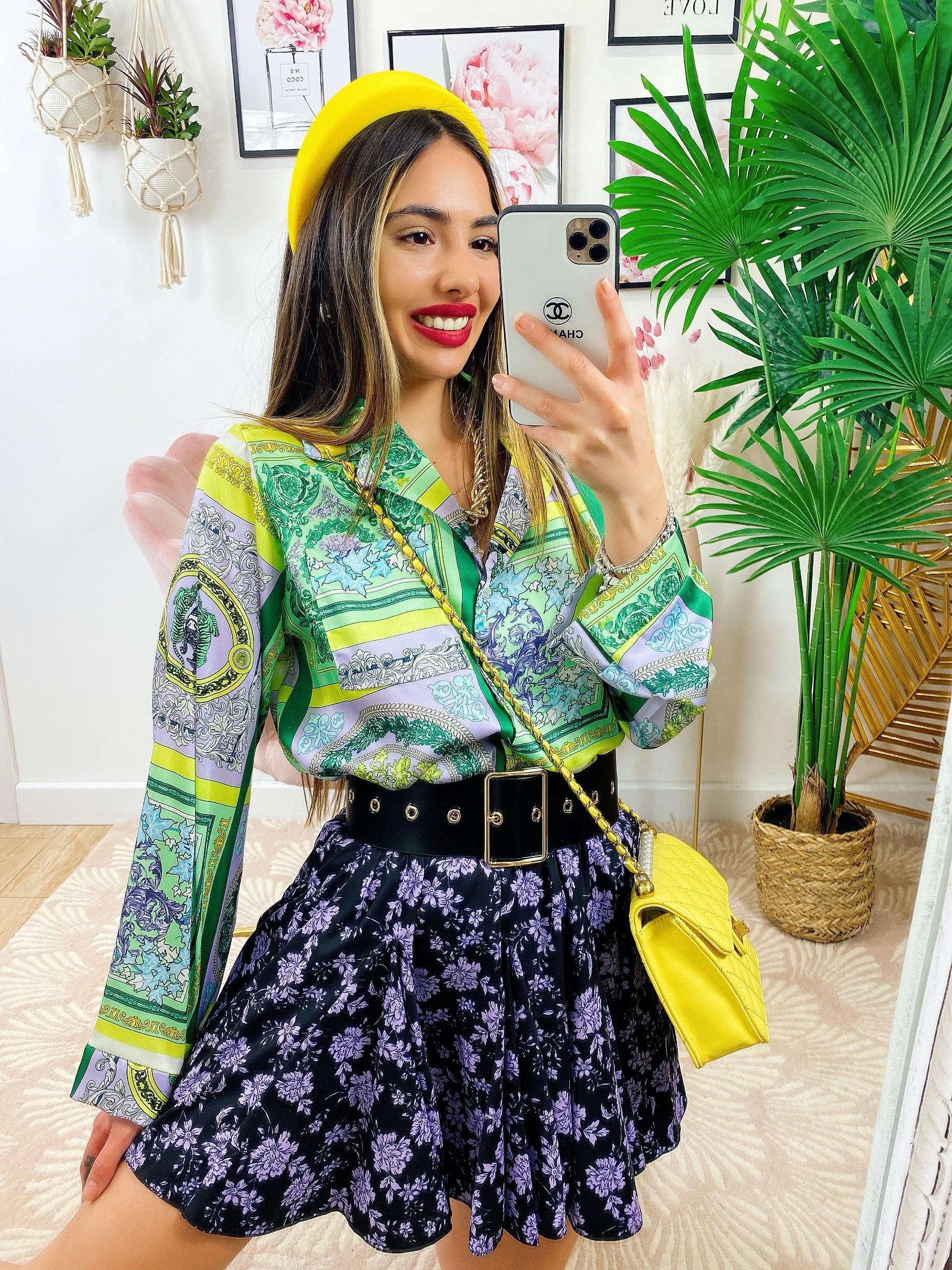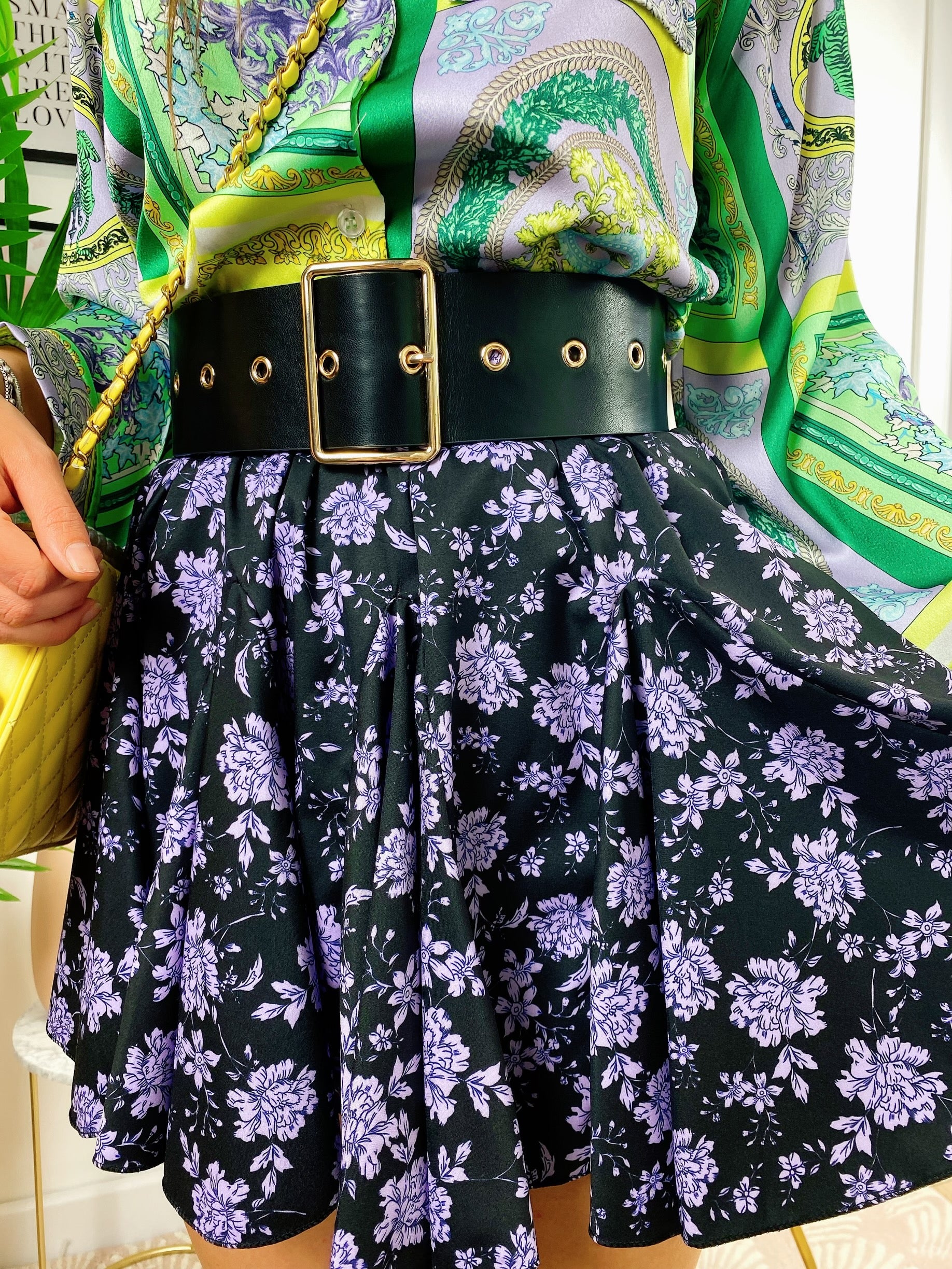 Gonna a fiorellini lilla Elasticizzata e comoda.