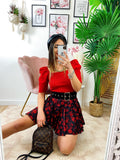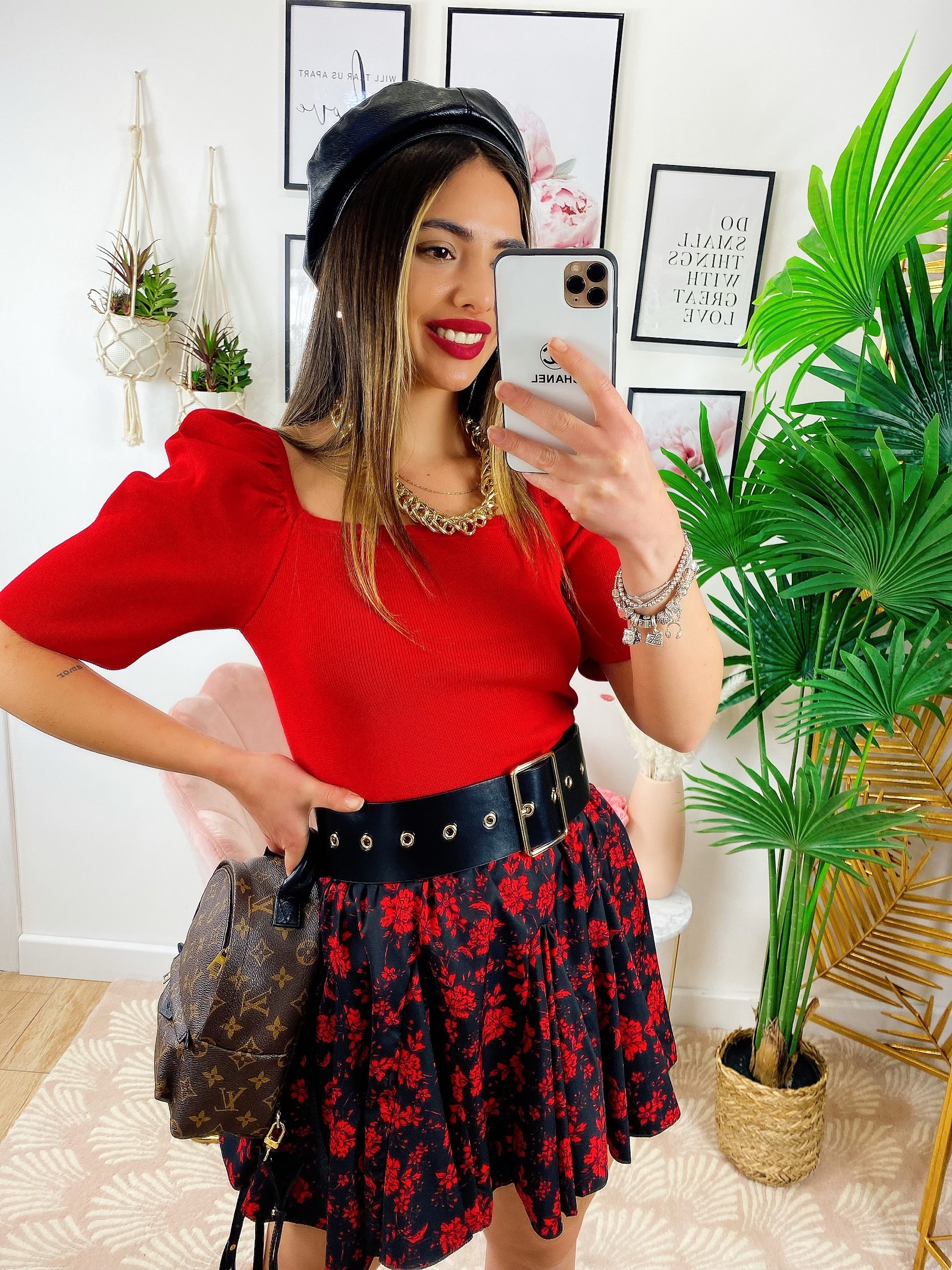 Gonna a fiorellini Rossi Elasticizzata e comoda.