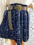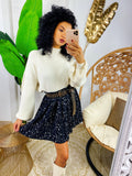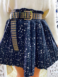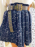 Gonna a pieghine in tessuto con stelle. La gonna è dotata di un elastico in vita così da renderla adattabile a tutte le taglie. La gonna è foderata e con pantaloncino nello stesso tessuto
