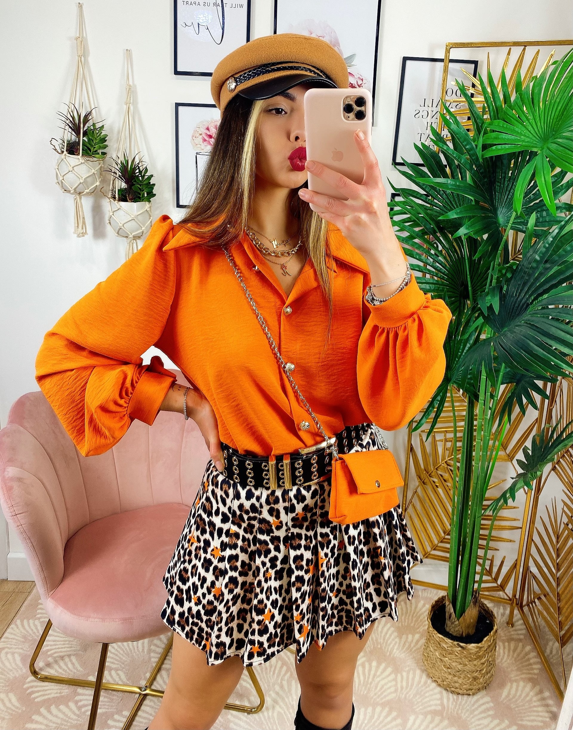 Gonna a pieghine maculata stelle arancio, gonna con sotto pantaloncino