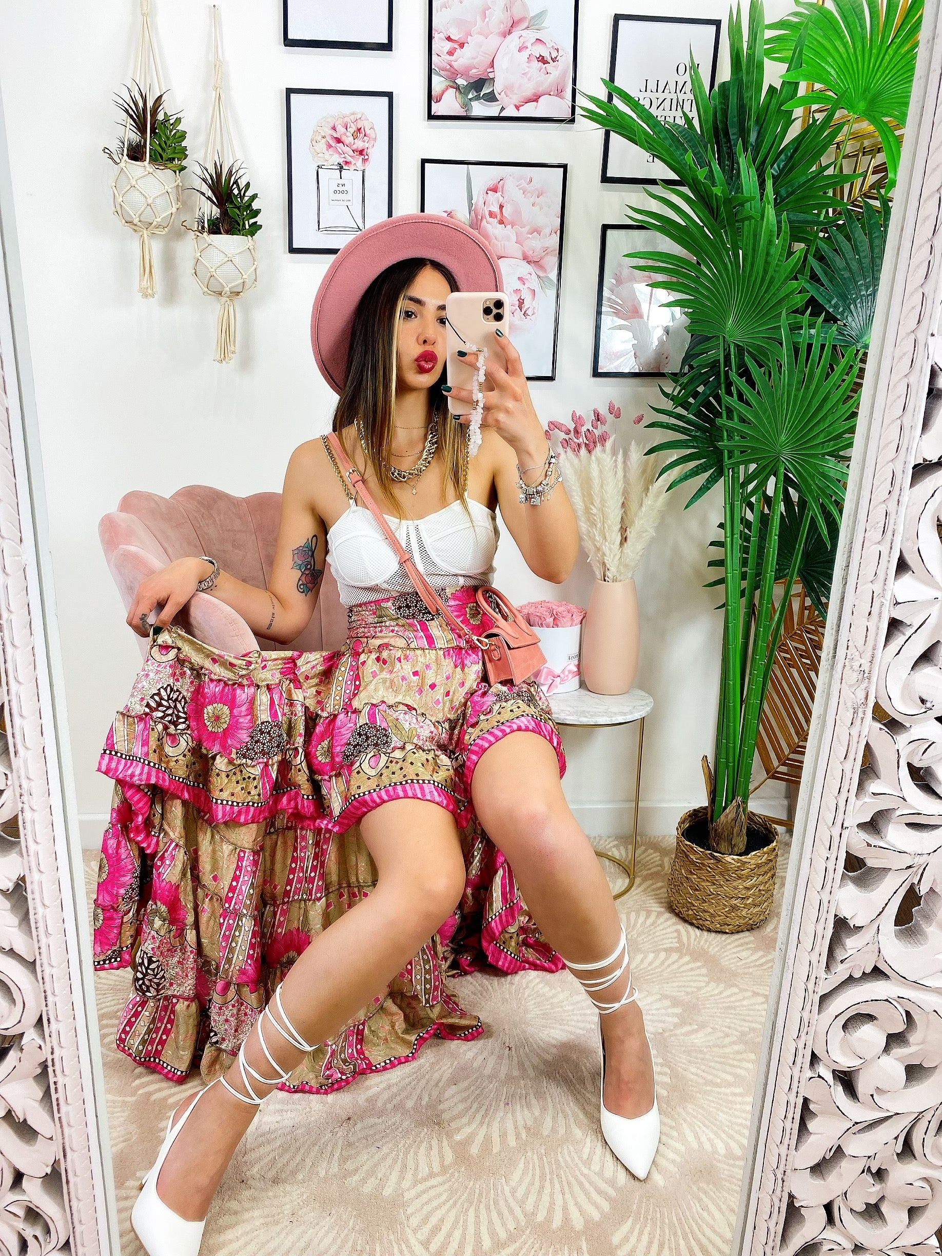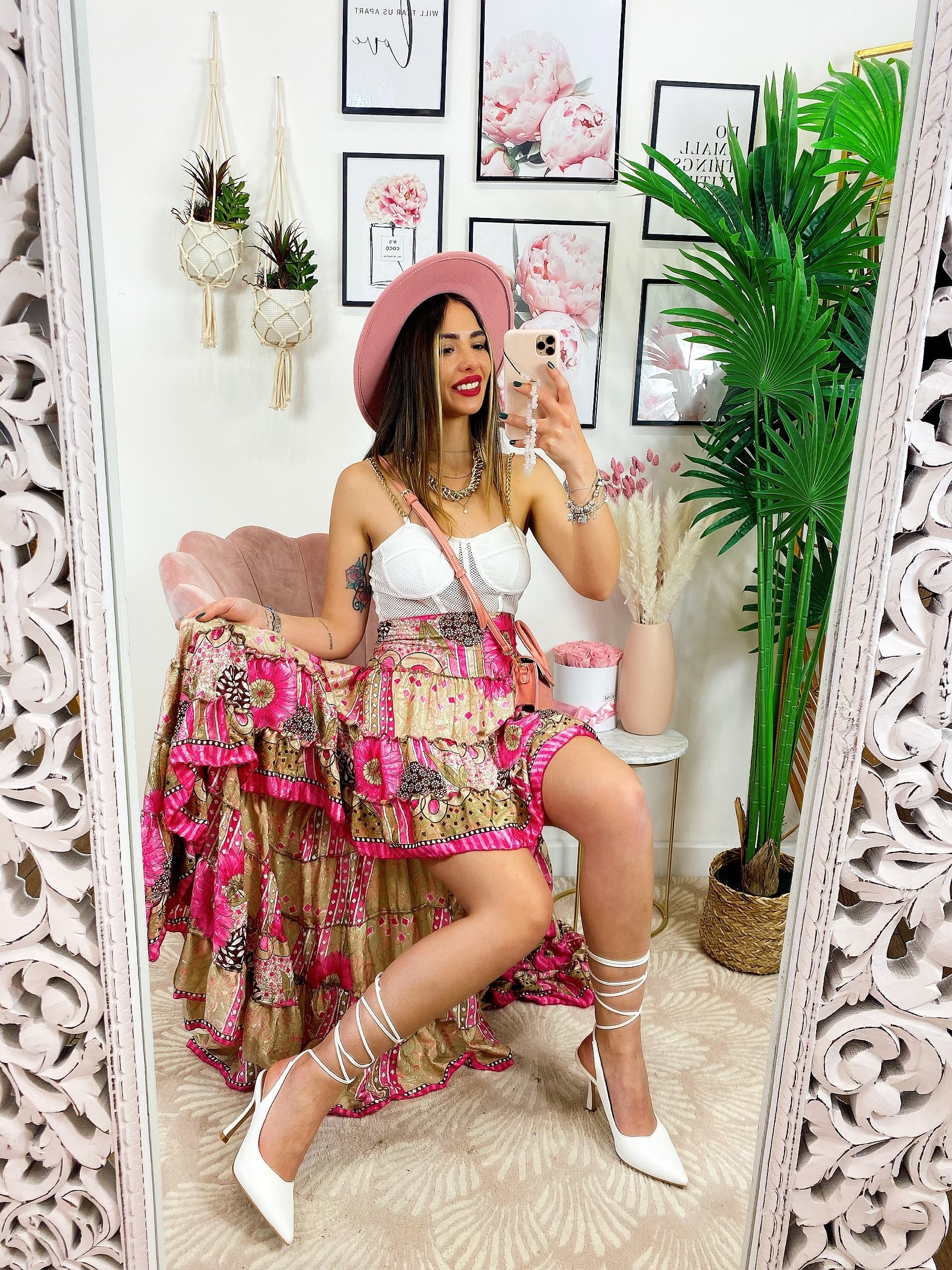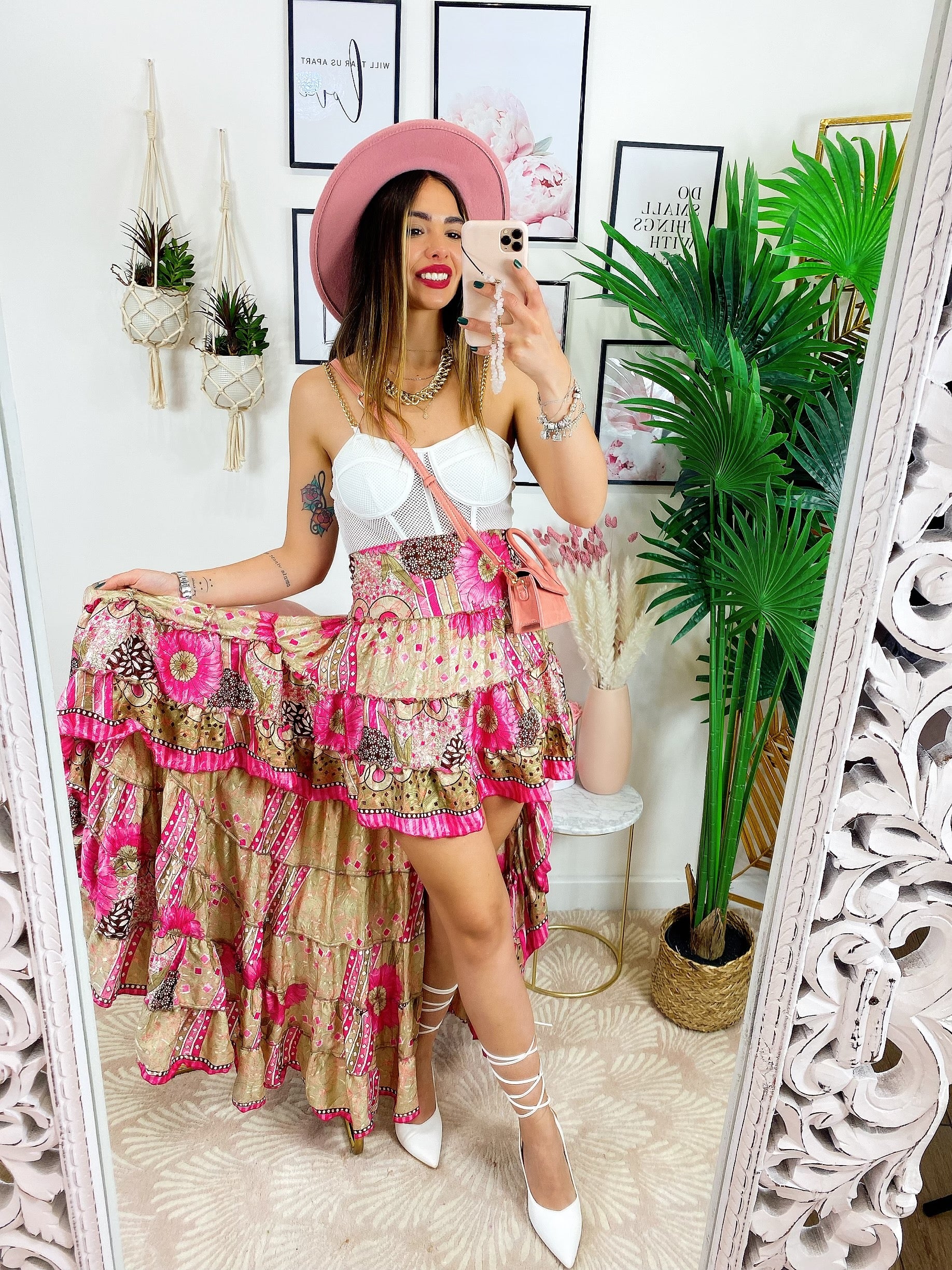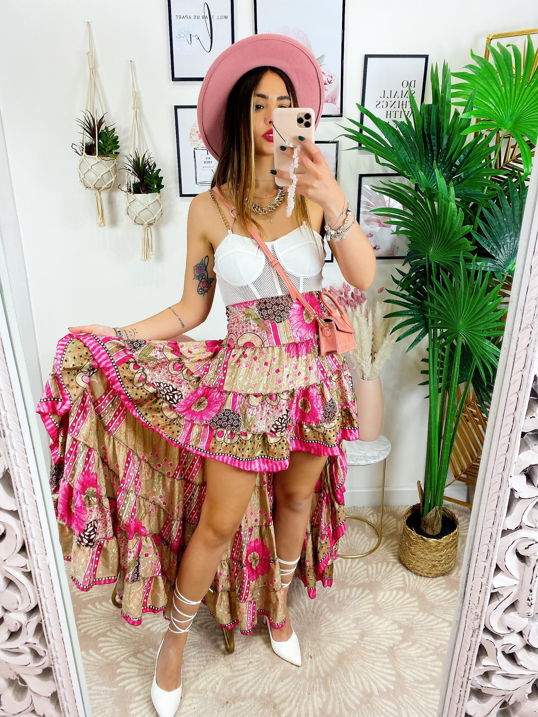 Gonna asimmetrica Estiva con elastico in vita e sul seno.