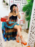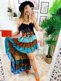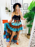 Gonna asimmetrica azzurra e Camel