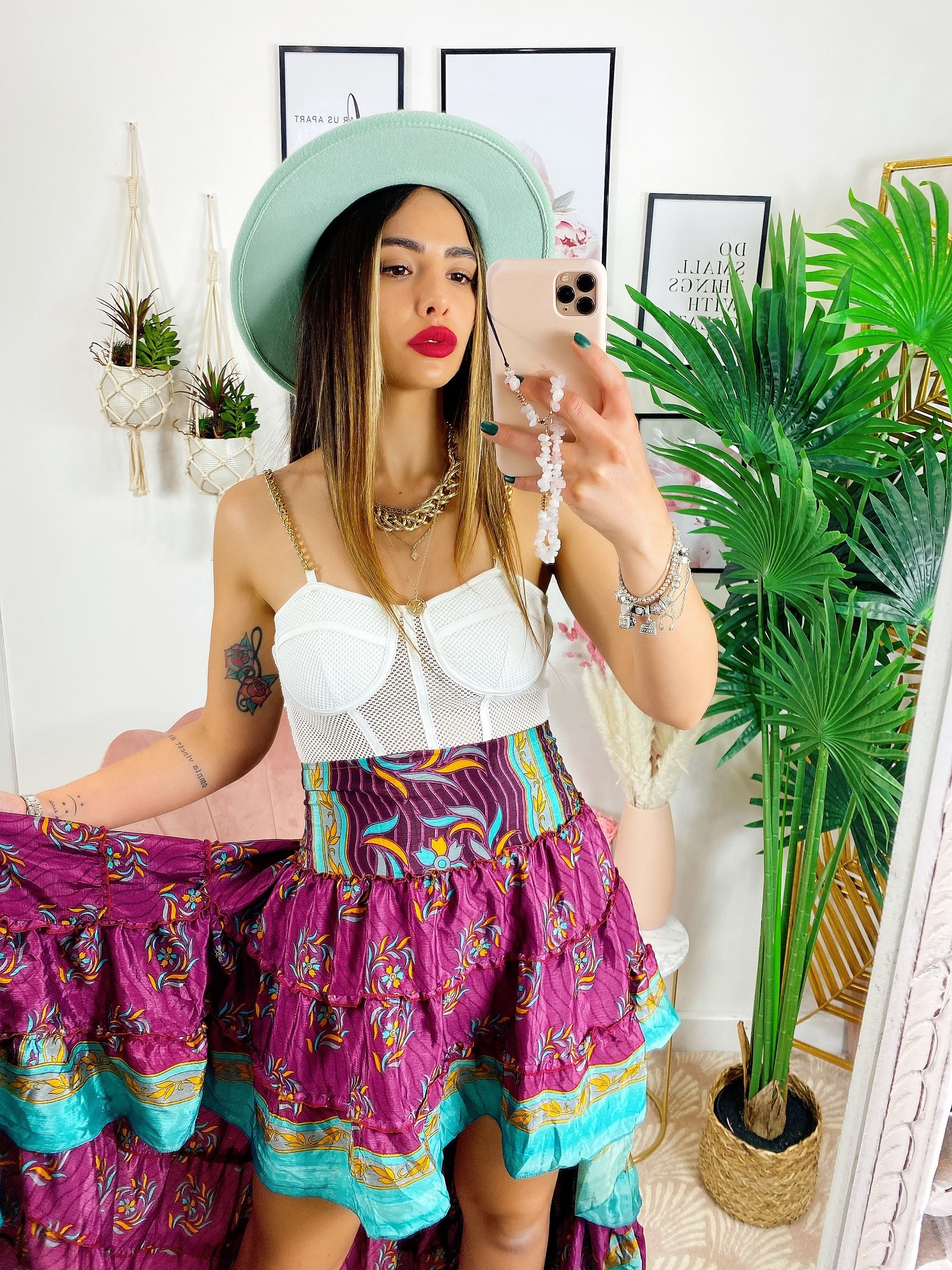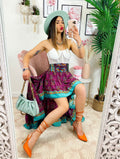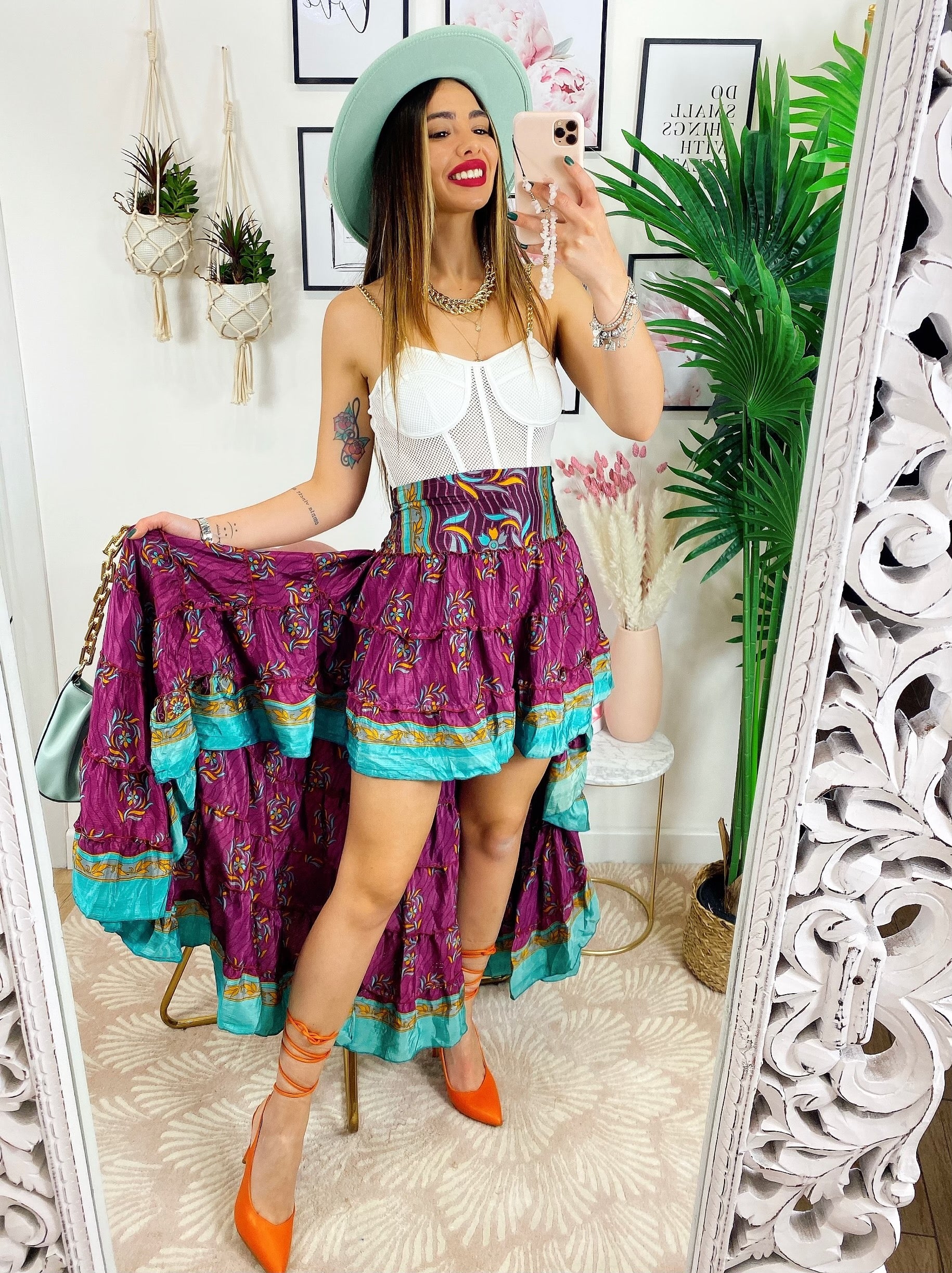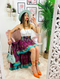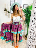 Gonna asimmetrica peonia e Verdeacqua
