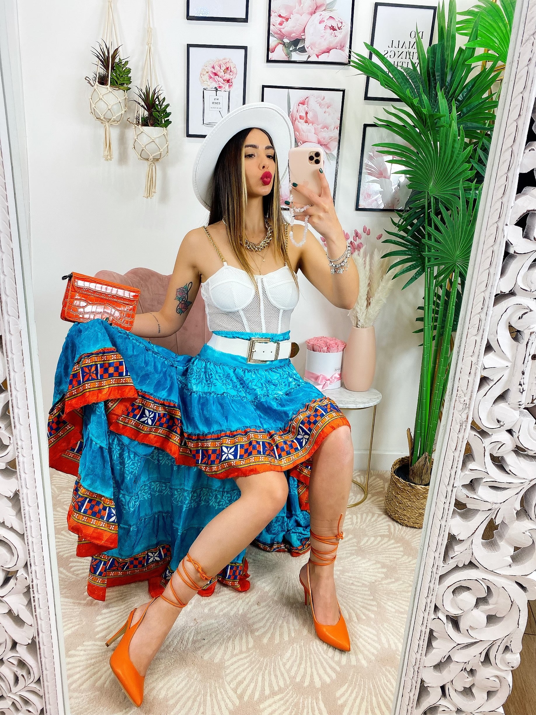 Gonna asimmetrica Estiva con elastico in vita e sul seno.