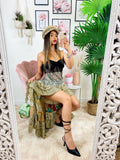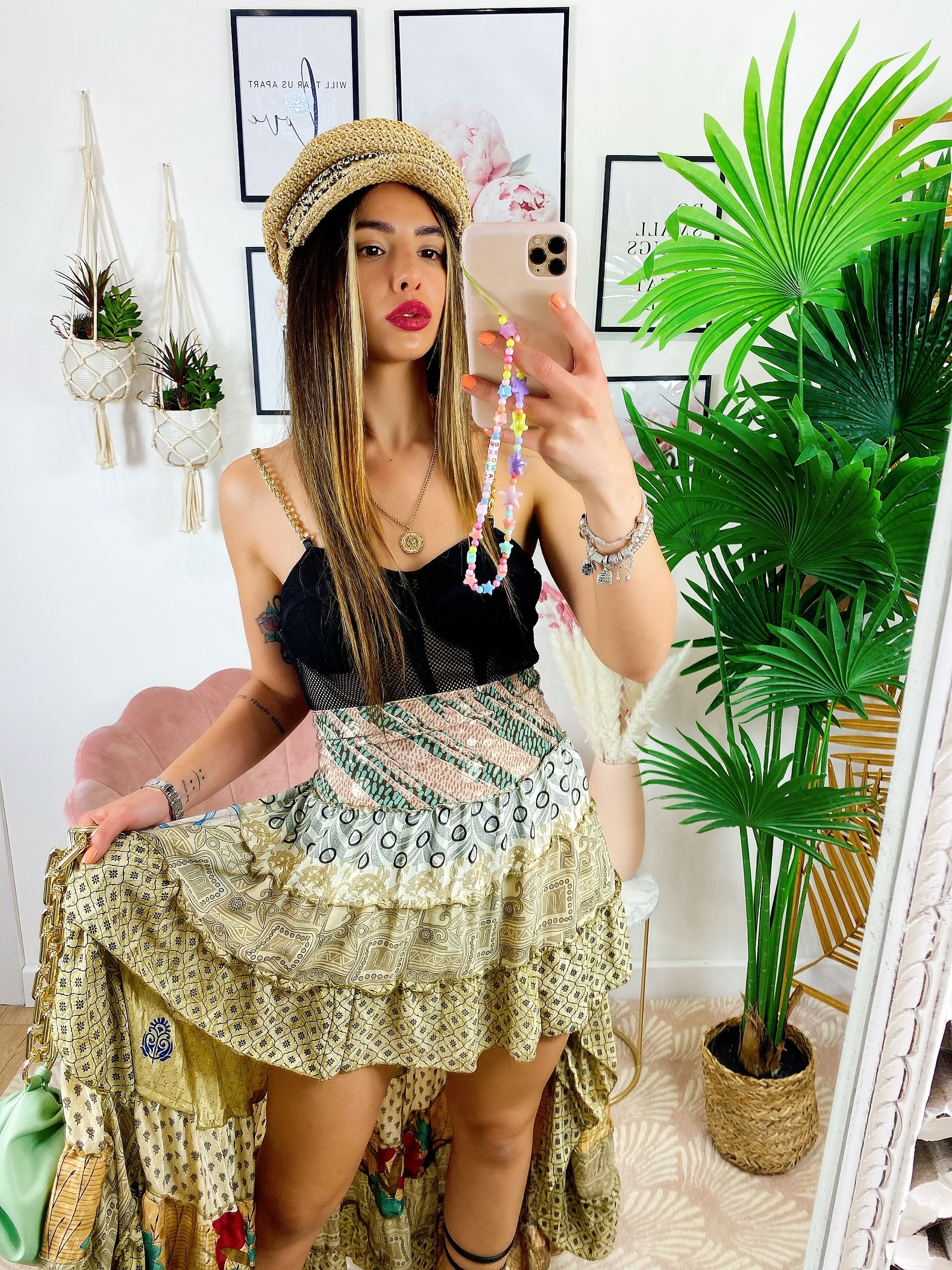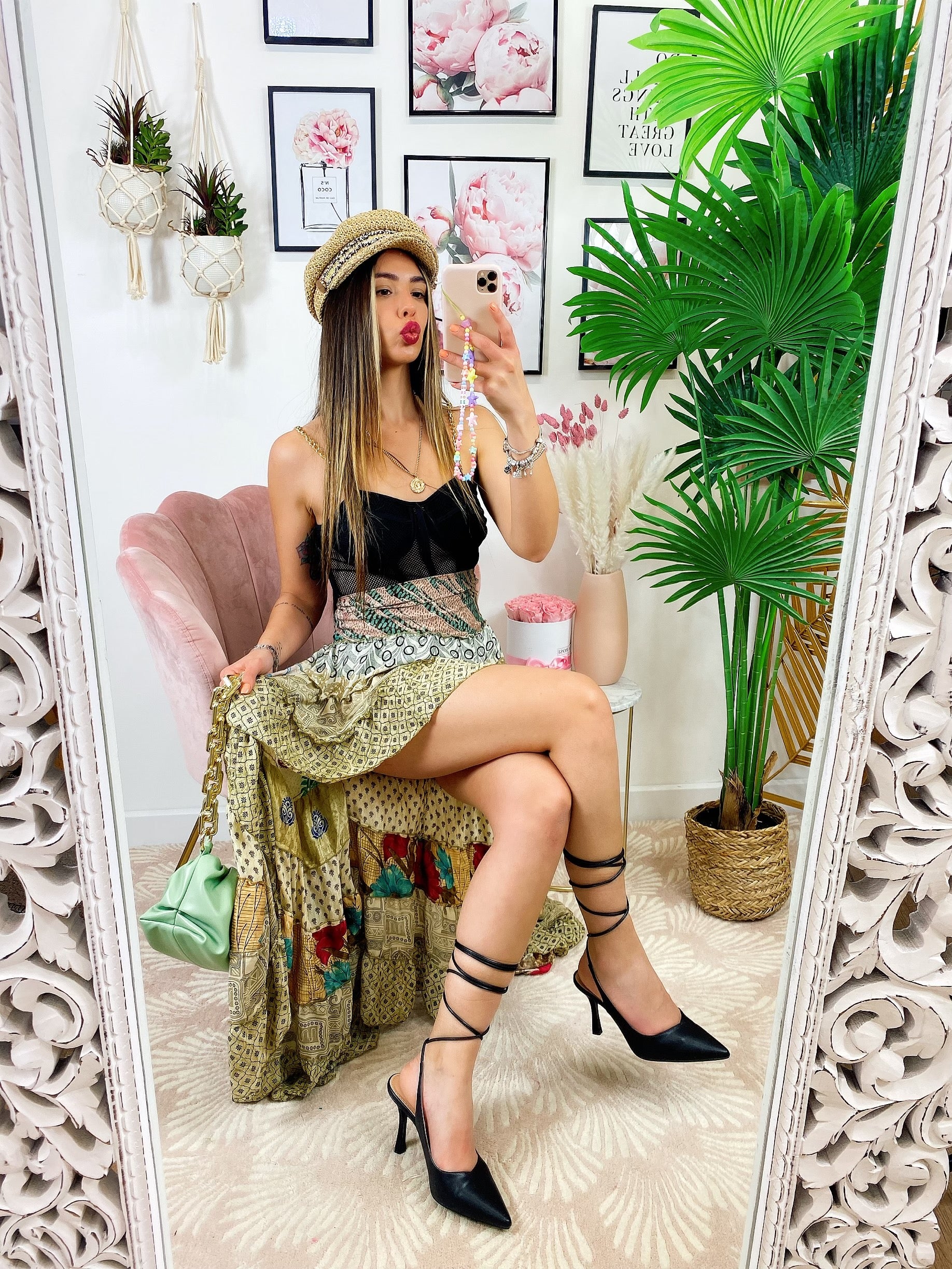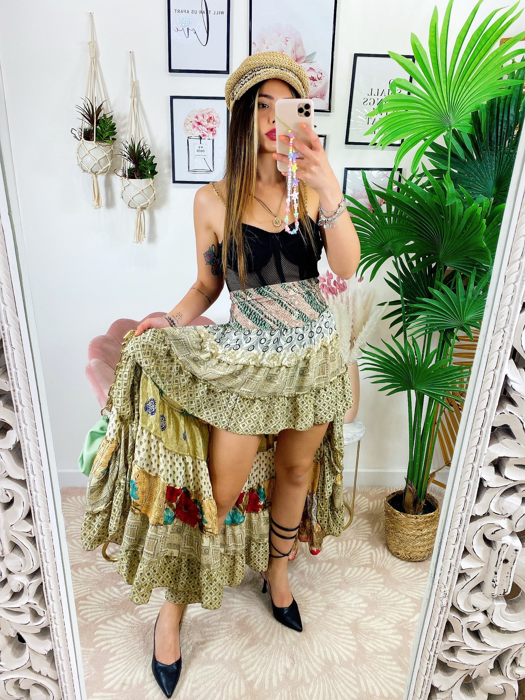 Gonna asimmetrica sfumature beige dettaglio bordeaux