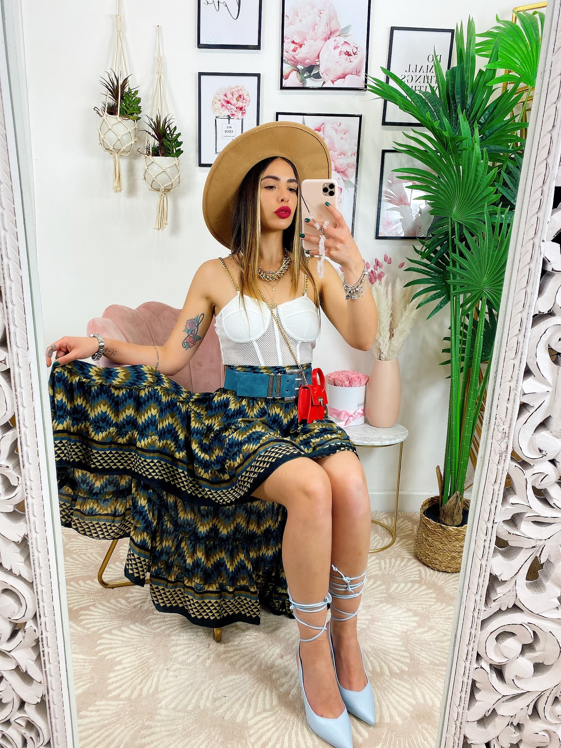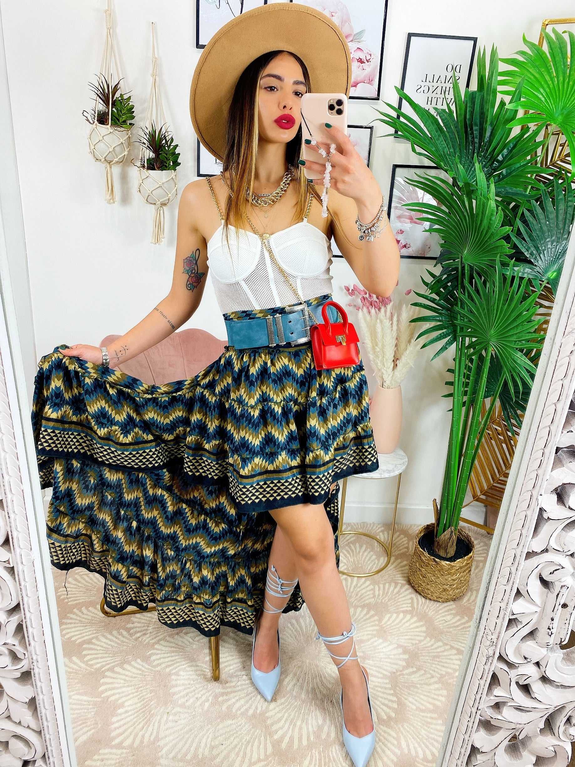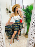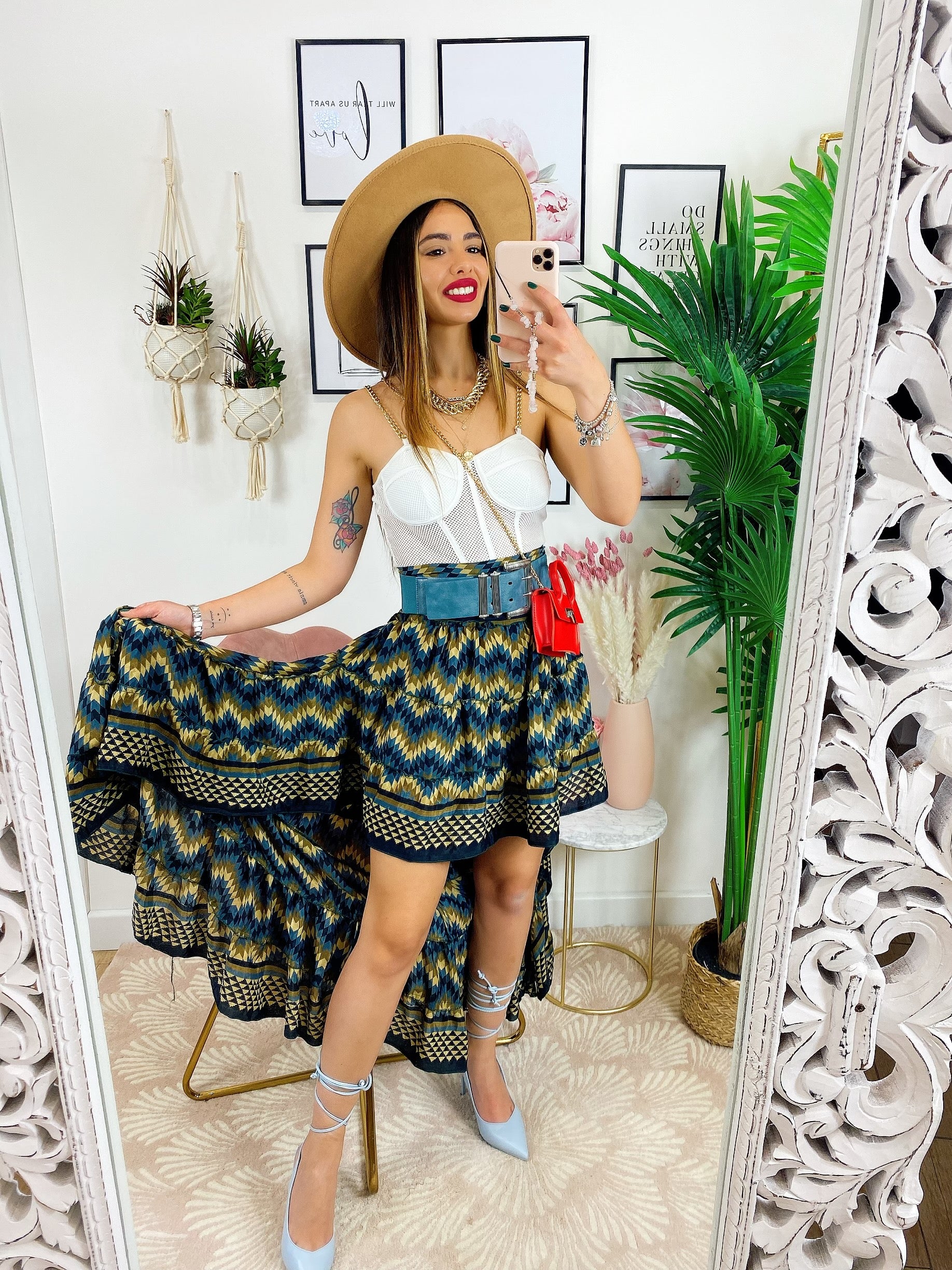 Gonna asimmetrica Estiva con elastico in vita e sul seno.