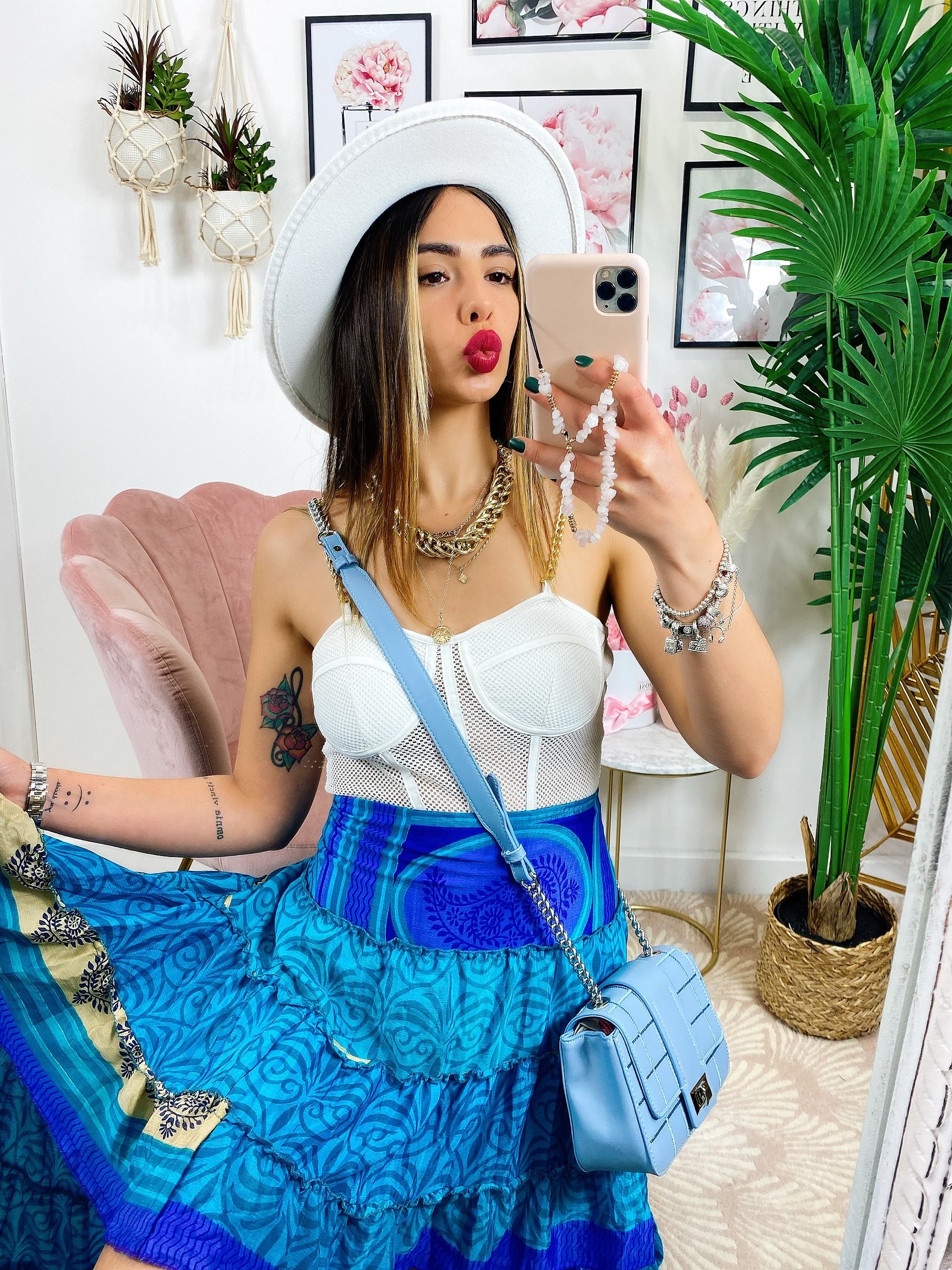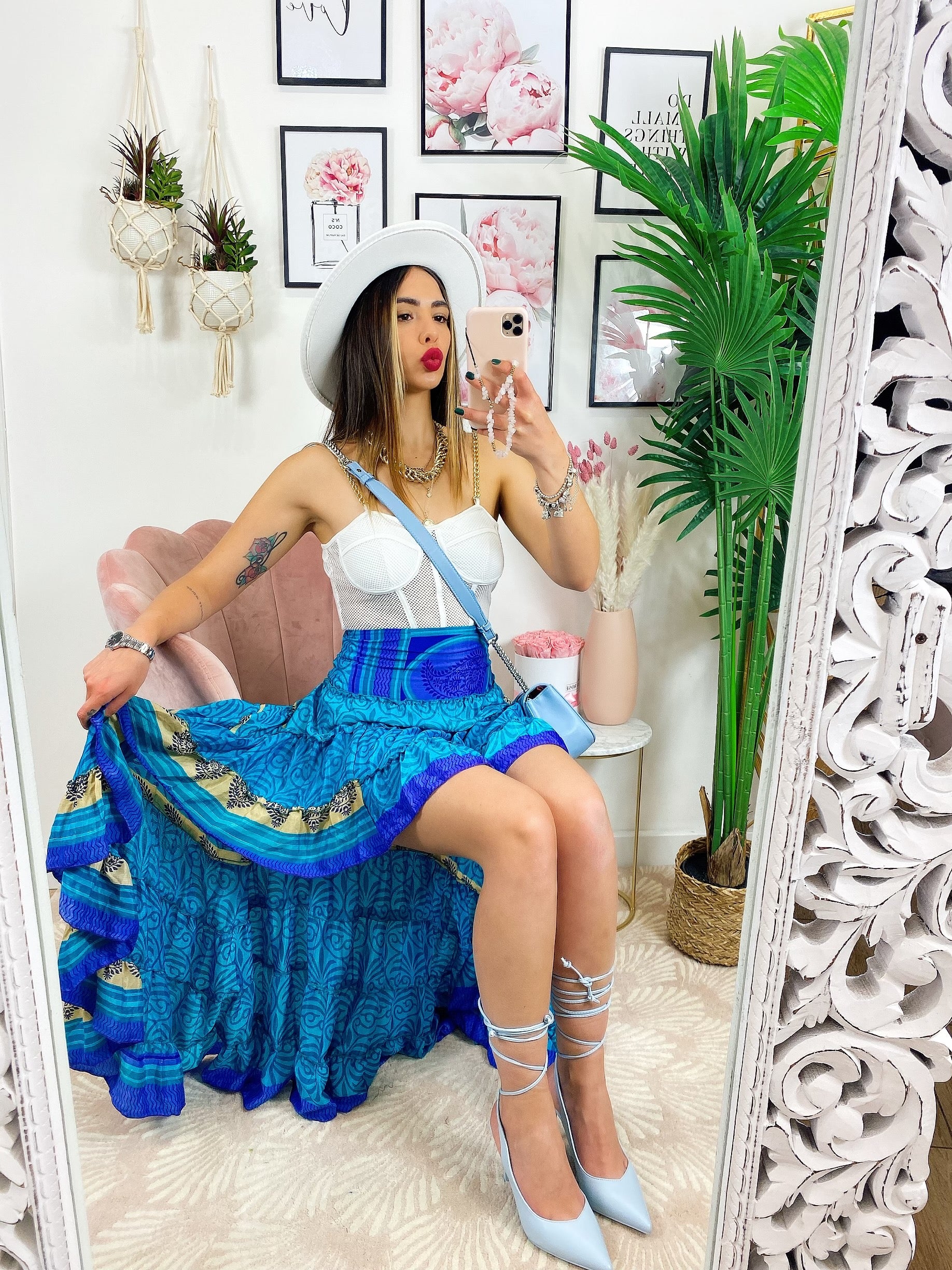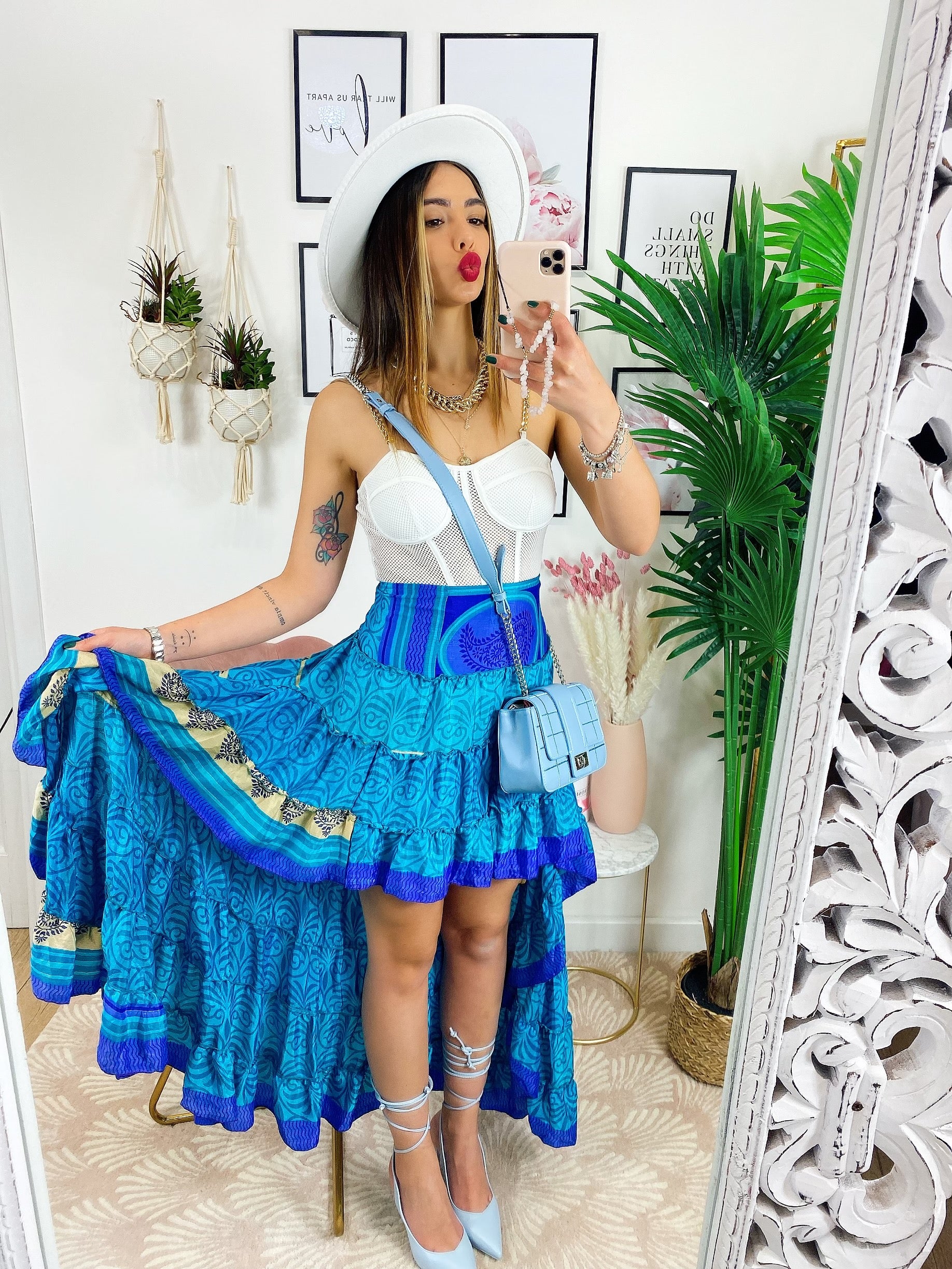Gonna asimmetrica Estiva con elastico in vita e sul seno.