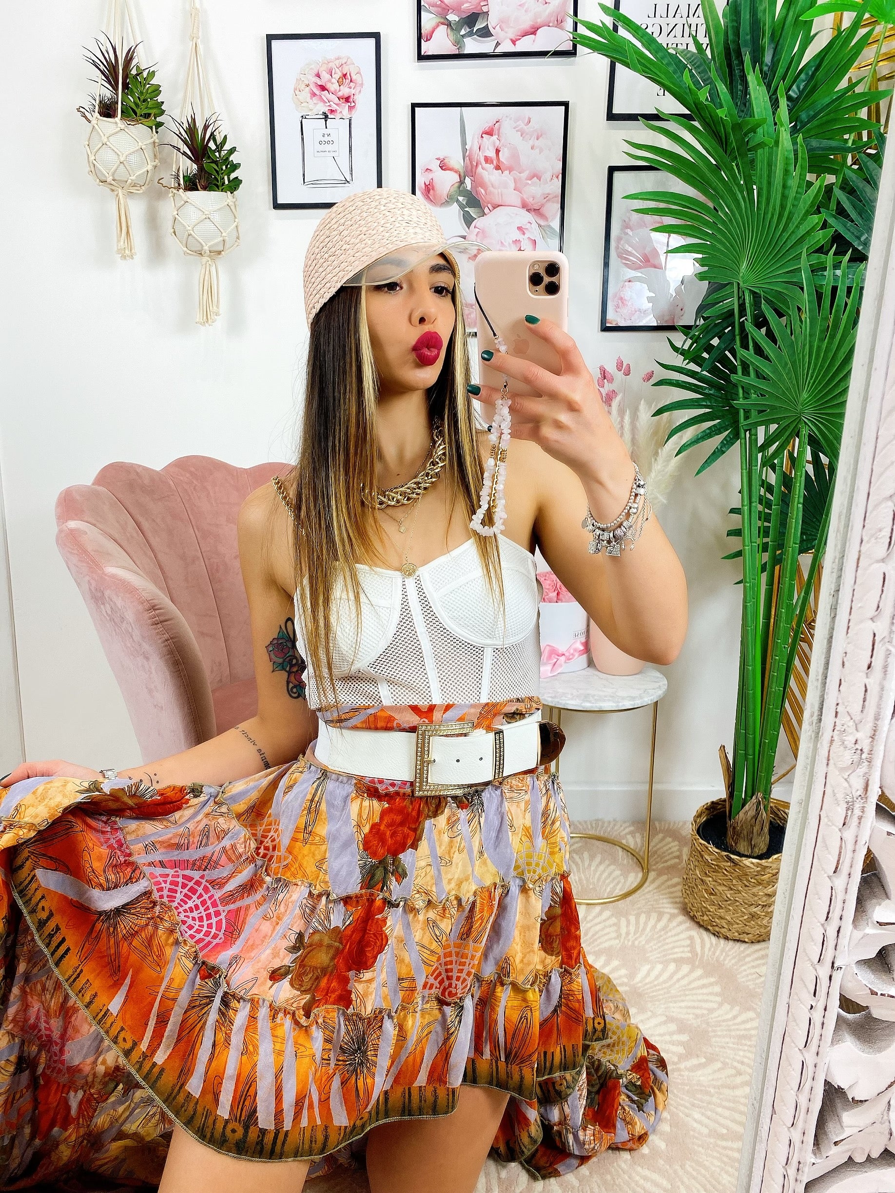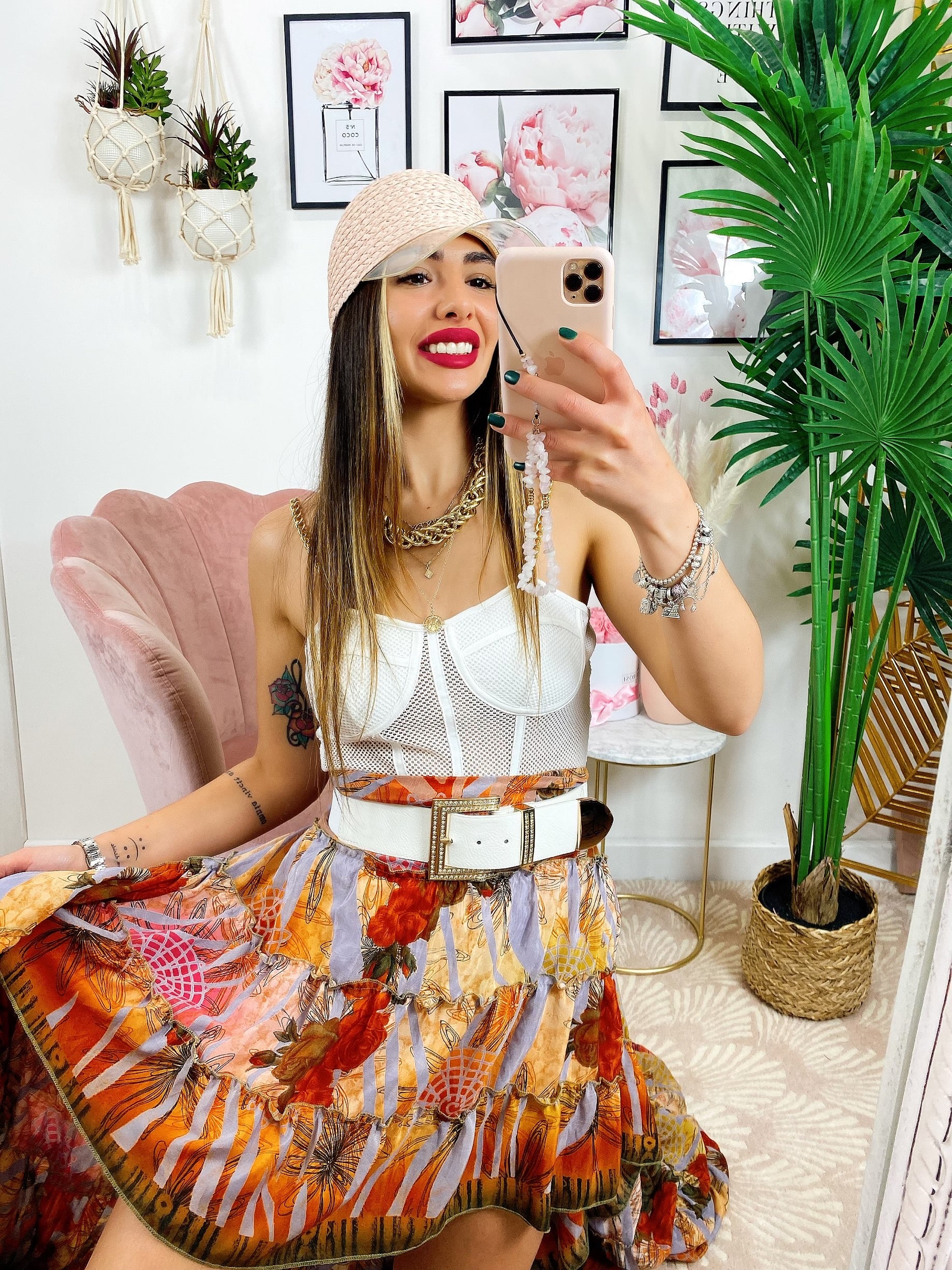 Gonna asimmetrica Estiva con elastico in vita e sul seno.