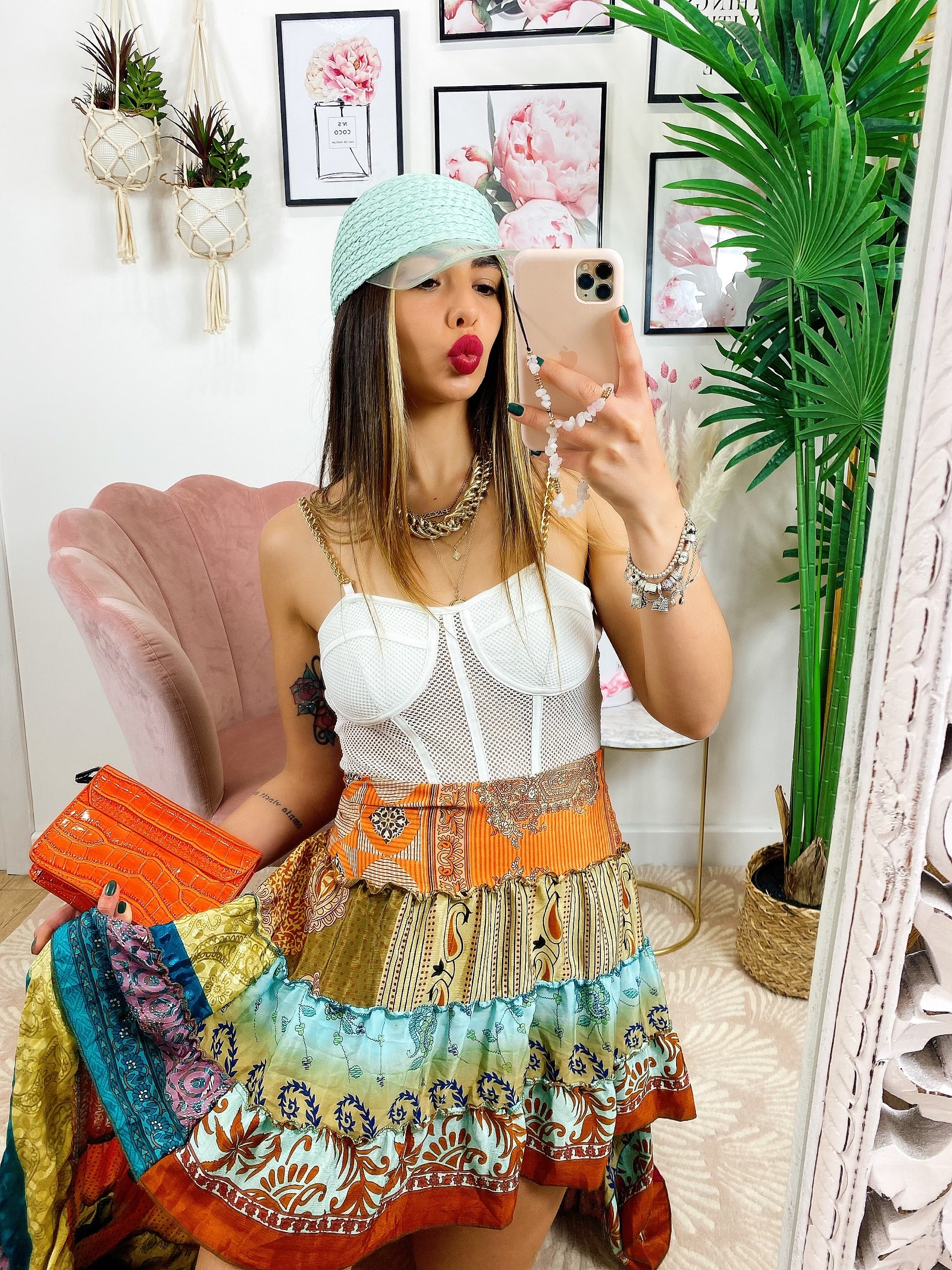 Gonna asimmetrica Estiva con elastico in vita e sul seno.
