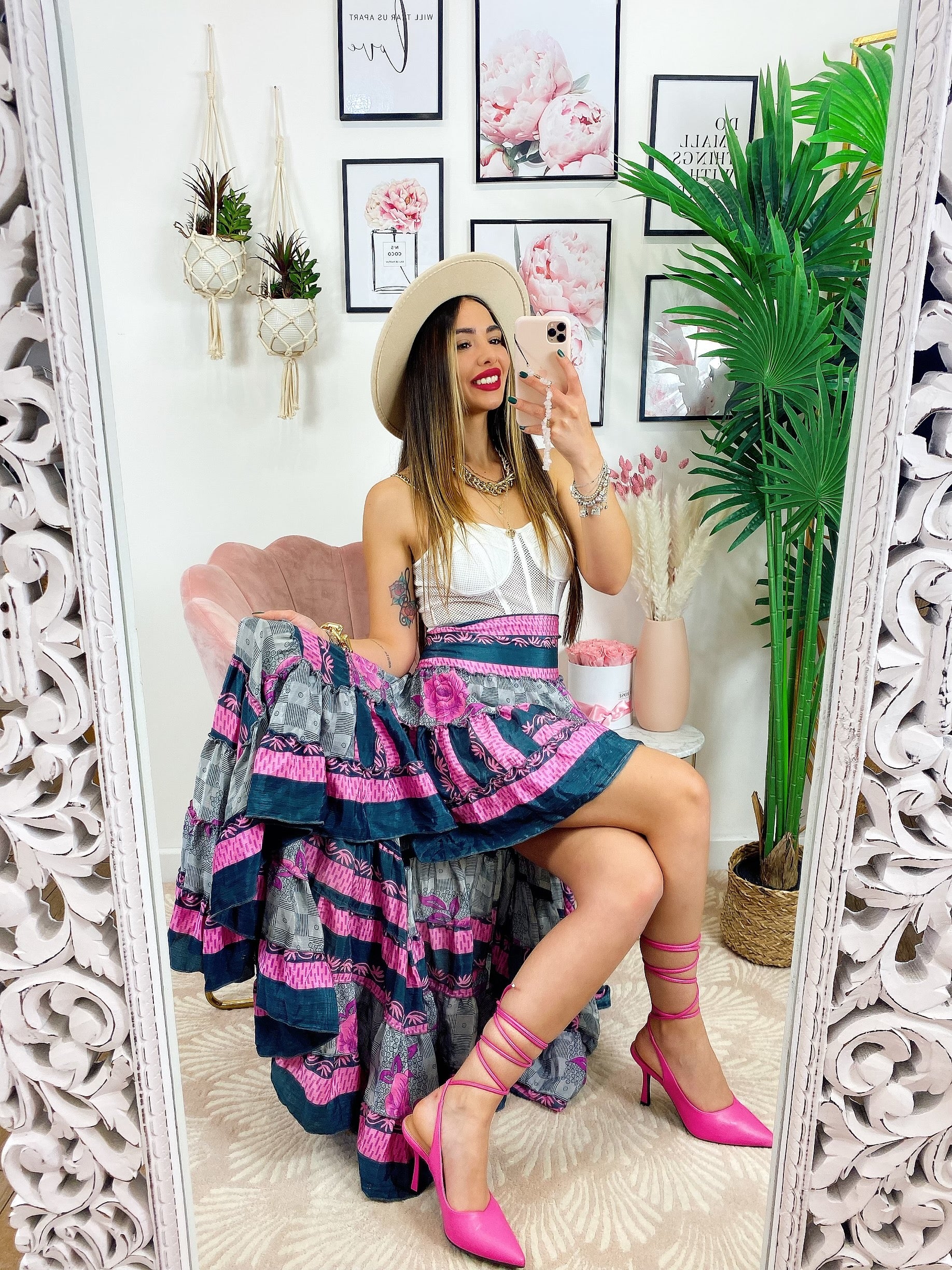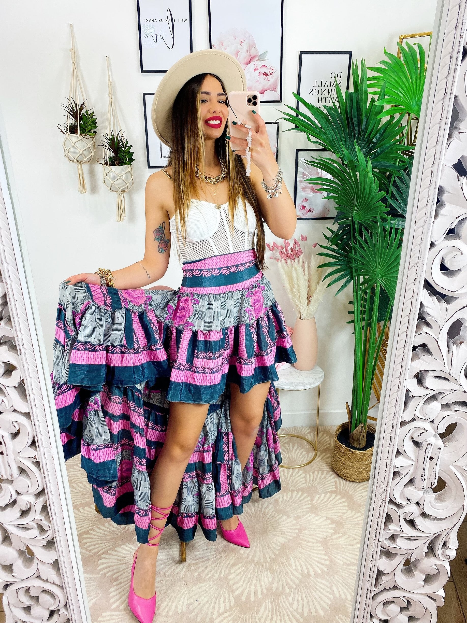 Gonna asimmetrica Estiva con elastico in vita e sul seno.