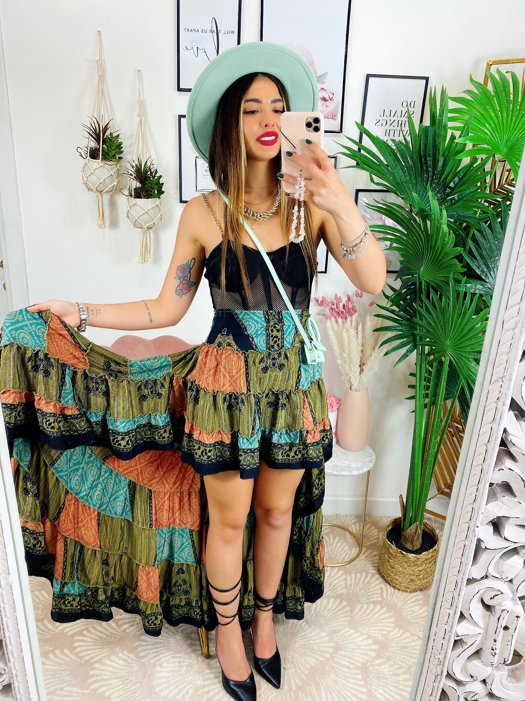 Gonna asimmetrica verde arancio