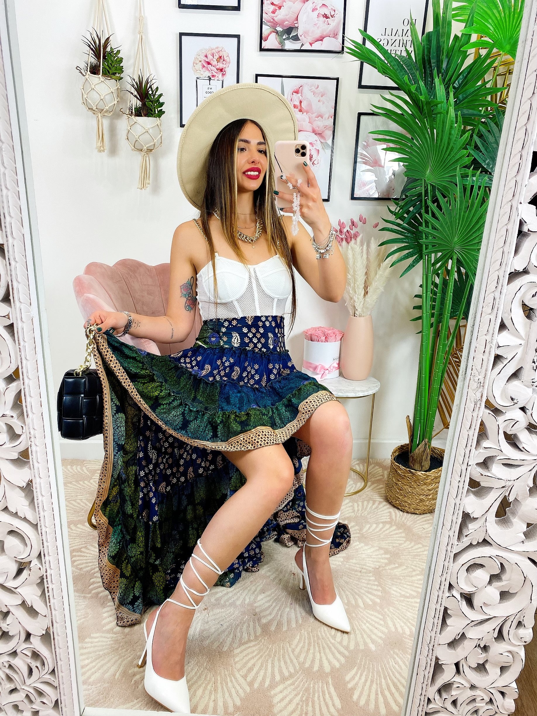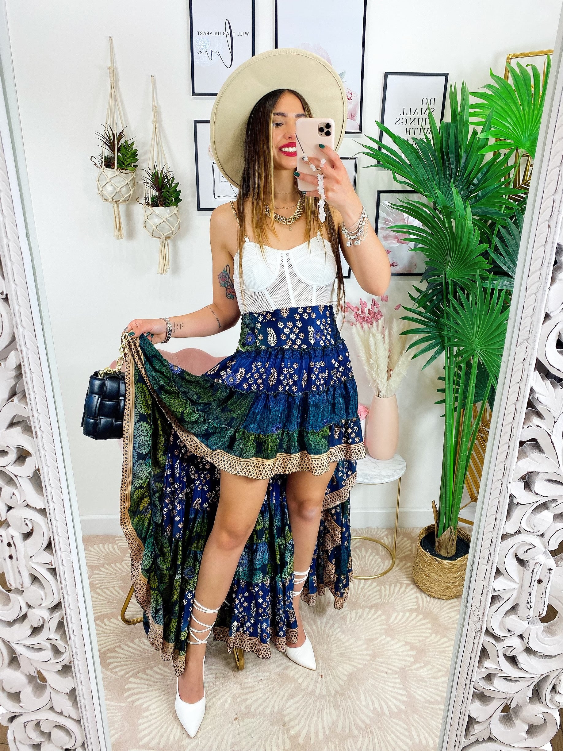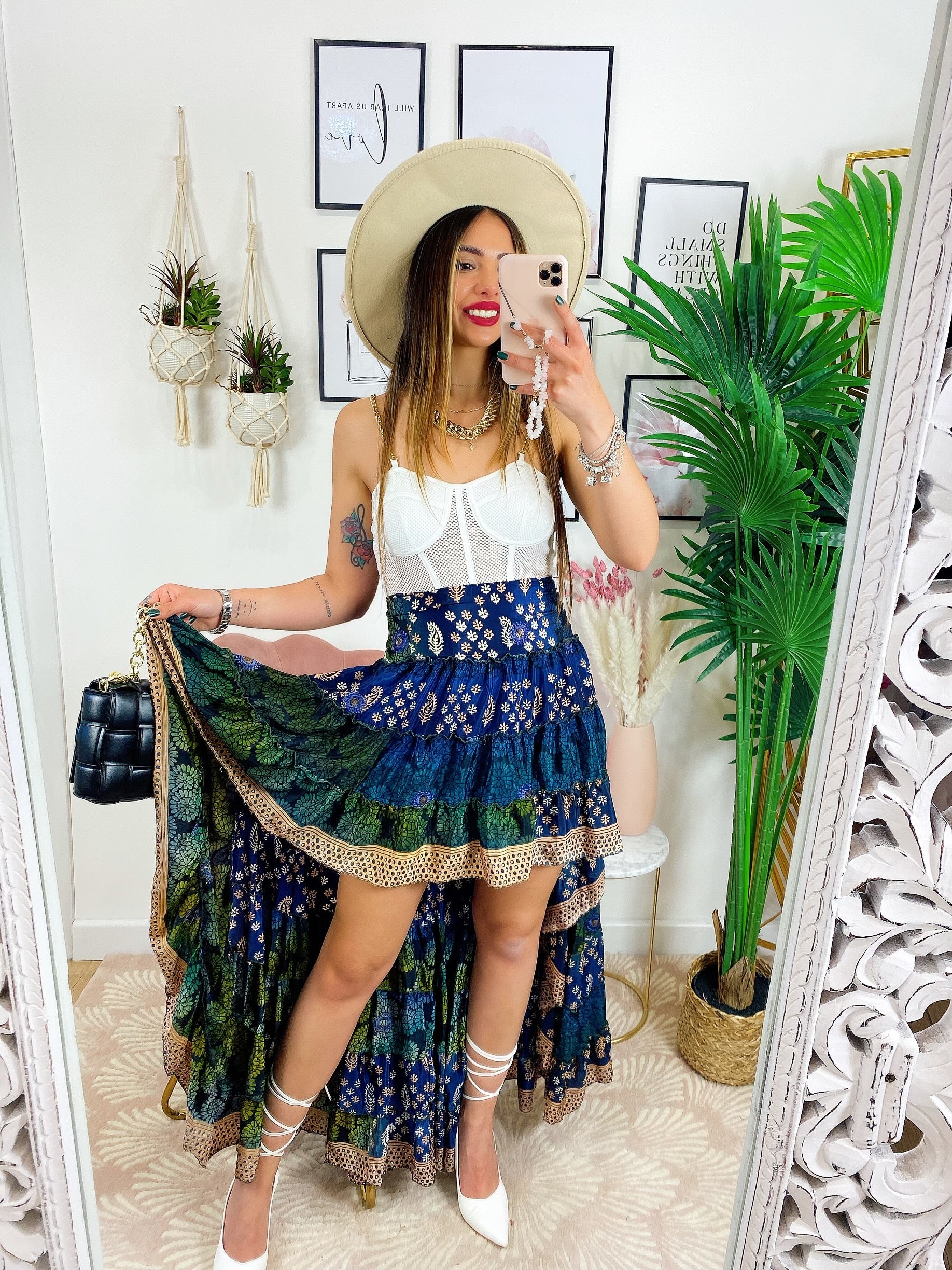 Gonna asimmetrica Estiva con elastico in vita e sul seno.