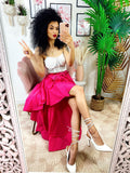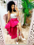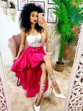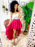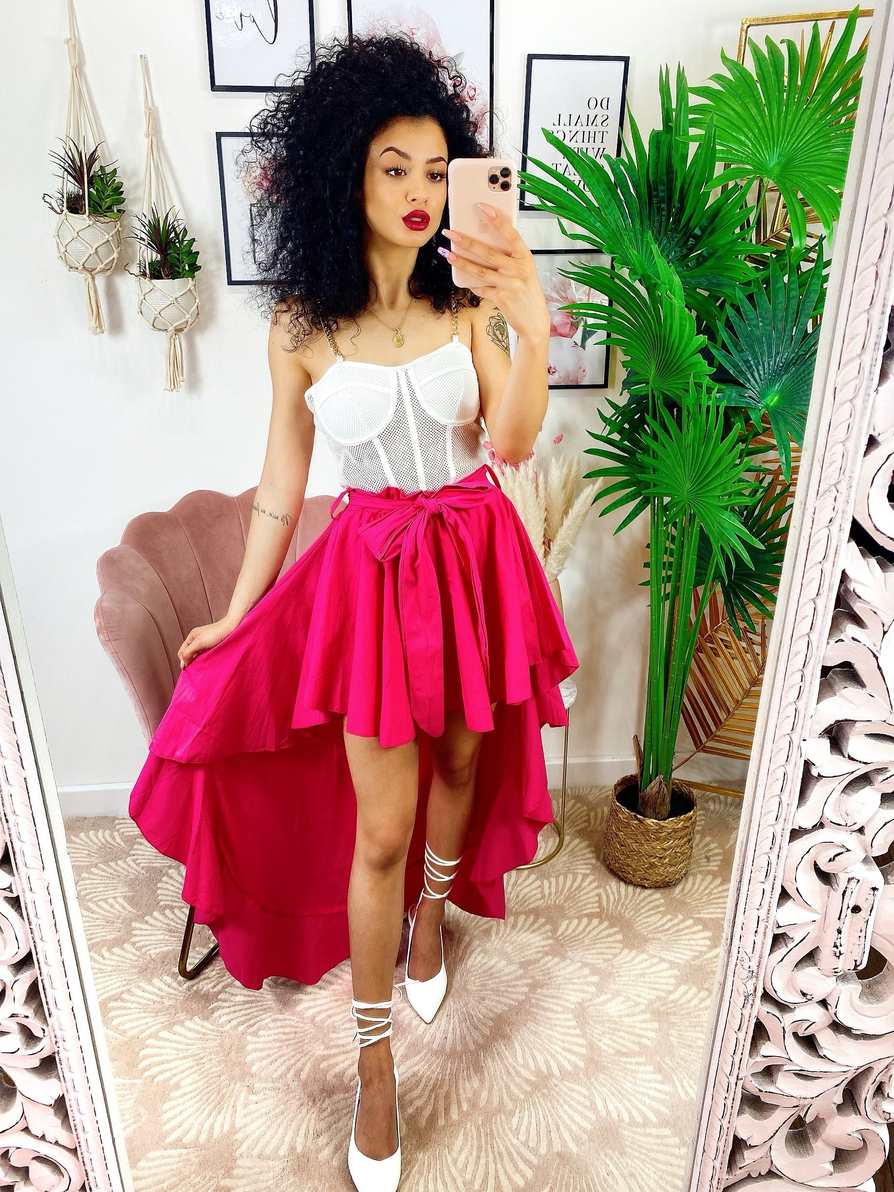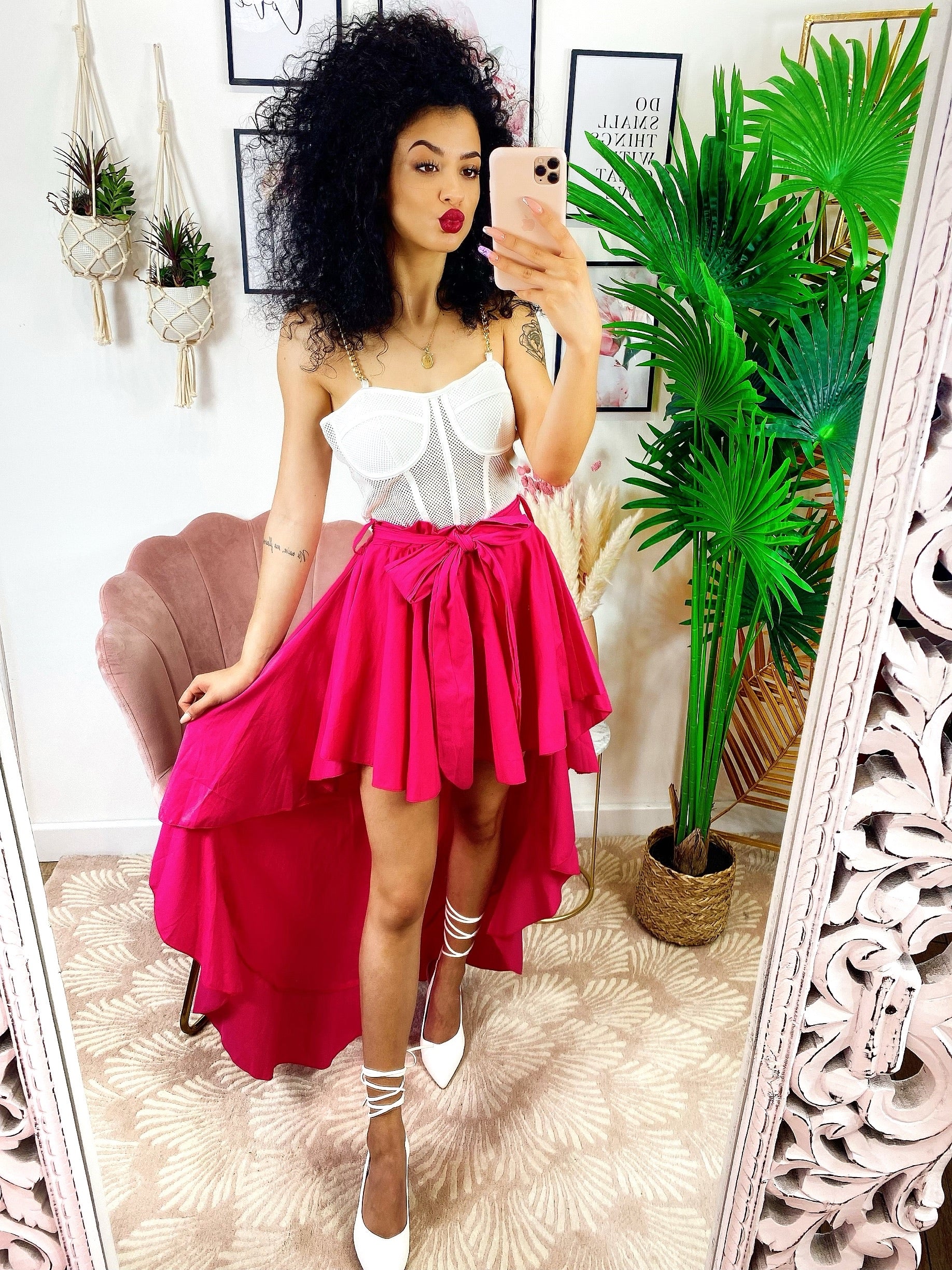 Gonna asimmetrica Estiva con elastico in vita e cintura a fiocco. Colore acceso brillante