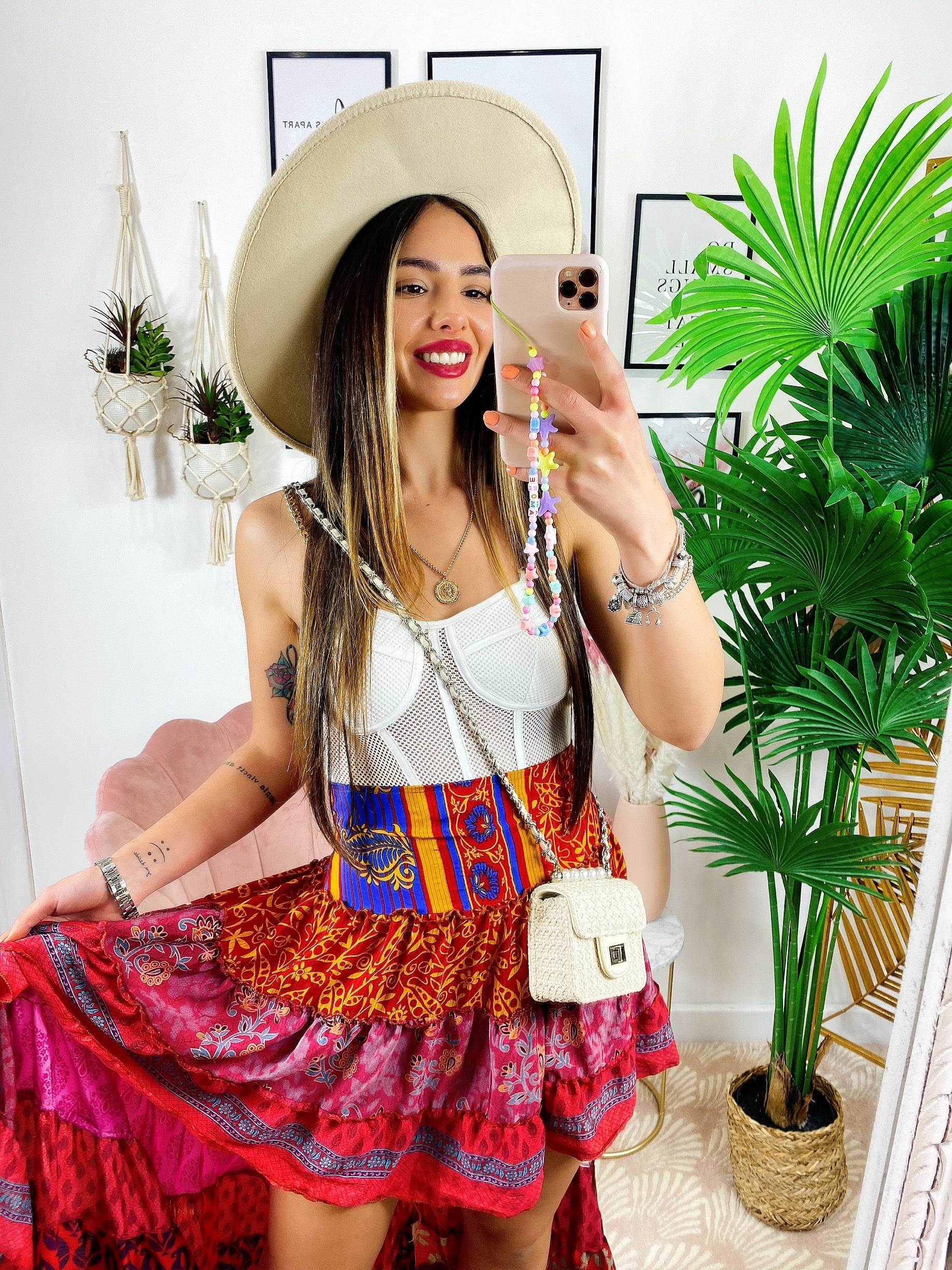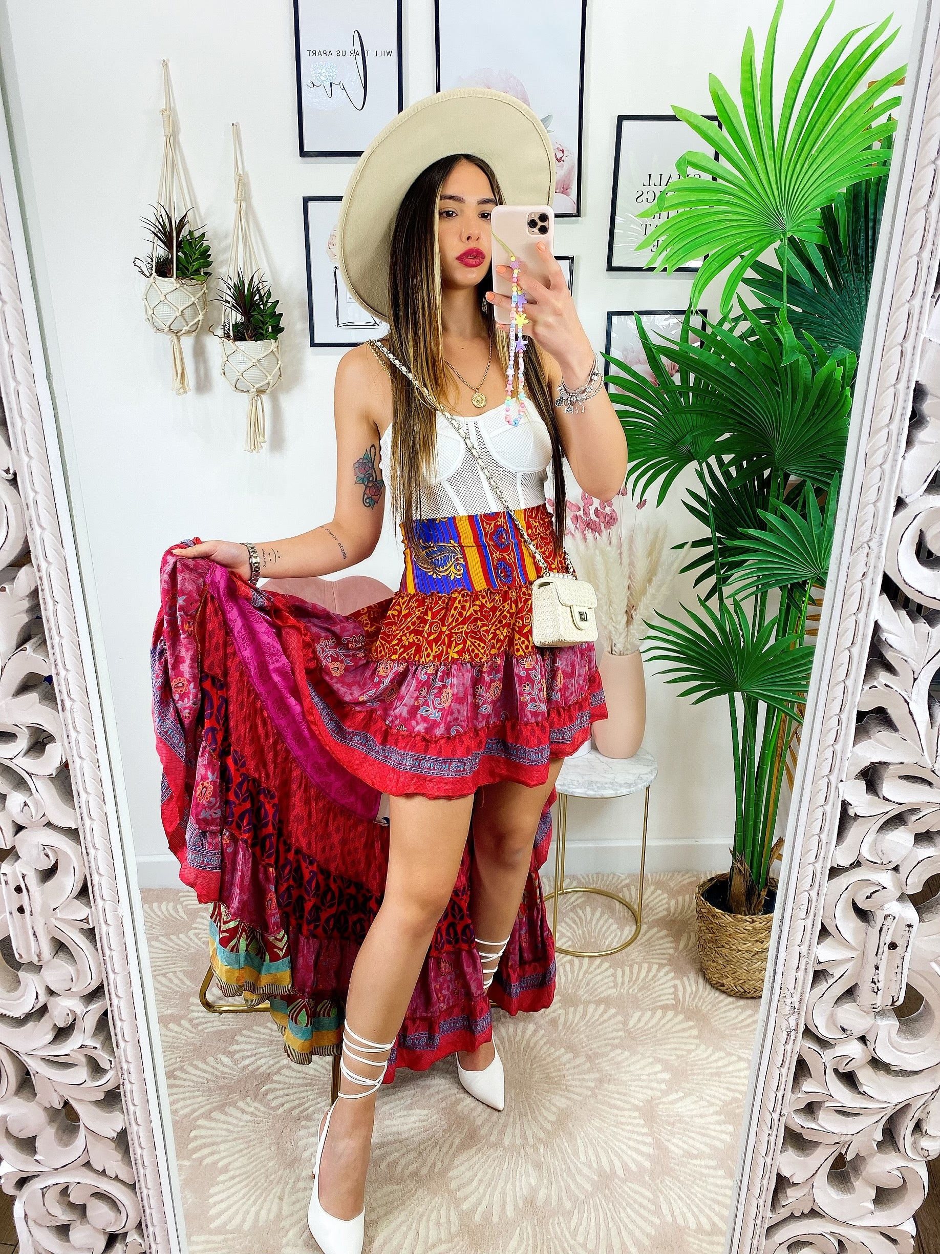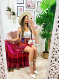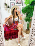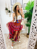 Gonna asimmetrica Fuxia e rosa fascia arancio