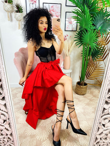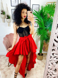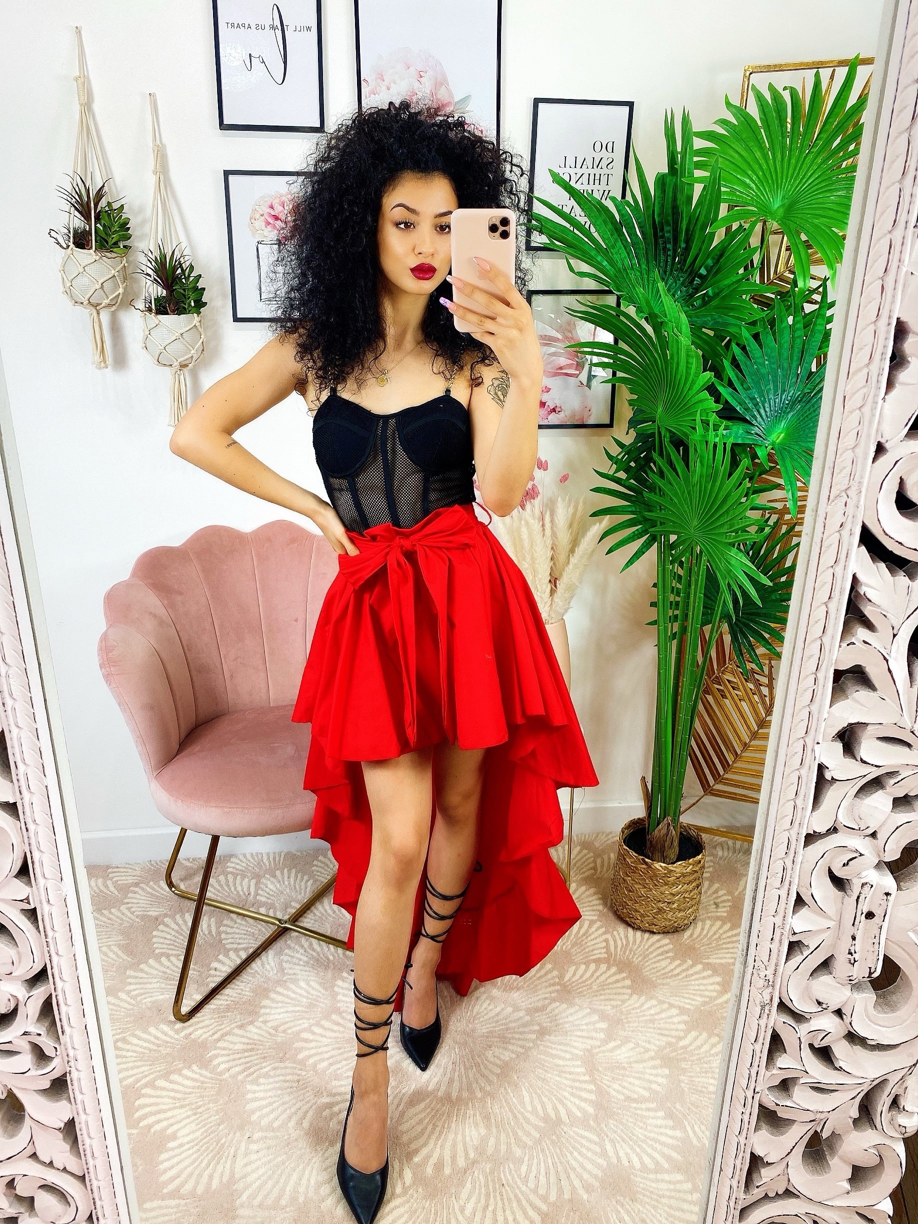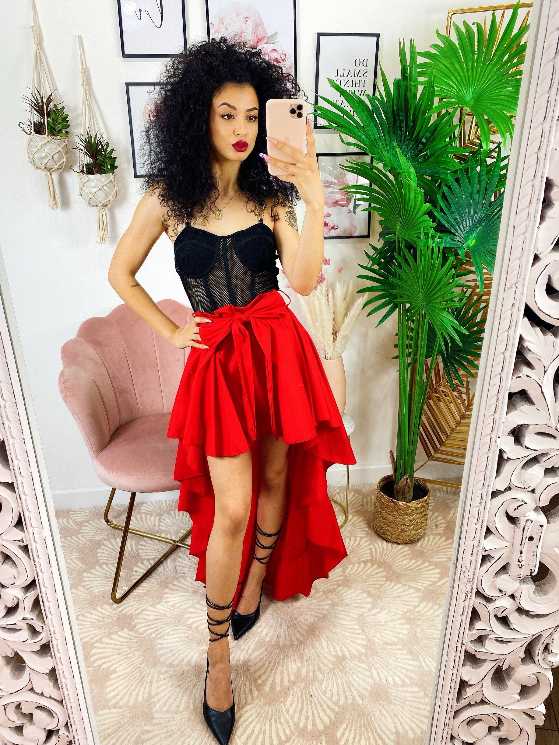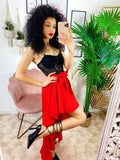 Gonna asimmetrica Estiva con elastico in vita e cintura a fiocco. Colore acceso brillante