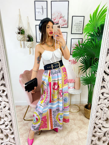 Gonna lunga con elastico in vita, comoda e prettamente estiva.