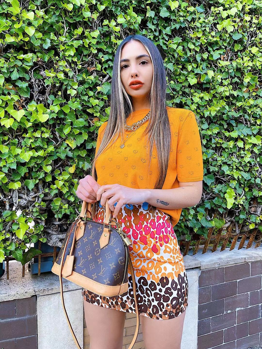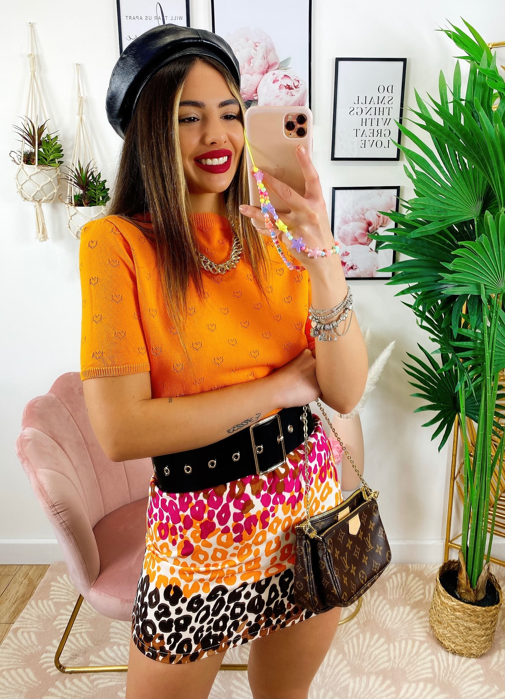 Gonna a fascia aderente e elasticizzata con trama maculata sui toni aranciati