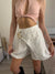 Gonna pantalone con elastico in vita e catena oro in dettaglio