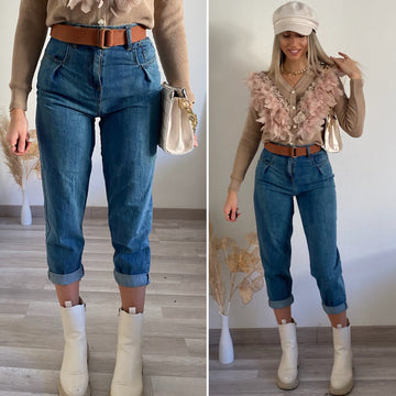 Jeans boyfriend con cintura compresa brown