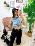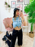 Jeans sfrangiato con borchie laterali