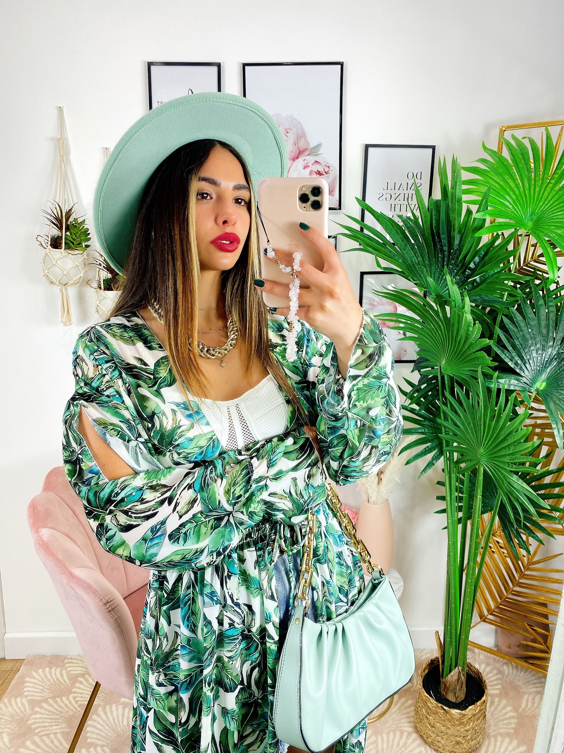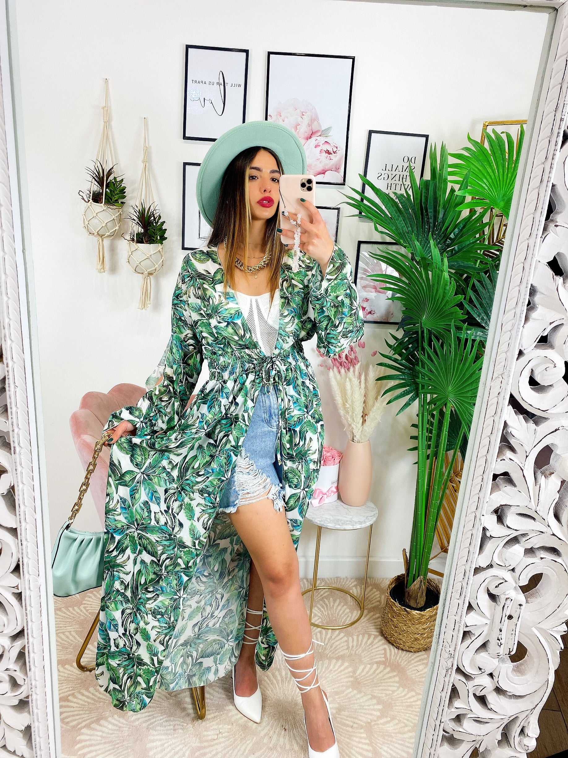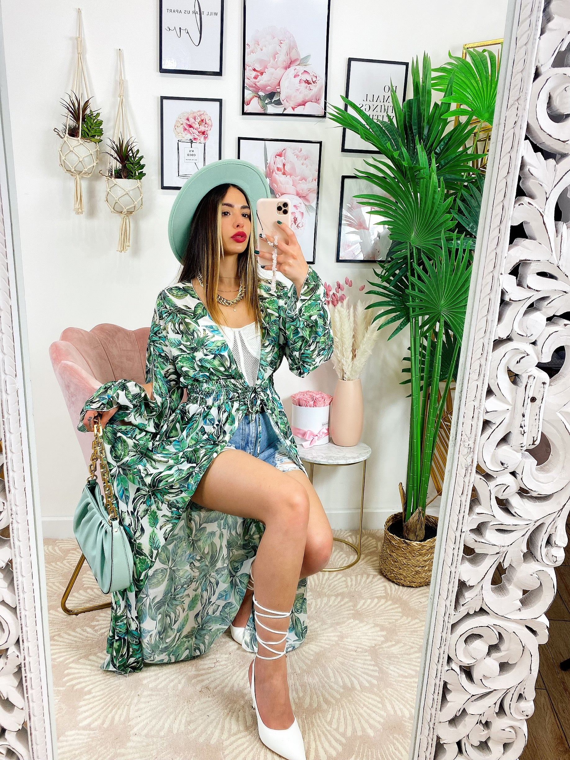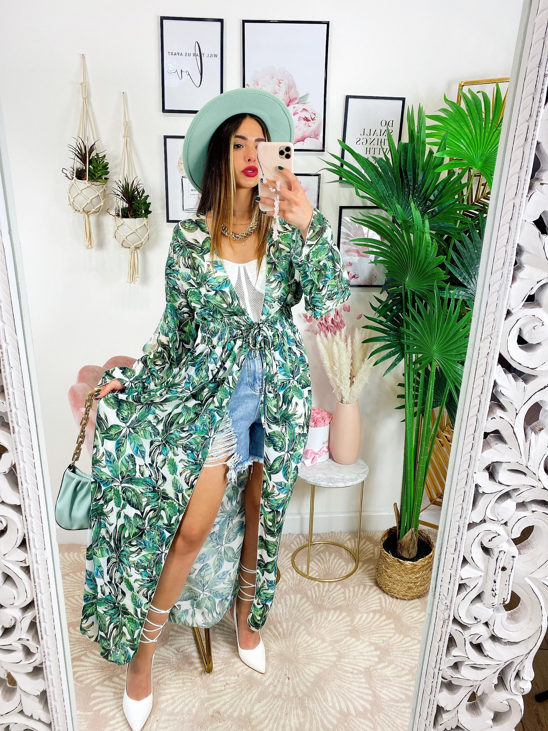Kimono base floreale verde