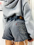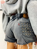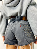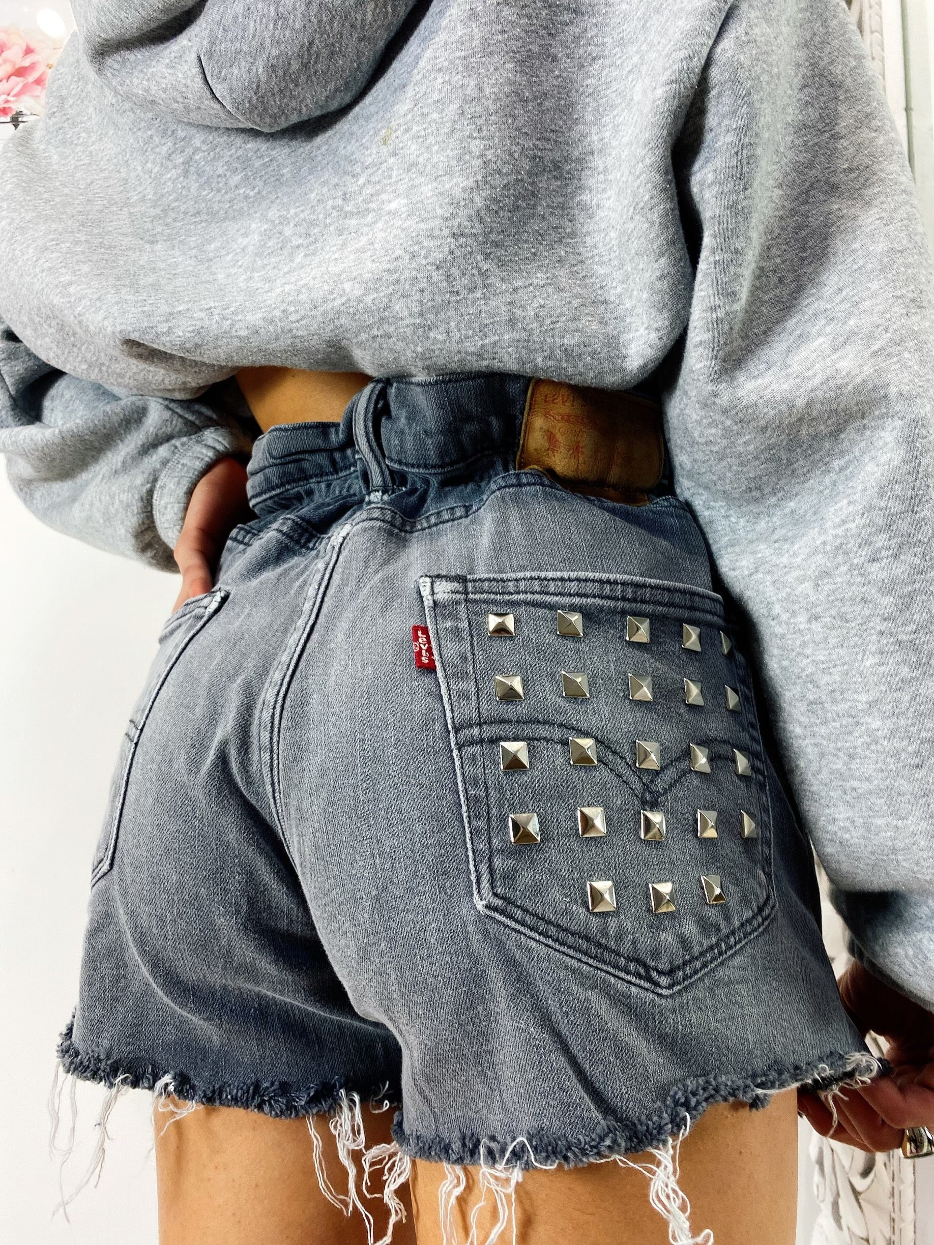 Short Vintage Levi’s alta qualità con strappi. Jeans vintage lavorati a mano Considerati pezzi unici poichè interamente Personalizzati. Lievi differenze rispetto alla foto ne denotano l'unicità e la sua completa lavorazione handmade.