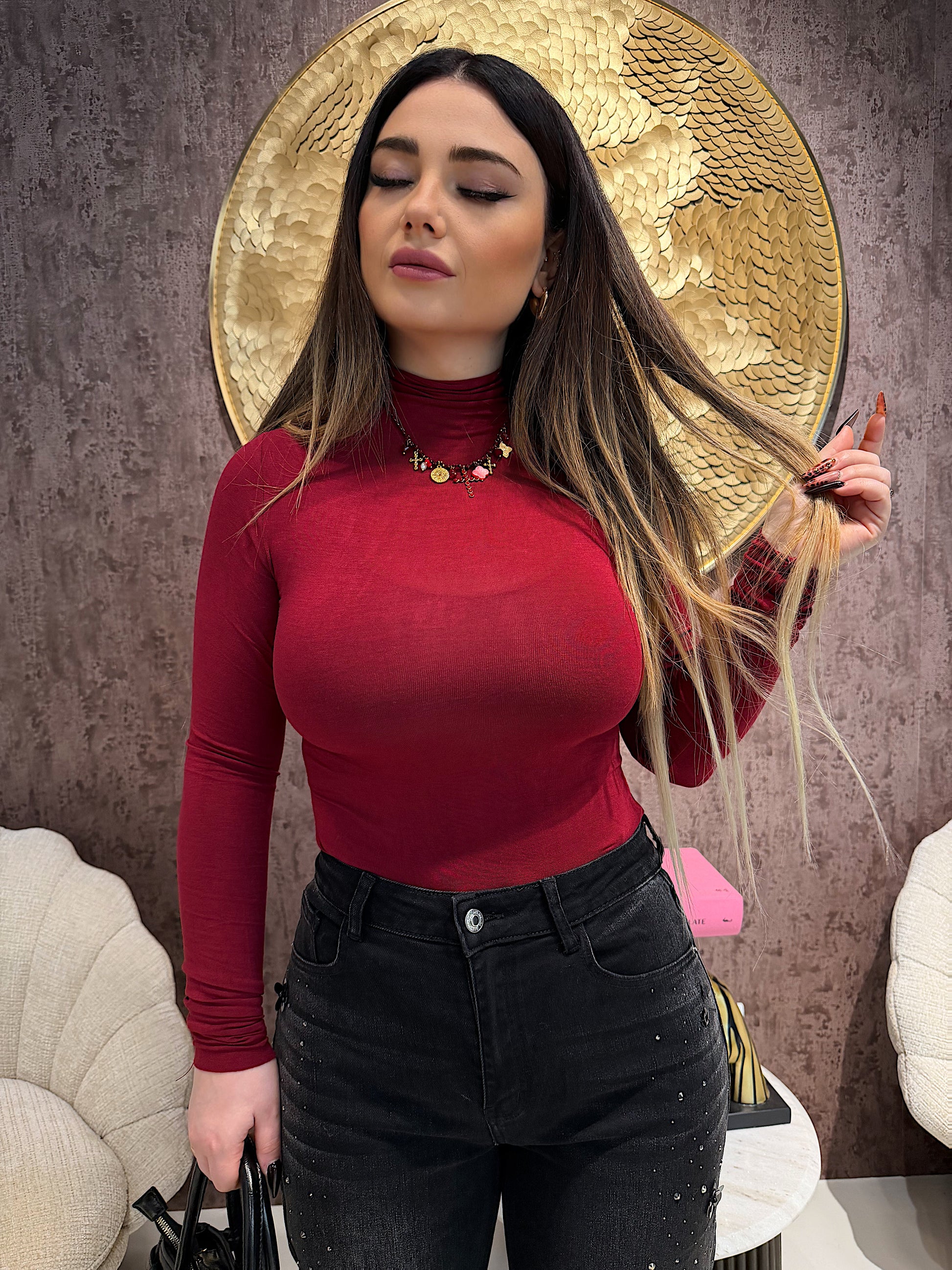 Il tessuto elasticizzato e il collo alto la rendono ideale per essere indossata da sola o sotto giacche, cardigan e pellicce per un look pulito e raffinato.