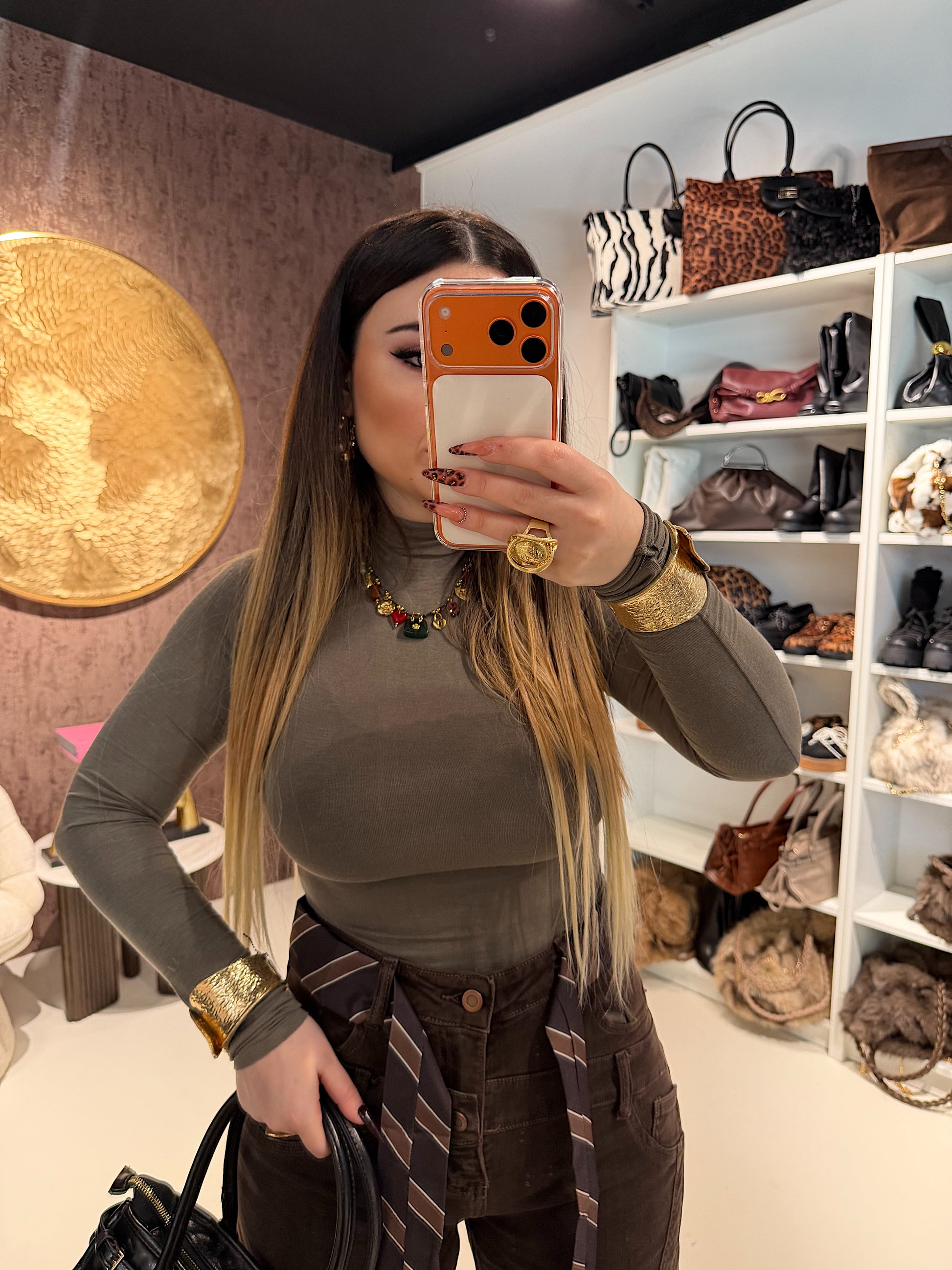 La maglia Essential è il capo base che non può mancare nel tuo guardaroba. Aderente, minimal e super morbida al tatto, valorizza la silhouette e si adatta perfettamente a ogni outfit.