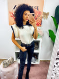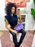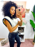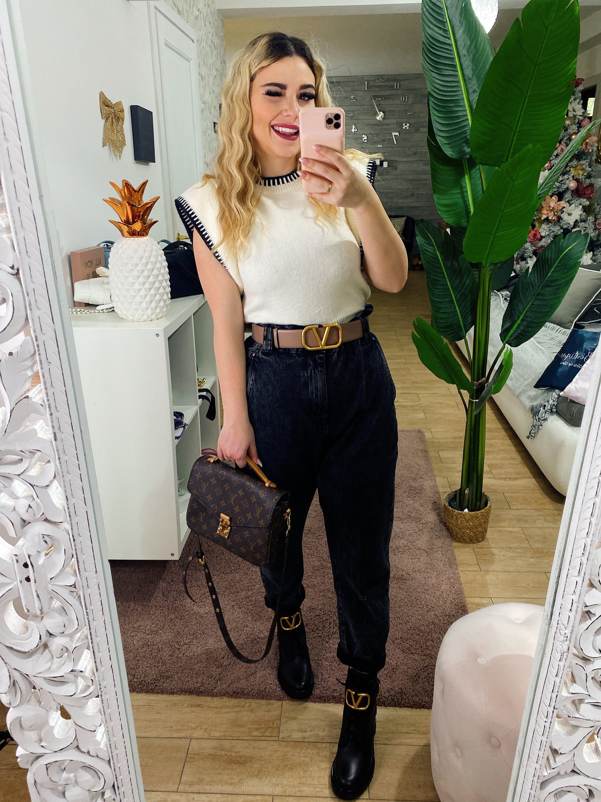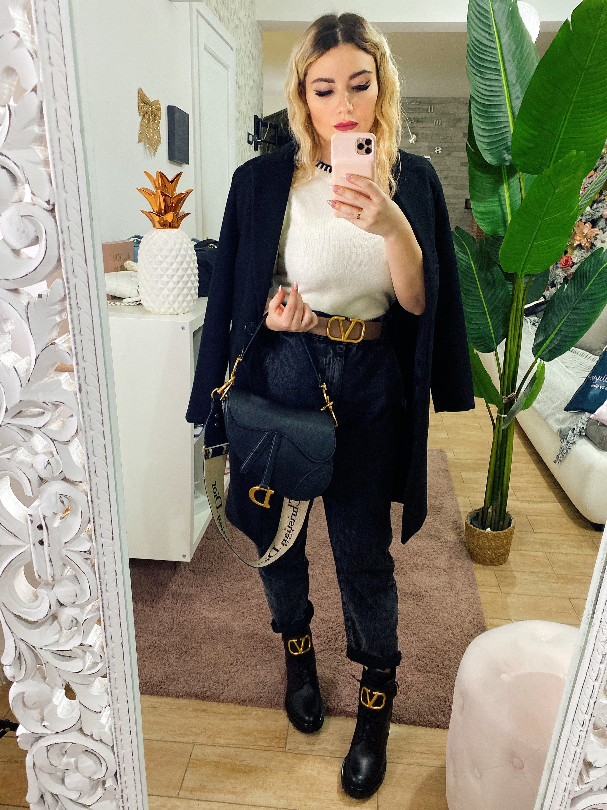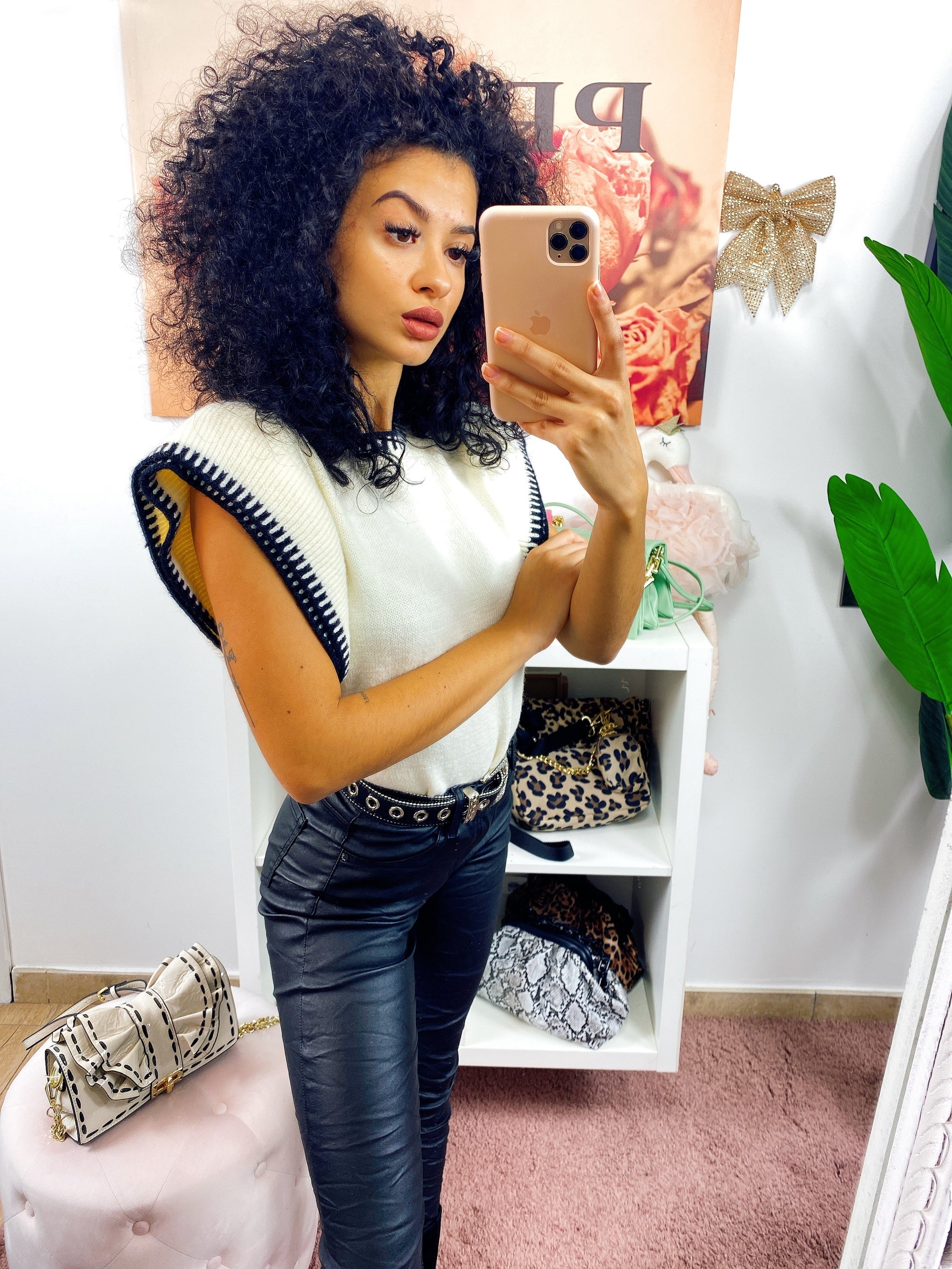 Maglioncino particolarissimo bicolore con manica molto ampia, in un morbidissimo tessuto caldo e pesante.