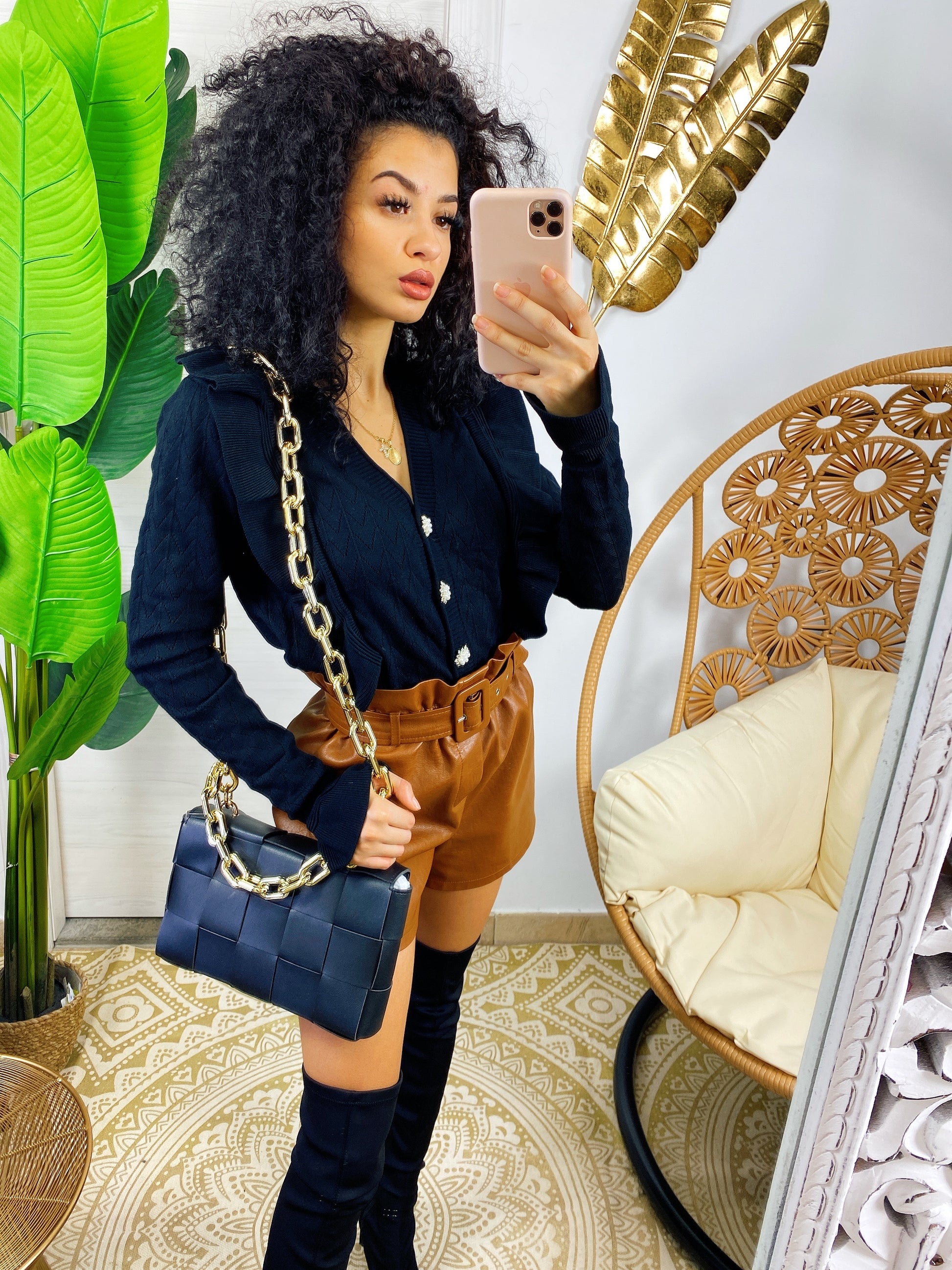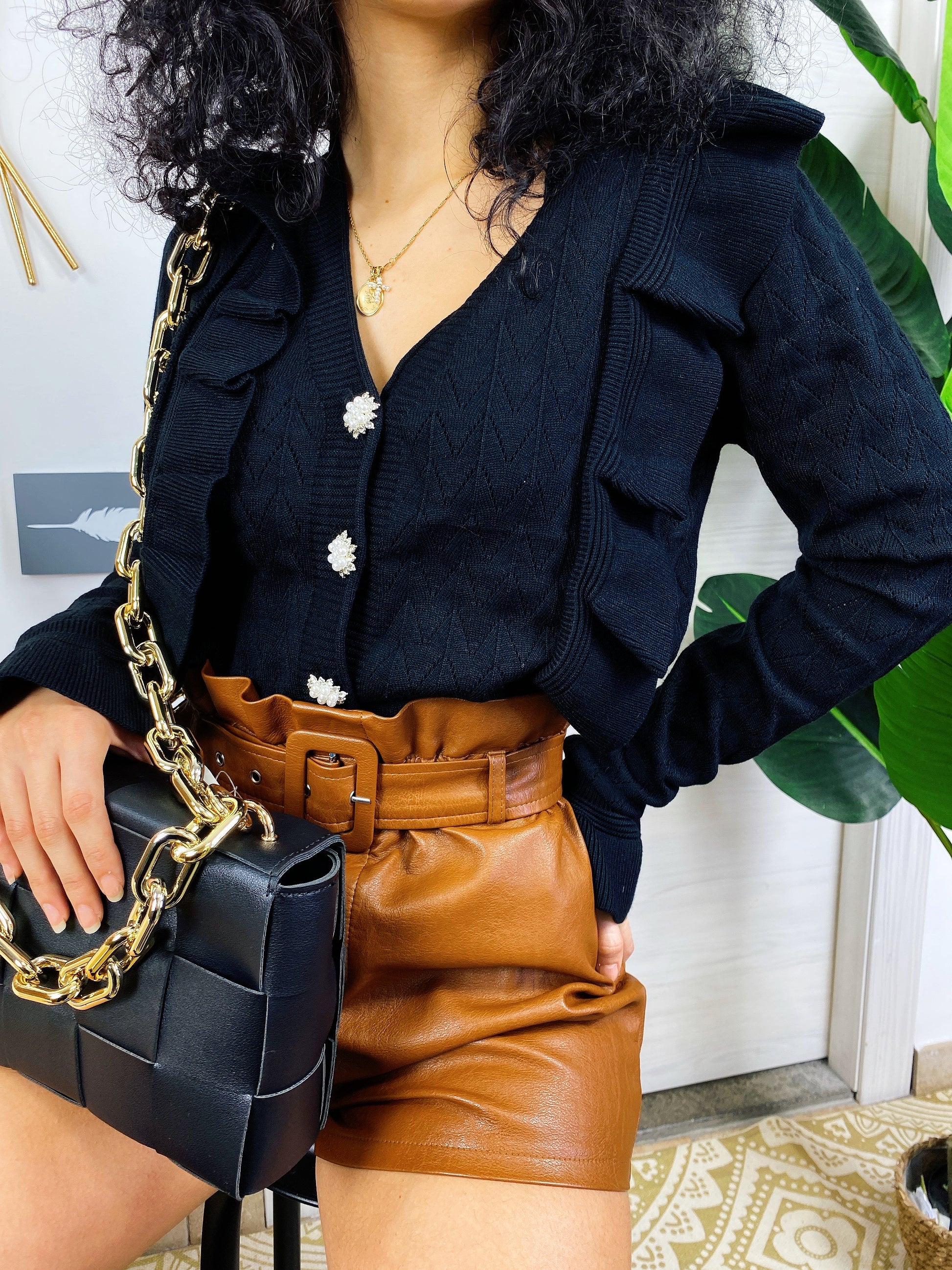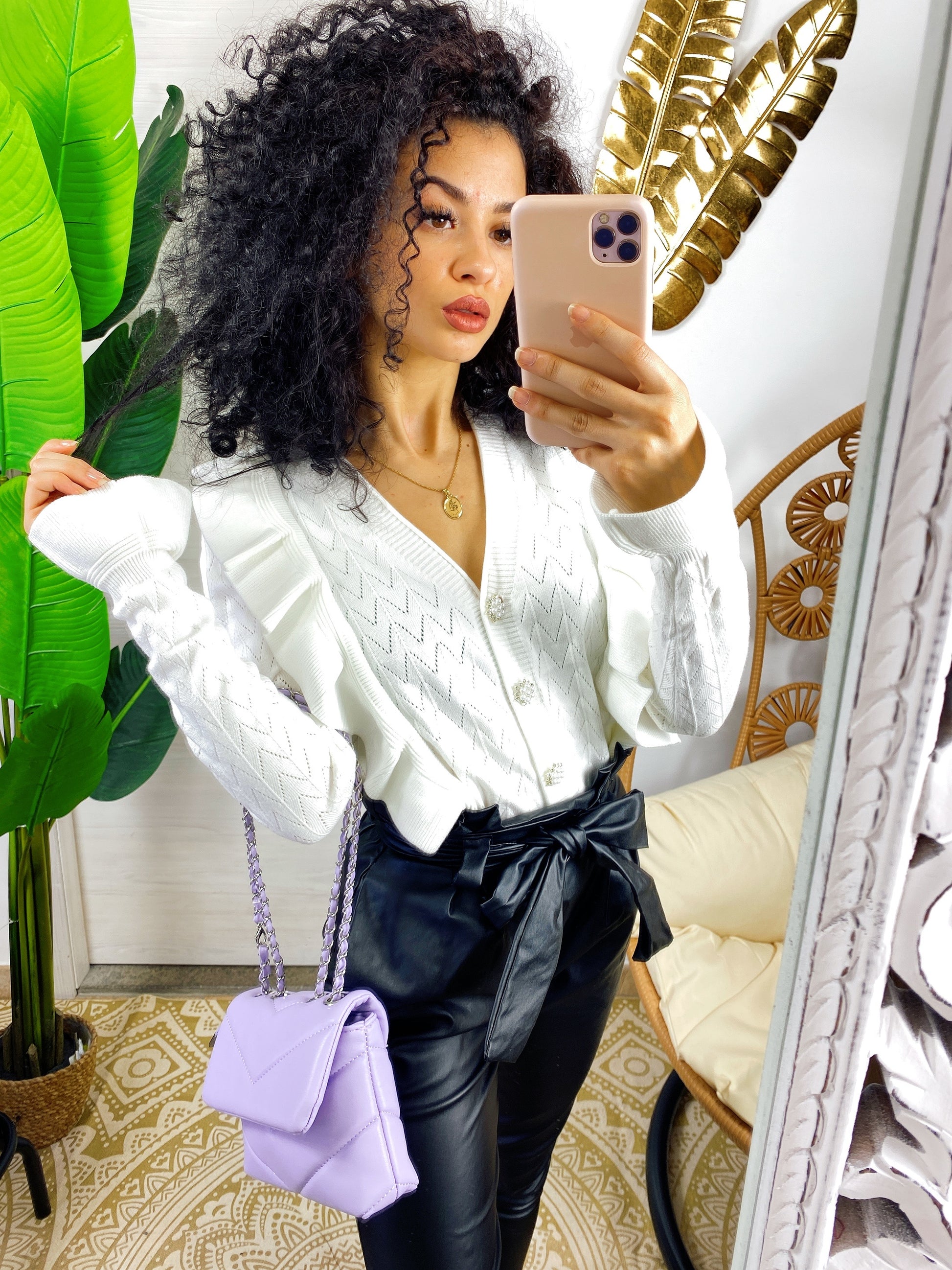 Maglioncino o cardigan con bottoni. Trama ricamata e traforato. Taglia unica