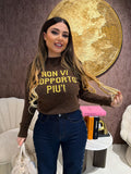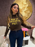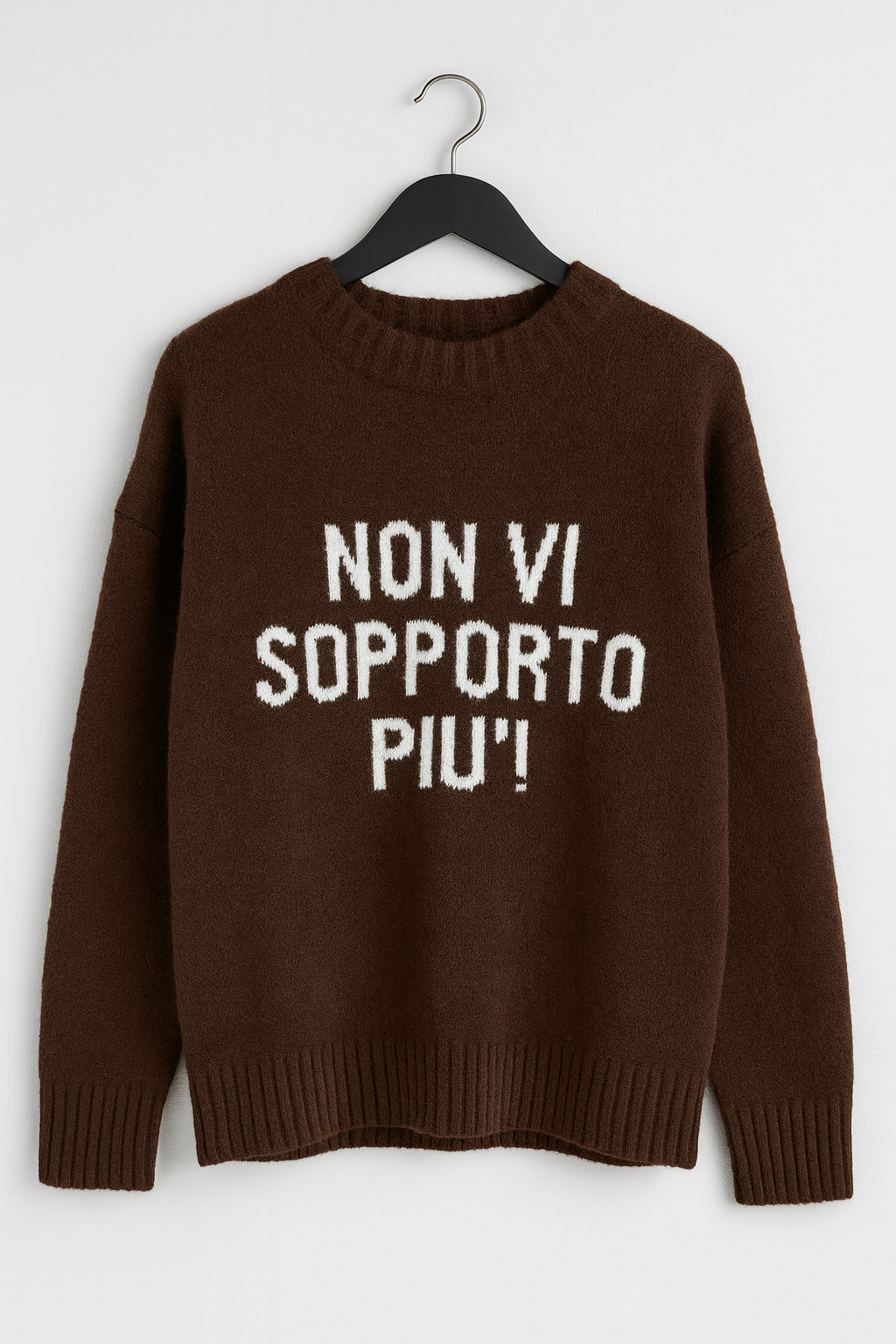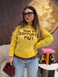 "Rinnova il tuo stile con il maglioncino con scritta "non vi sopporto più". Realizzato in morbido cotone, questo maglioncino ti darà un look moderno e sfacciato. Esprime il tuo stato d'animo e diventa il centro di attenzione con questo capo unico."