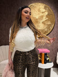 Morbido maglioncino con strass sul collo bianco