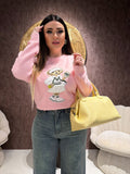 Il modello ha girocollo classico, vestibilità comoda e un design pulito che lo rende facile da abbinare sia a jeans che a gonne per un look casual chic.