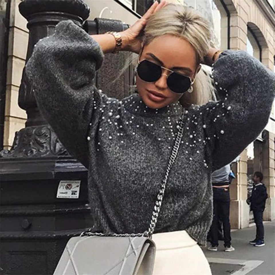 Maglione grigio con perle
