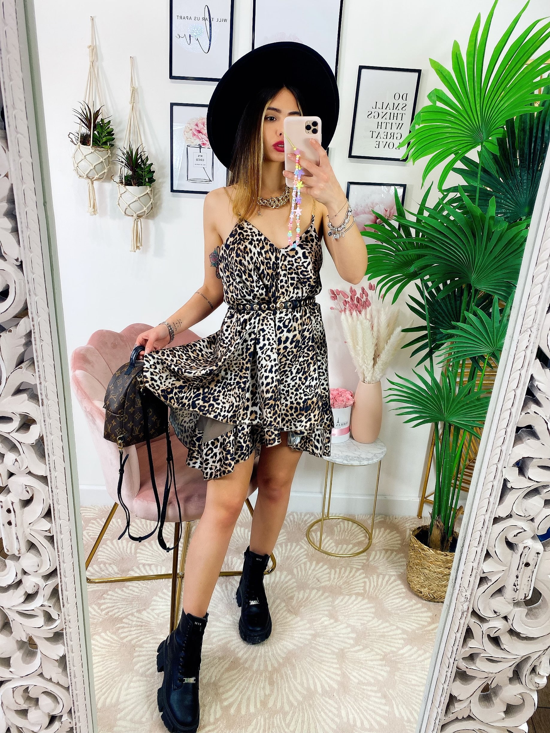 Mini Dress leopardato con catenine