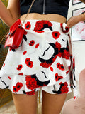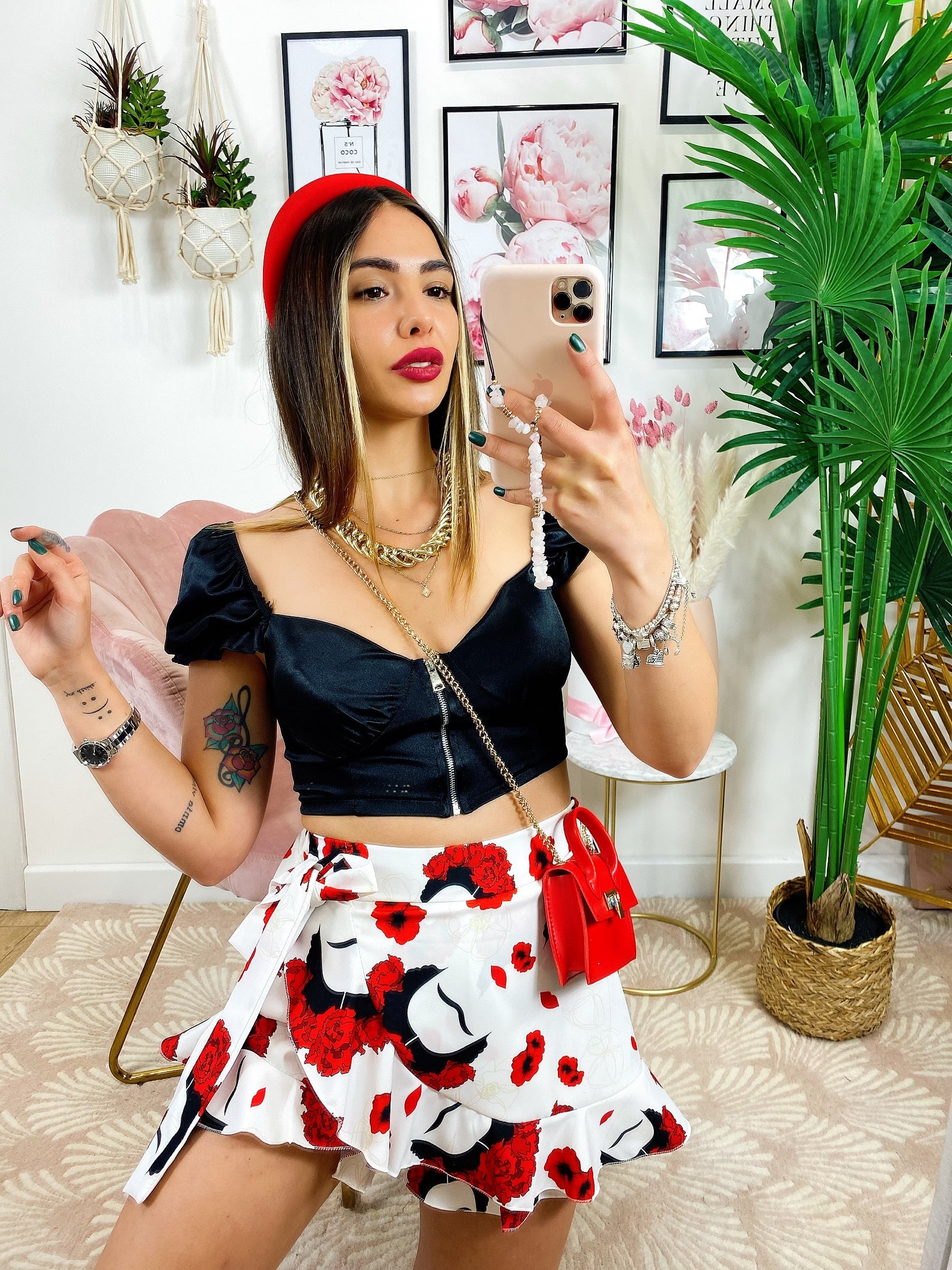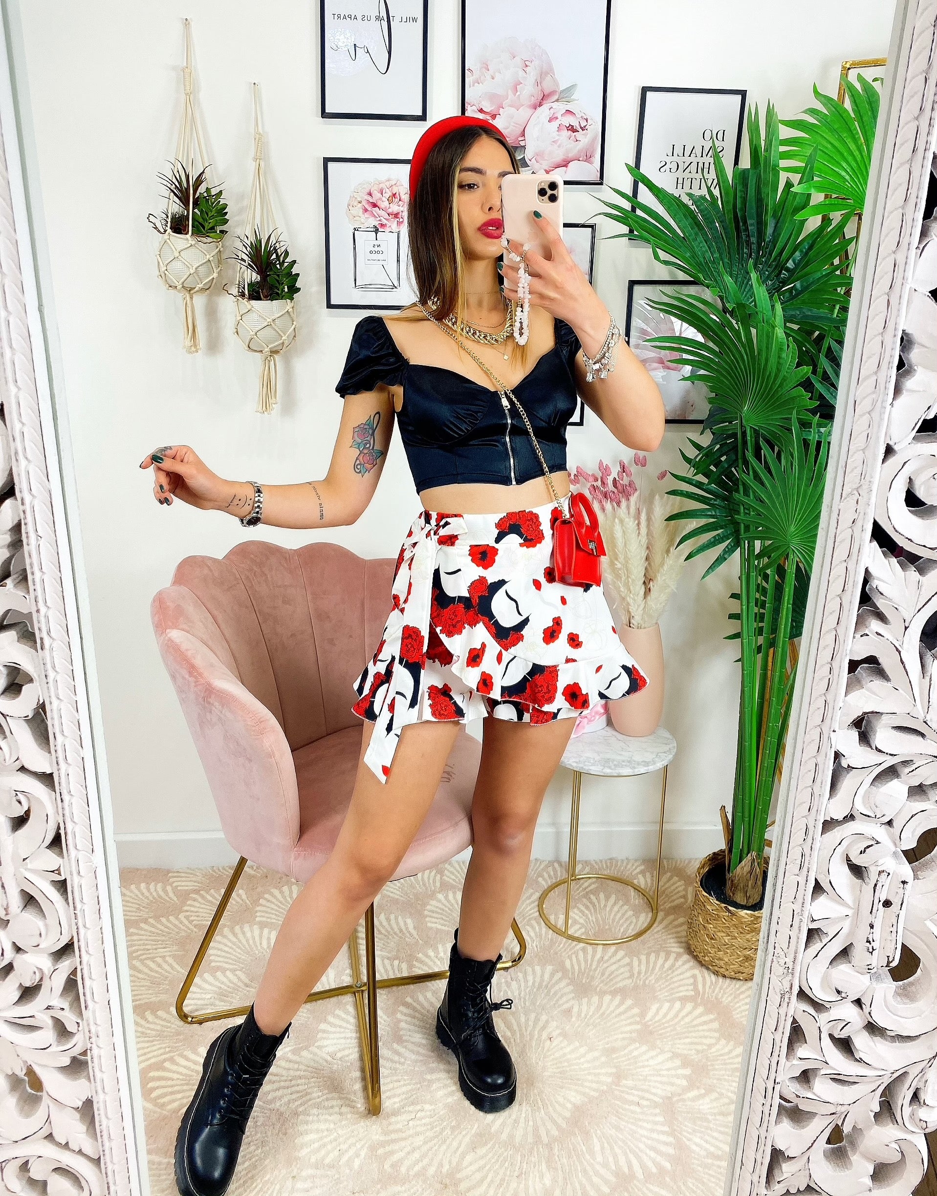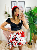 Pantagonna con stampa fiori rossi.