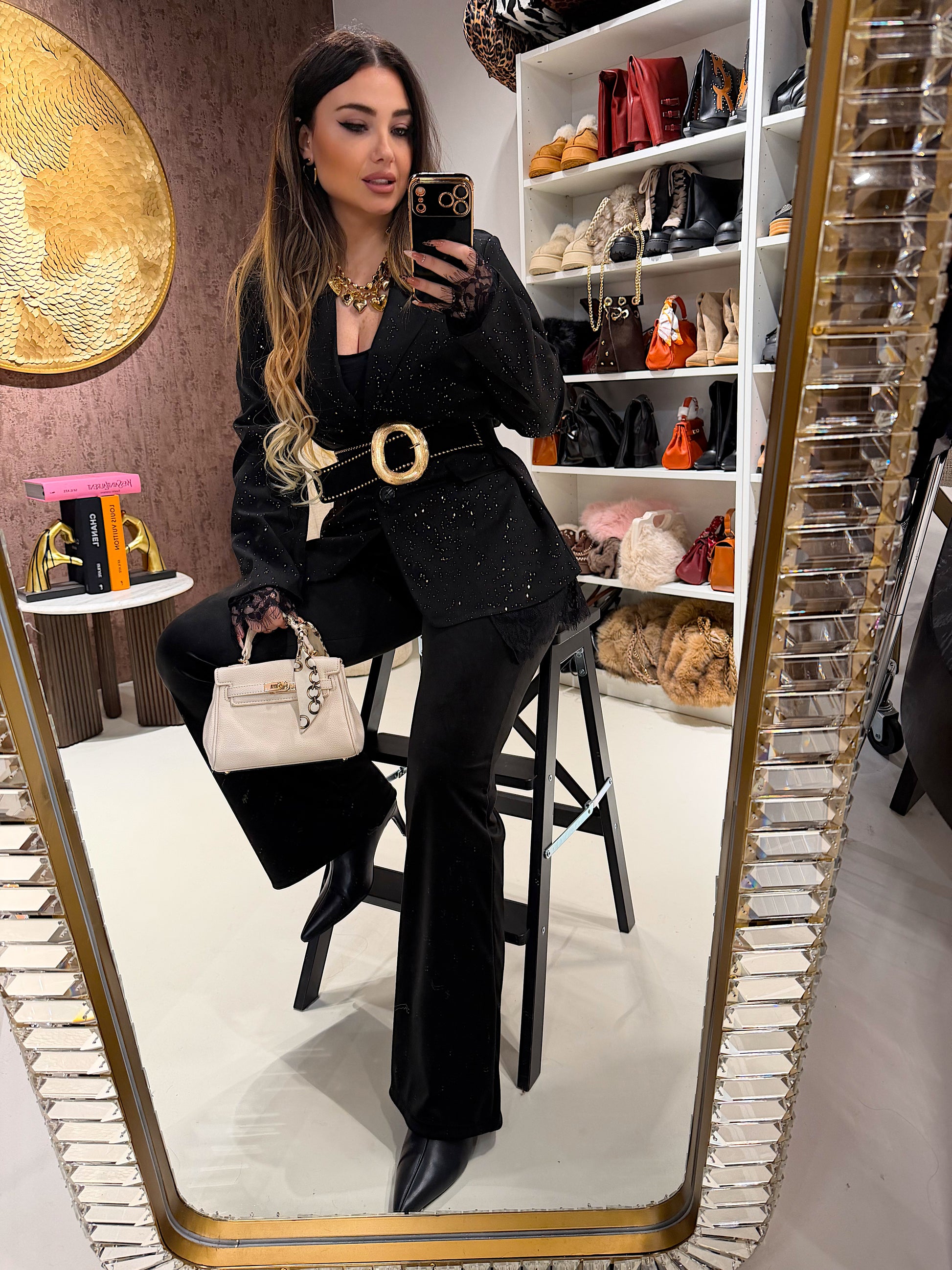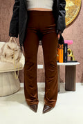 Pantalone in ciniglia a zampa in tessuto elasticizzato