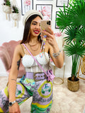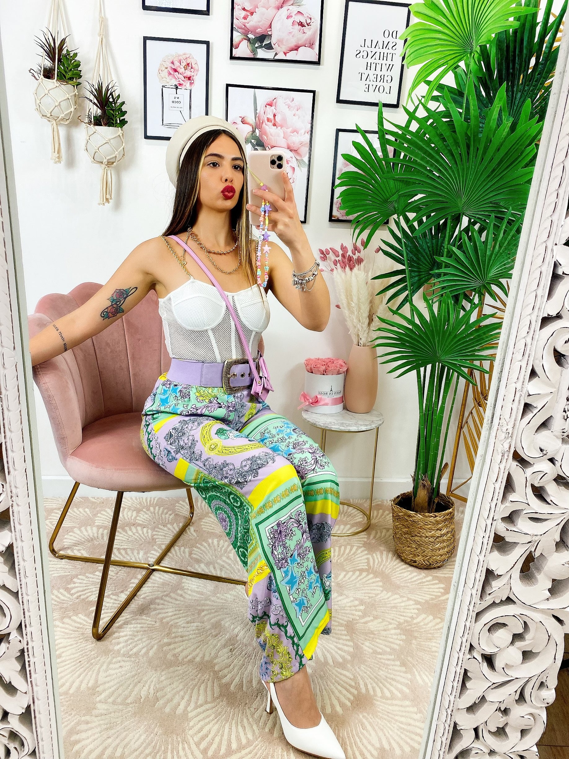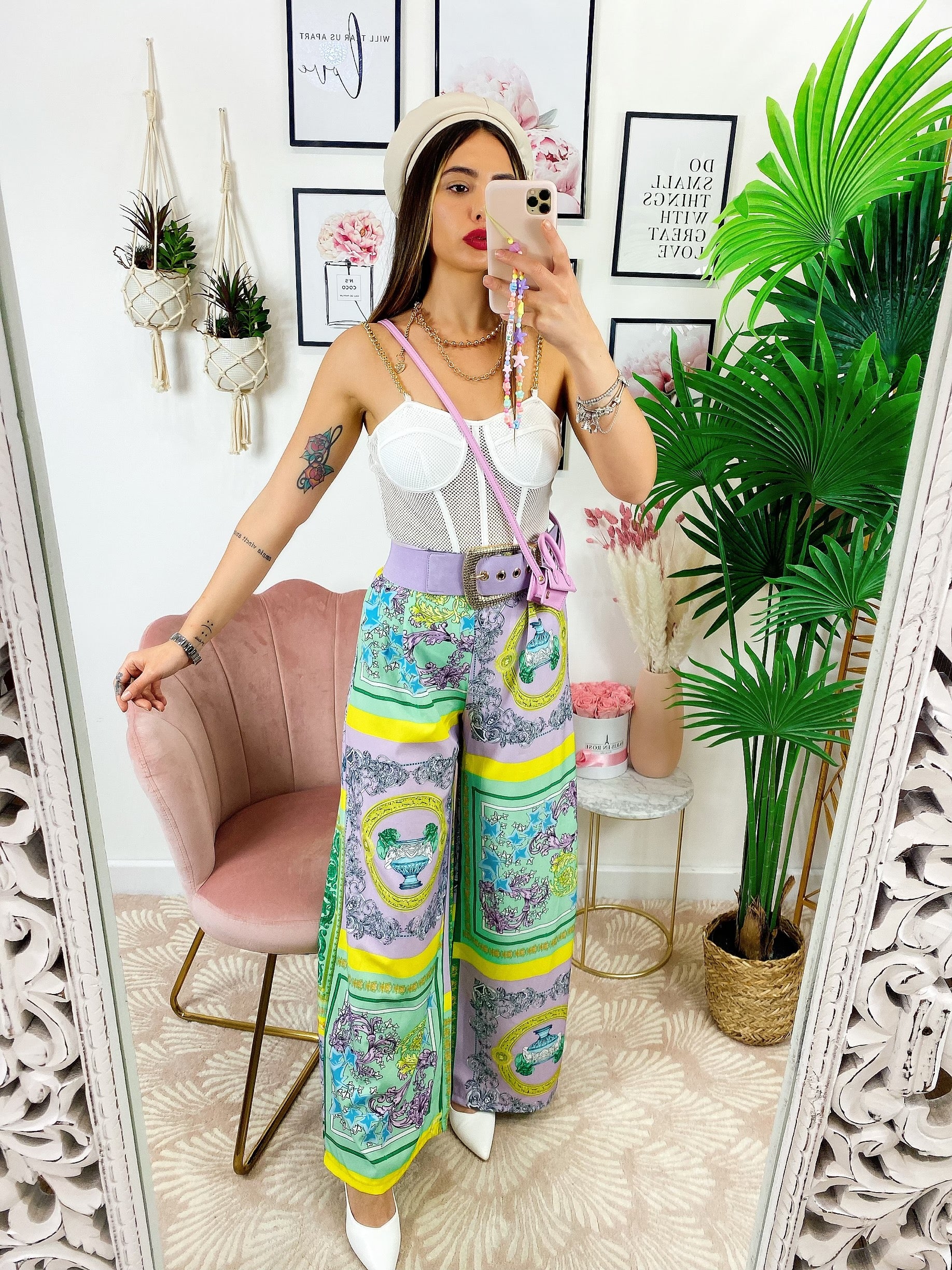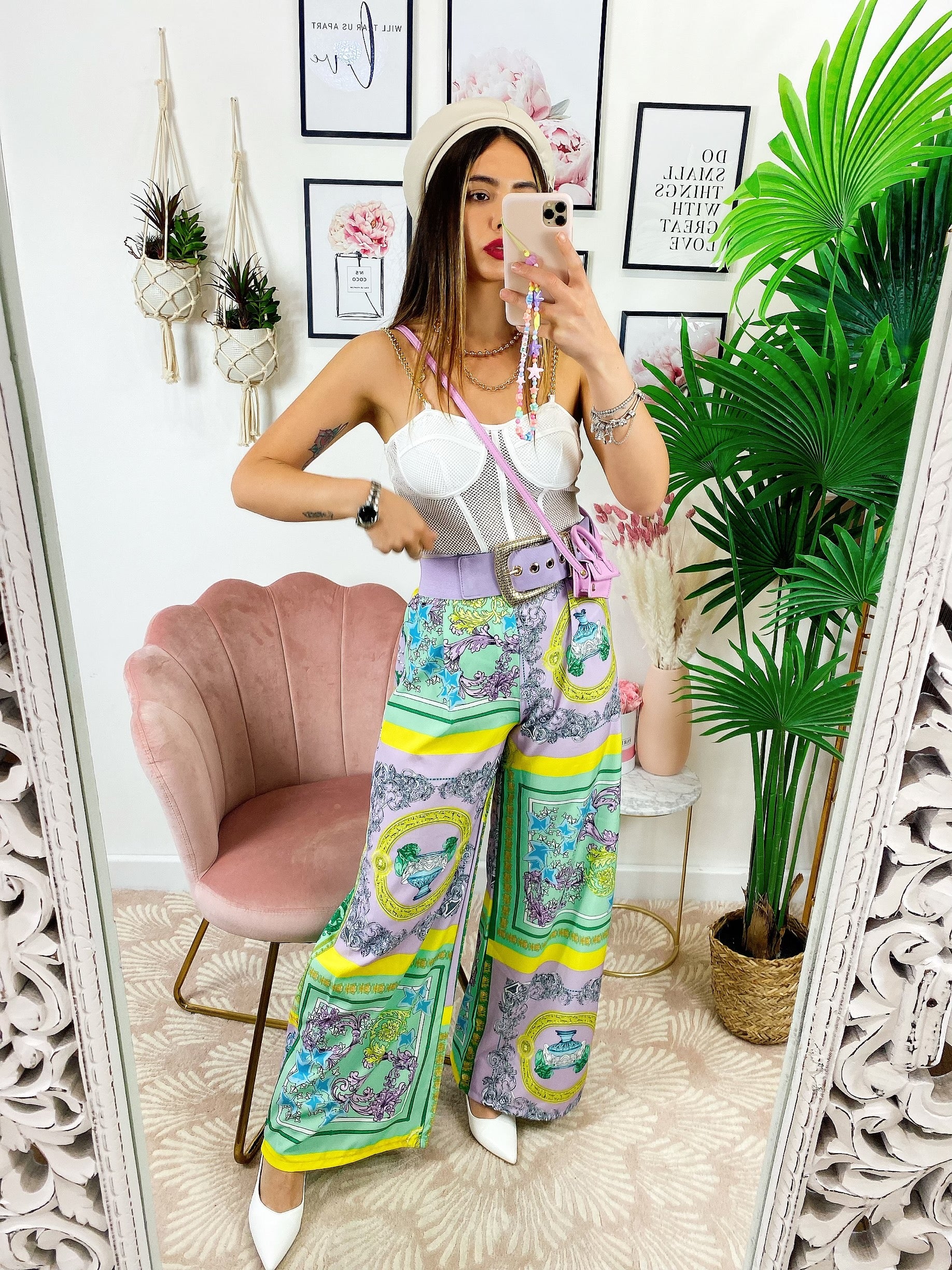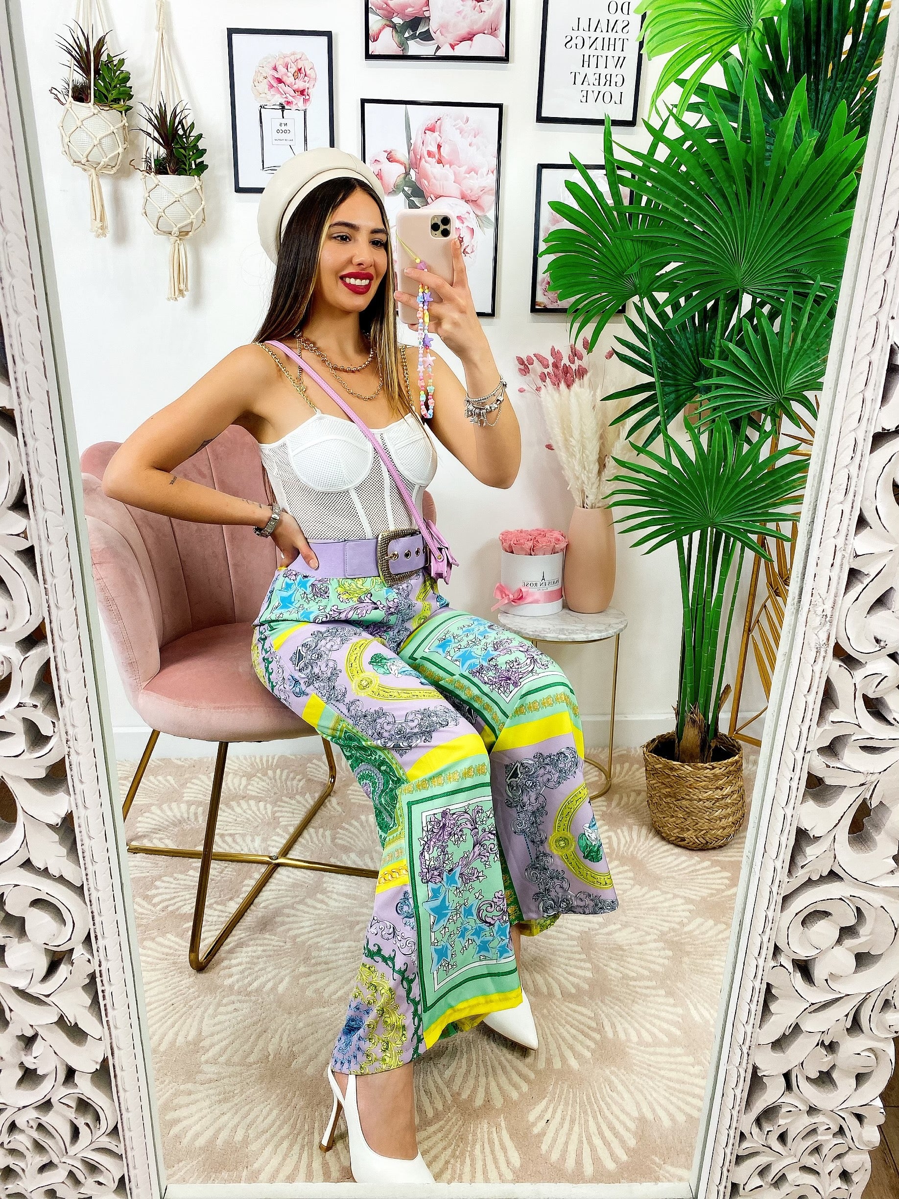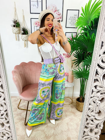 Pantalone a zampa stampa etnica Base verde