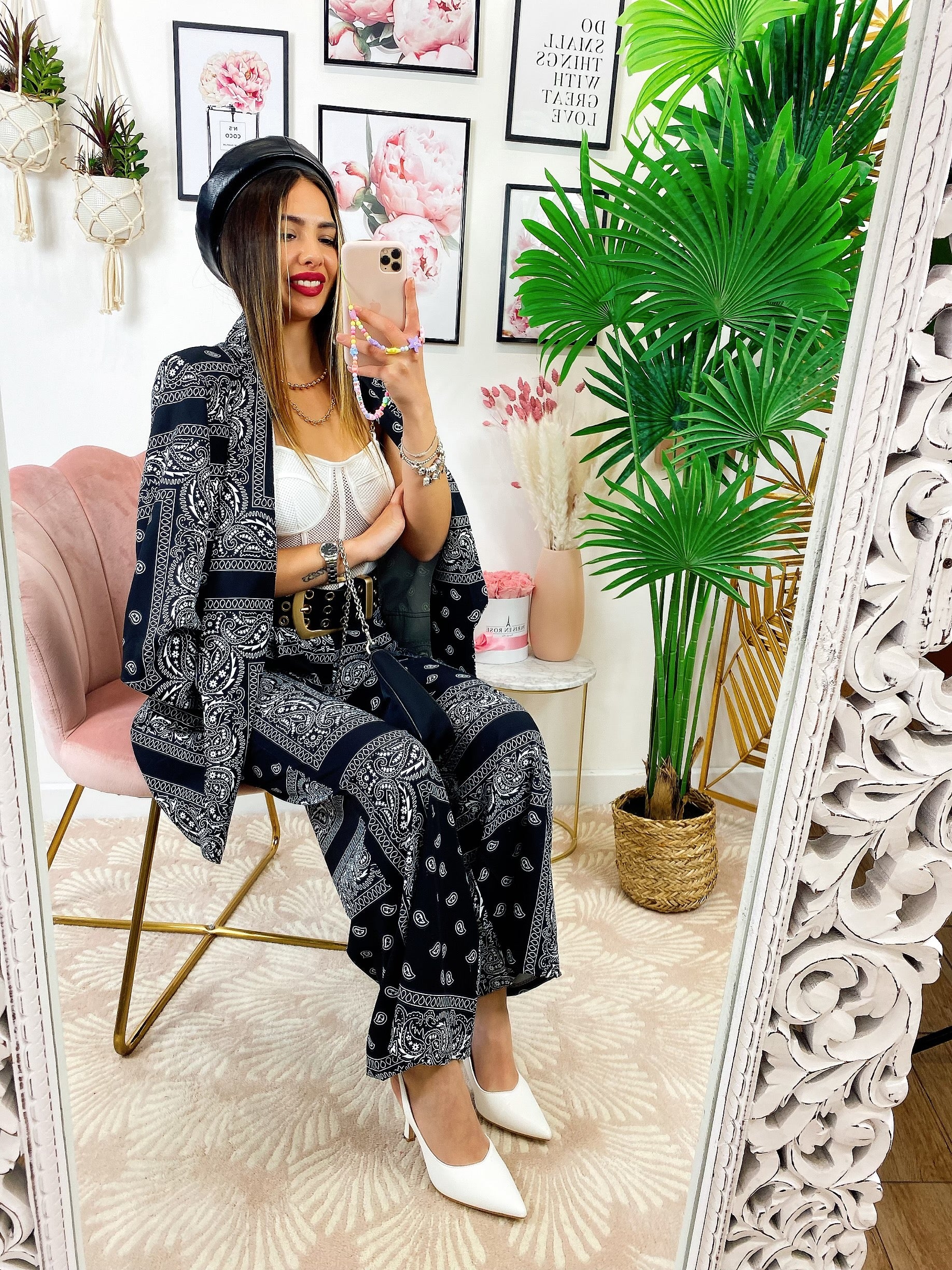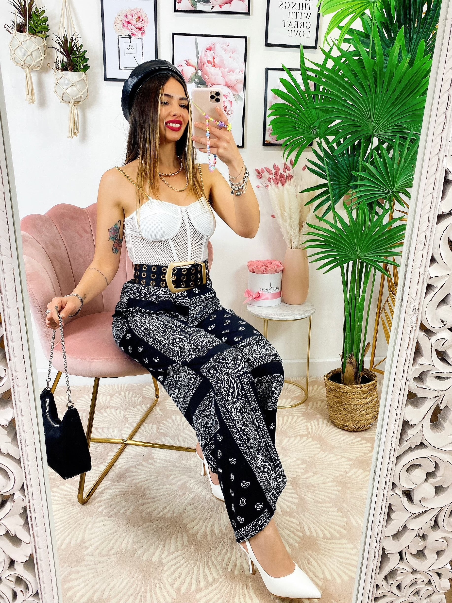 Pantalone a zampa con elastico in vita stampa etnica, comodo e elasticizzato