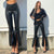 Pantalone in ecopelle con spacco